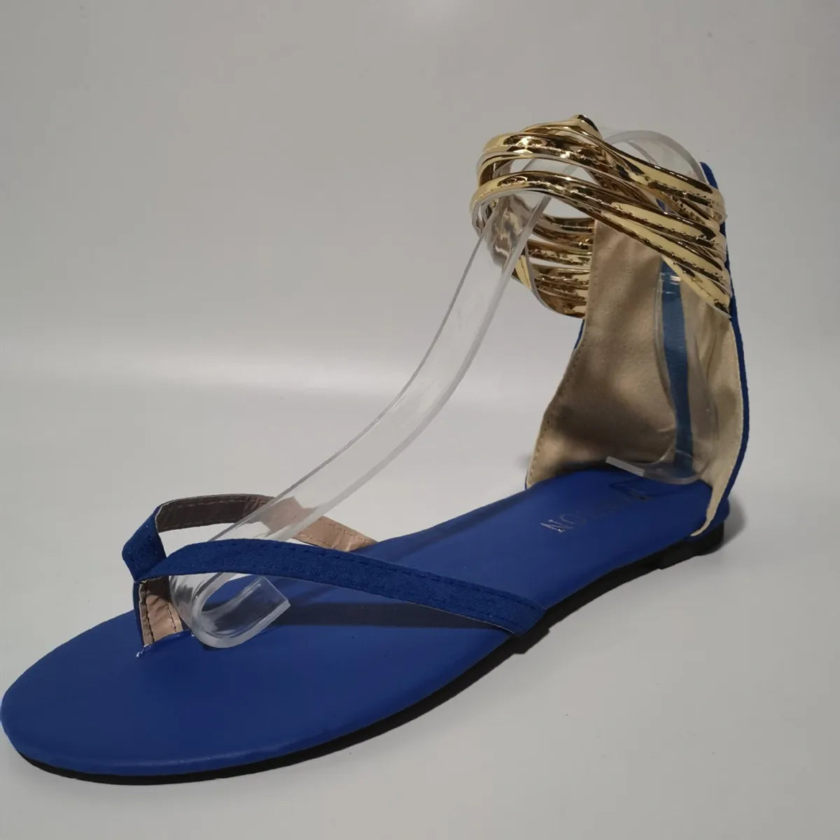Women's Summer Casual Flat Flock Metal Decor Zipper Ankle Wrap Flip Flops Sandals