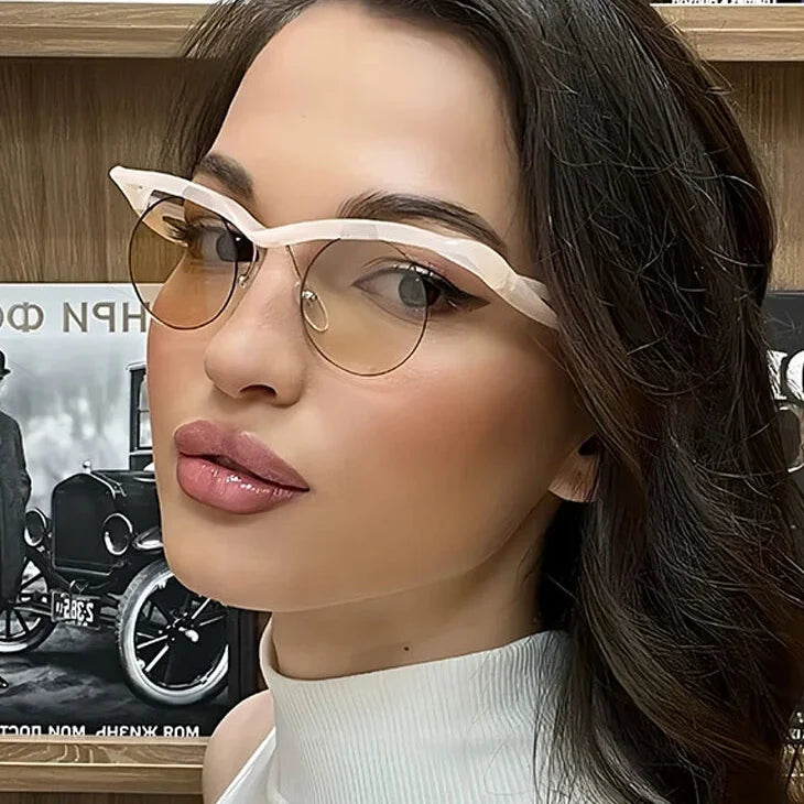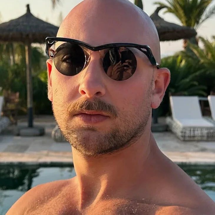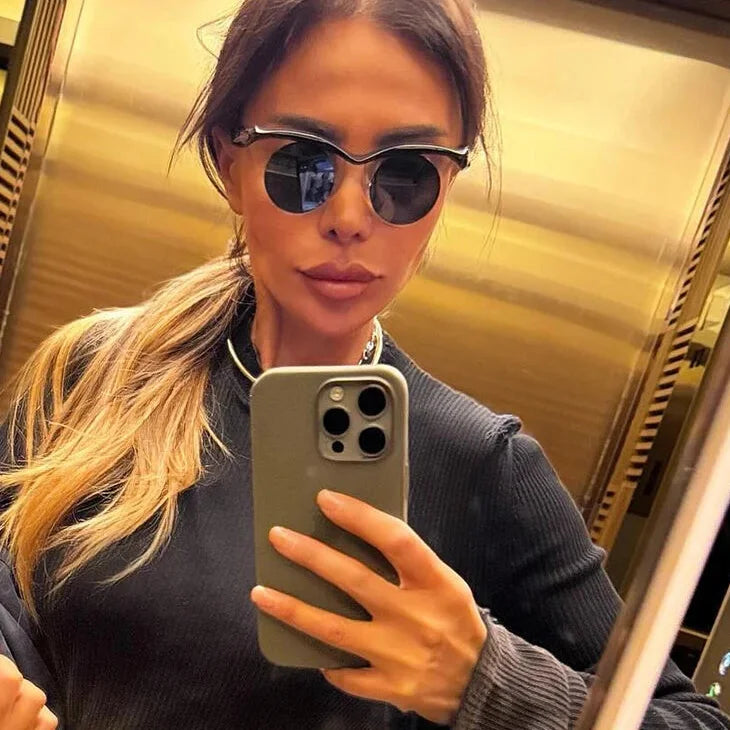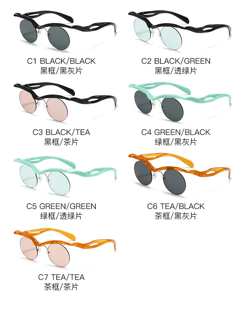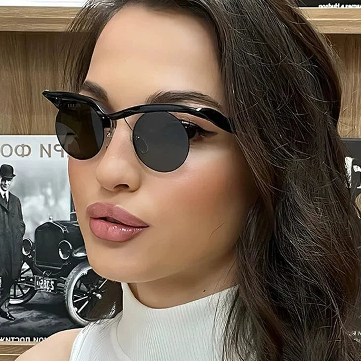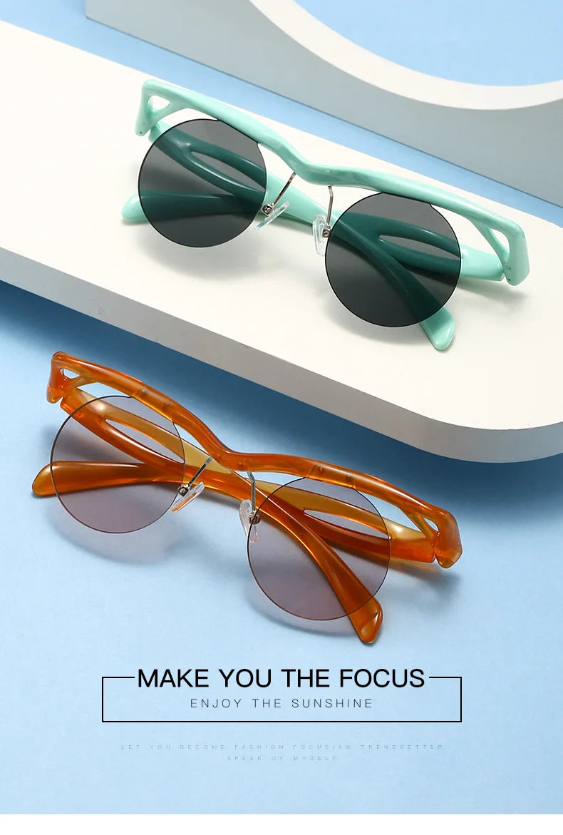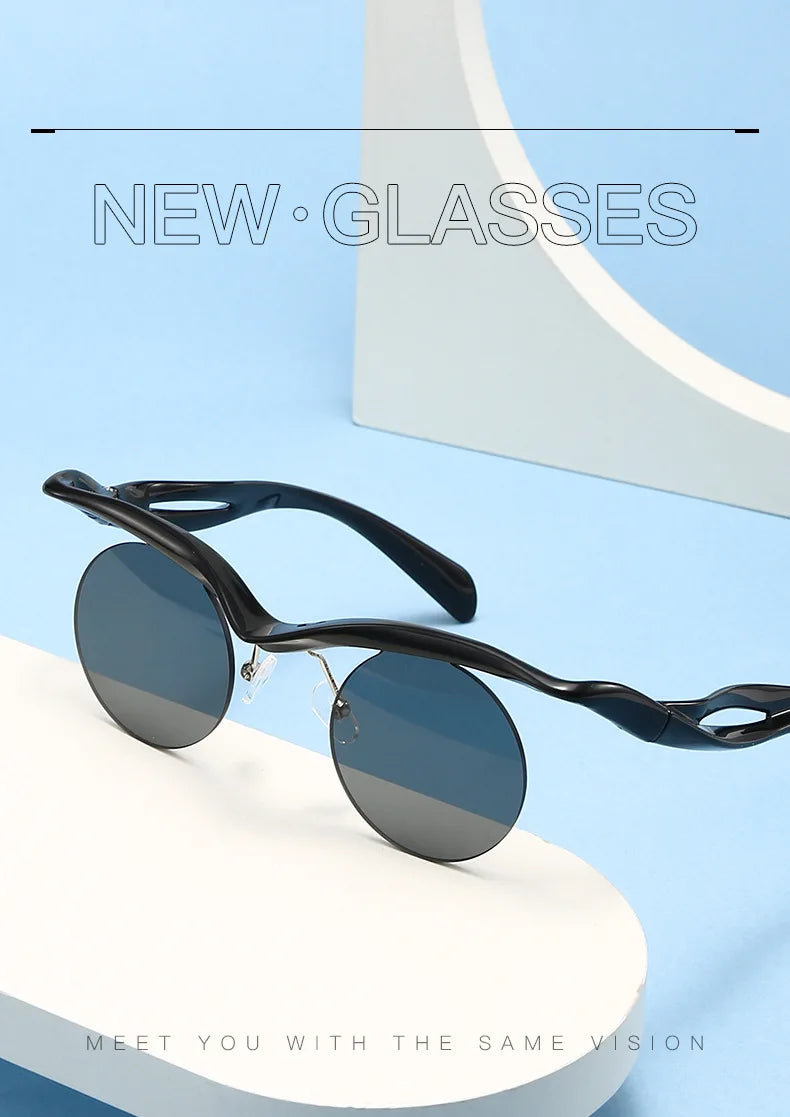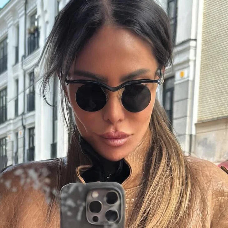 Luxury Vintage Small Frame Round Punk Rimless UV400 Sunglasses for Men and Women