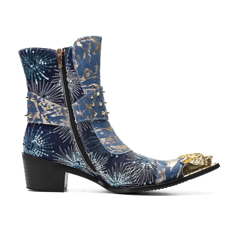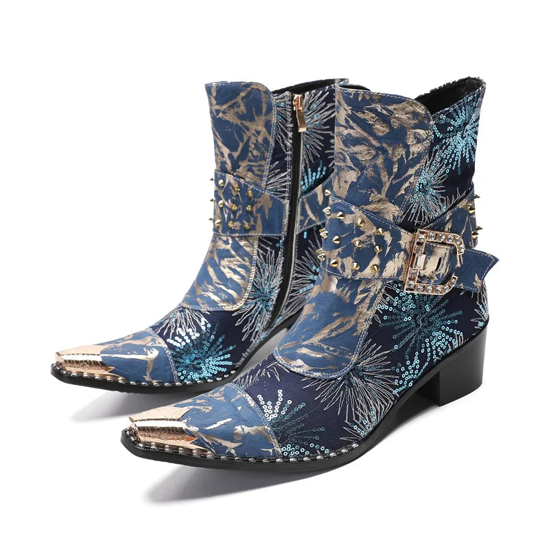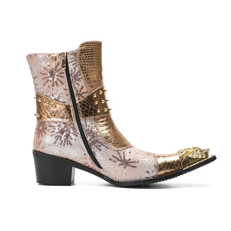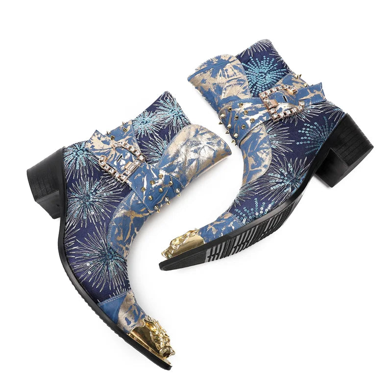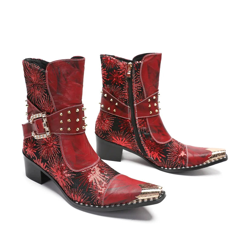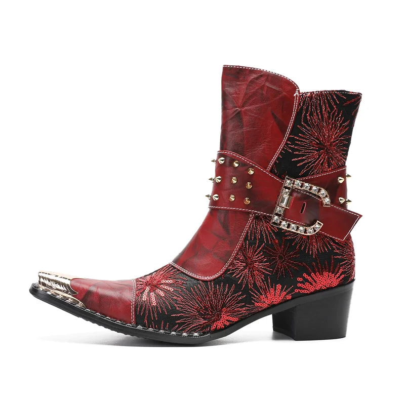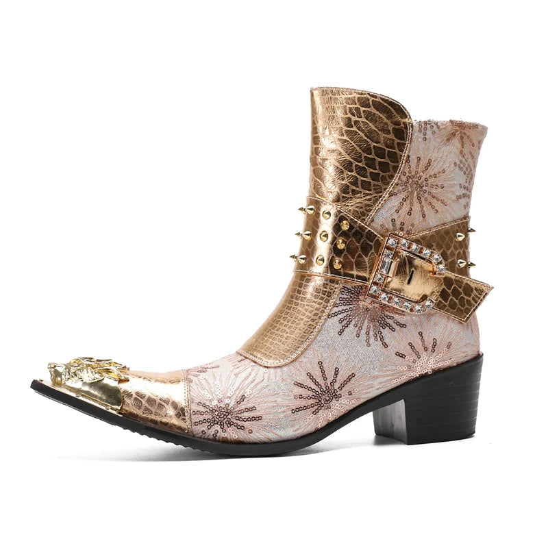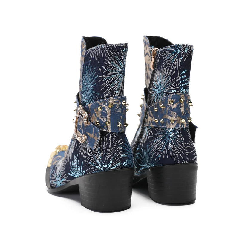 Autumn Luxury Men's Metal Spike High-heeled Belt Buckle Rivet Boots