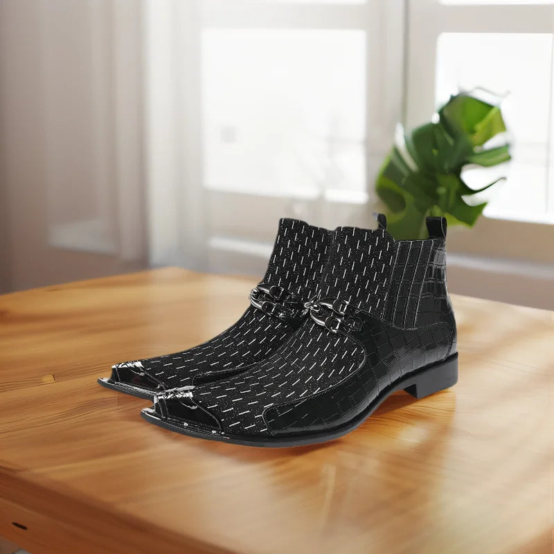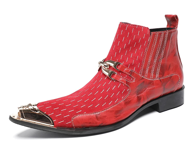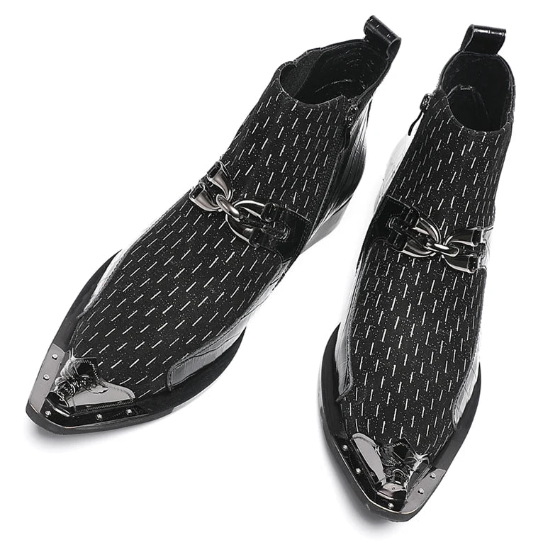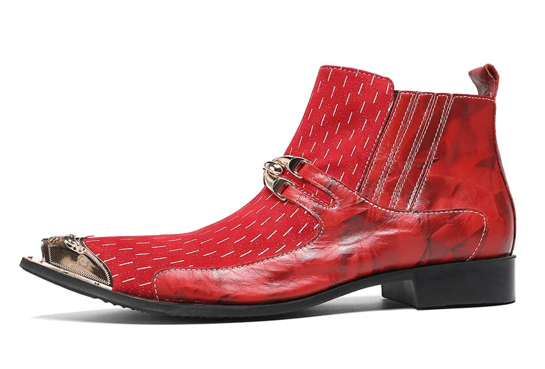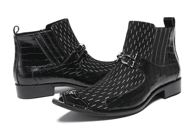 Genuine Leather Punk Style Patchwork Metal Pointed Toe Men's Ankle Boots