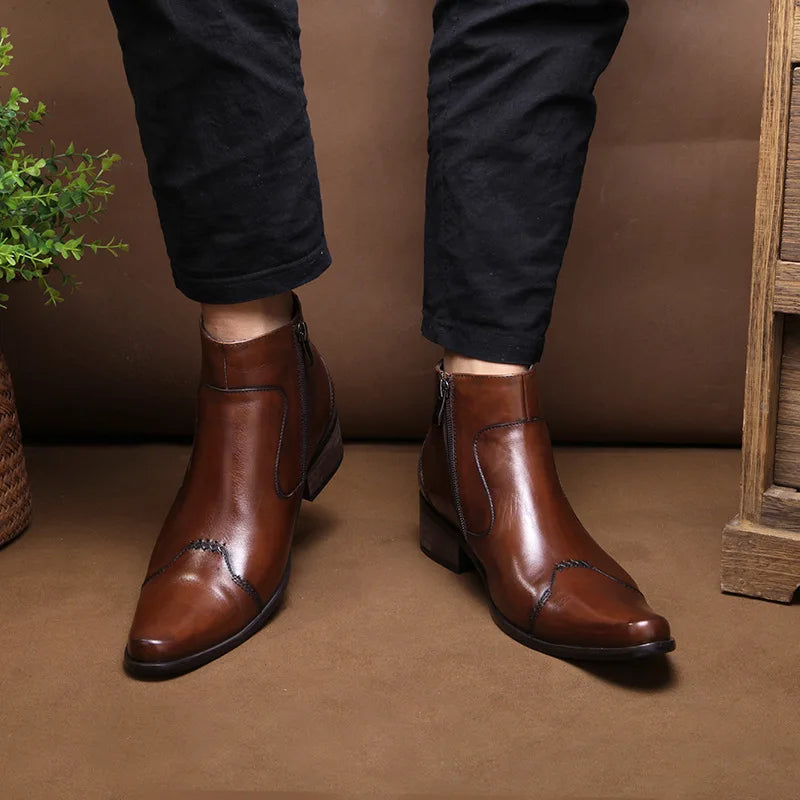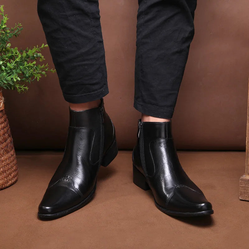 Handmade Genuine Leather 4cm Heels Autumn Early Winter Men's Formal Ankle Boots