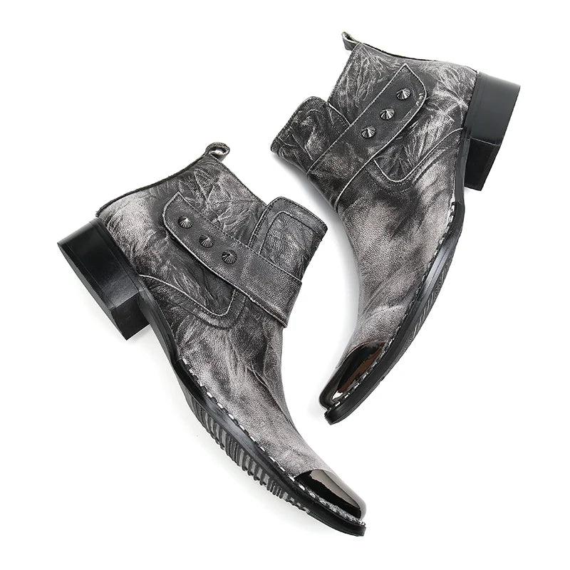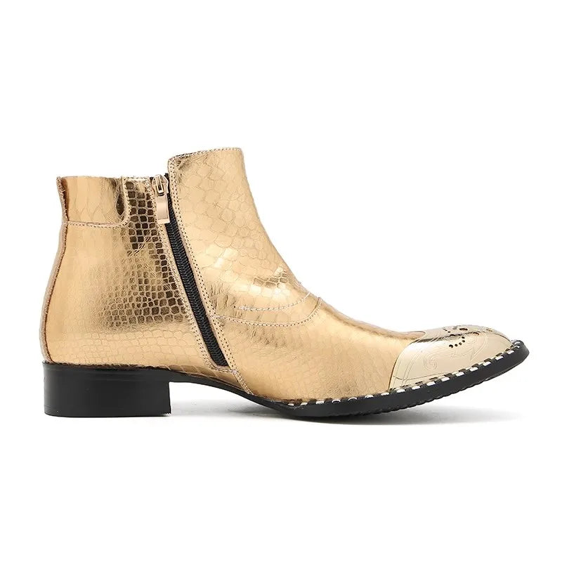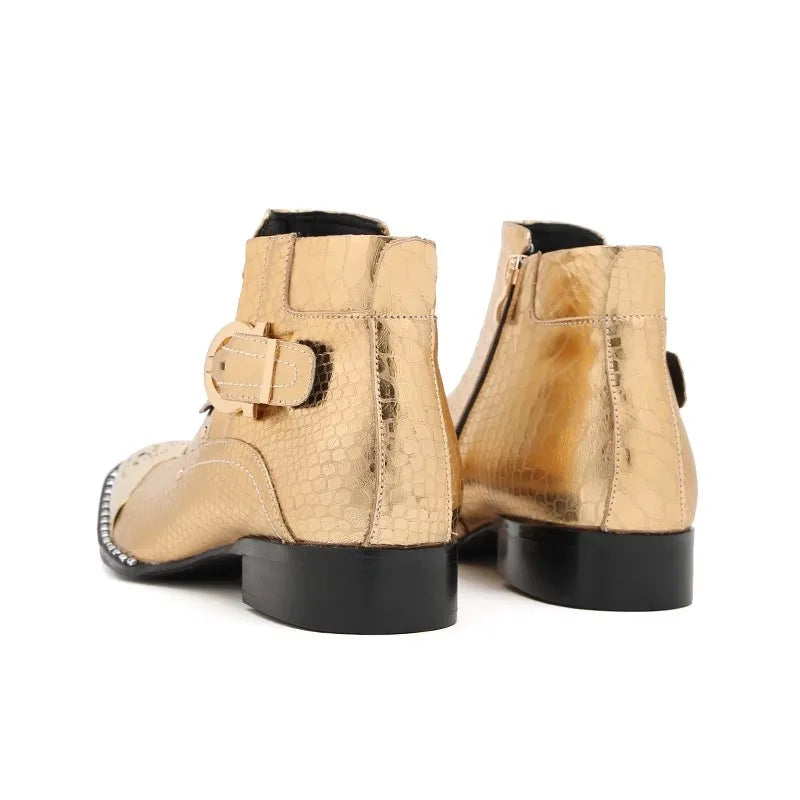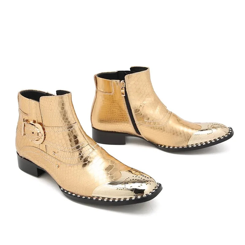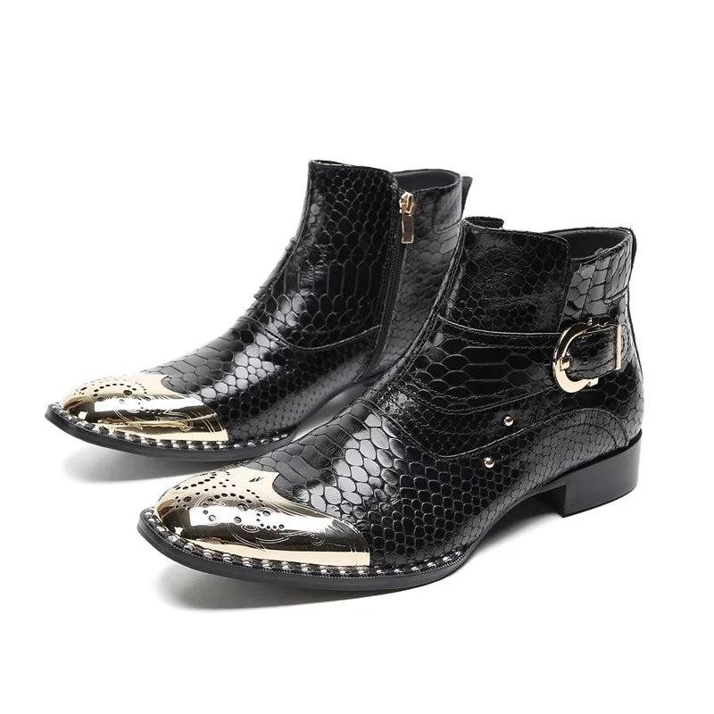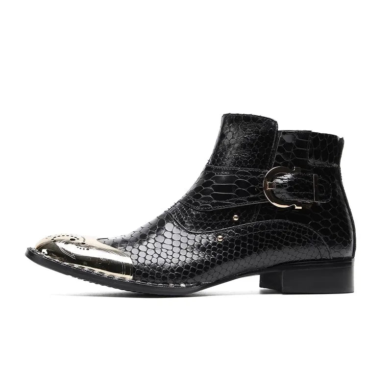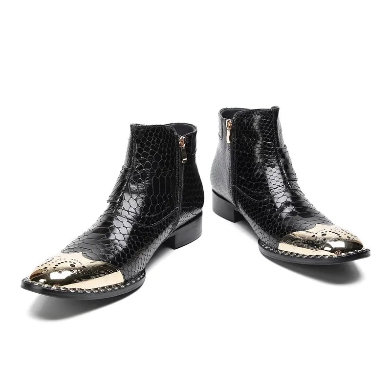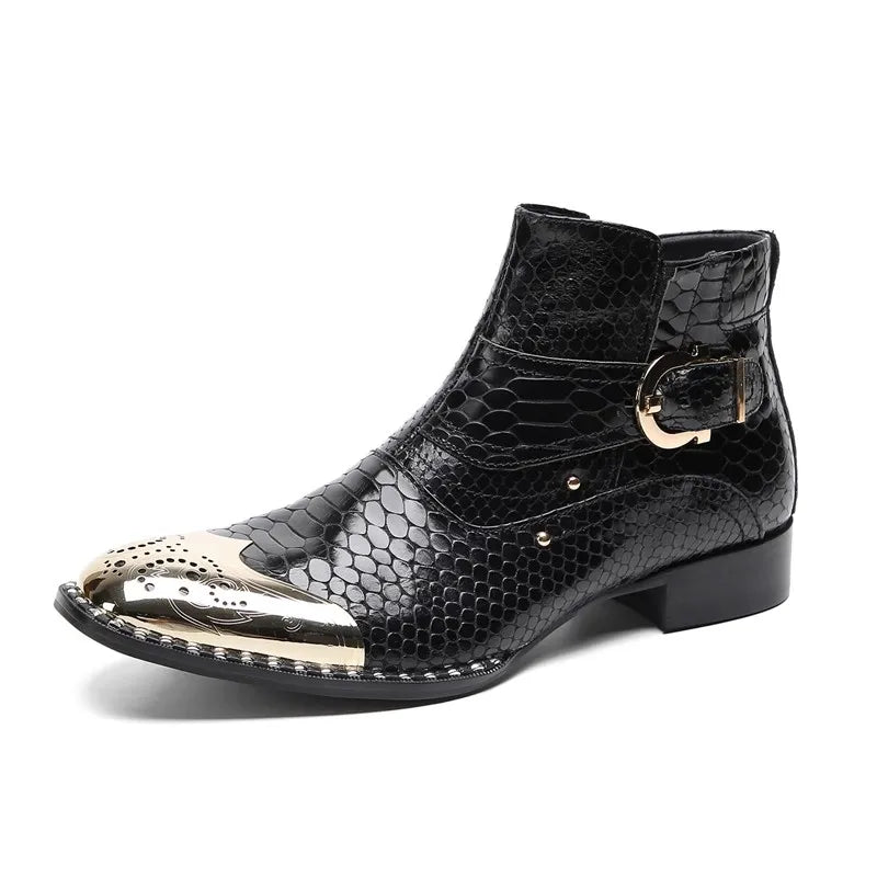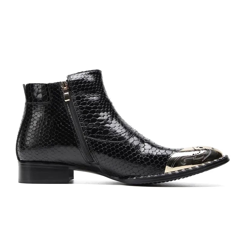 Italian Handmade Iron Toe Snakeskin Pattern Genuine Leather Men's Boots