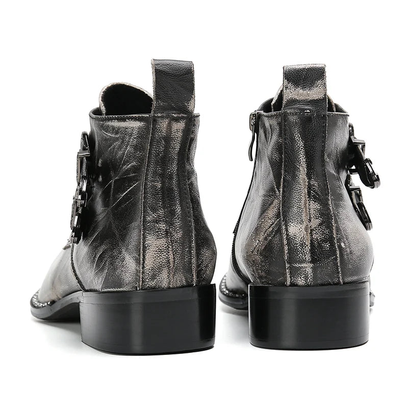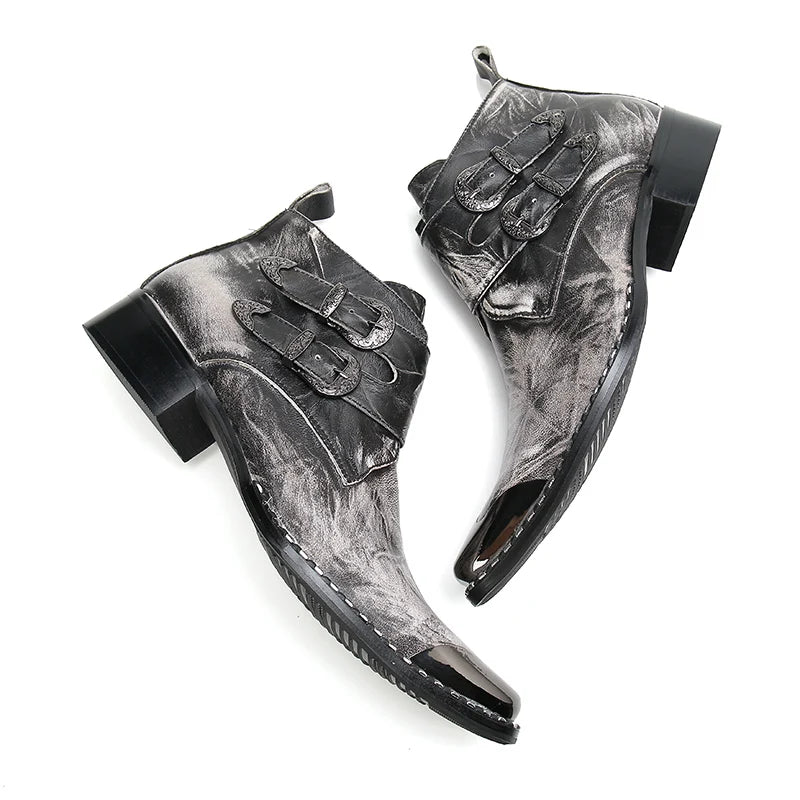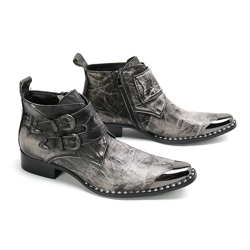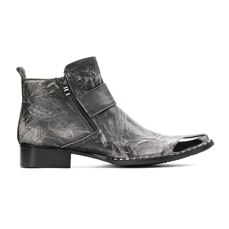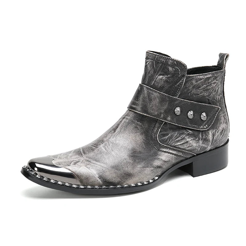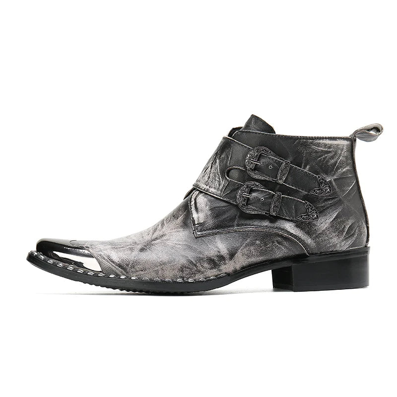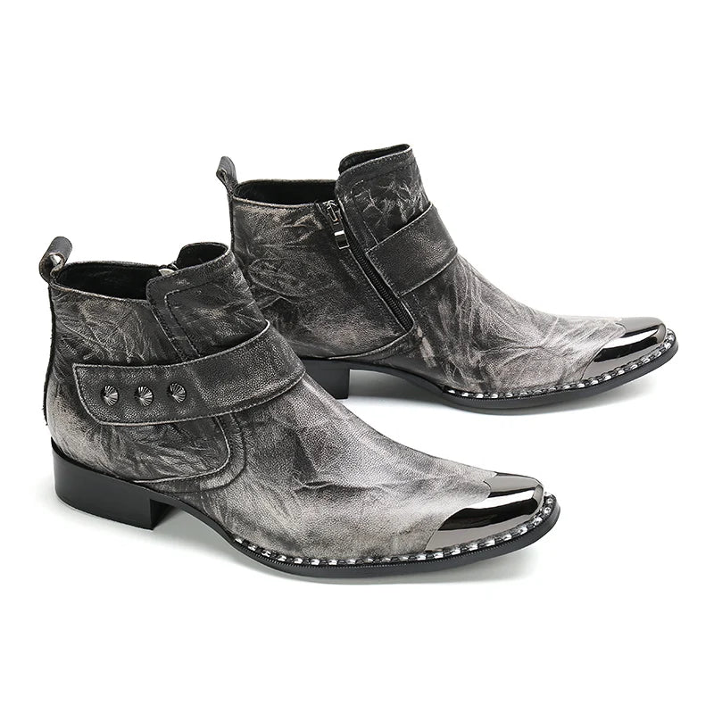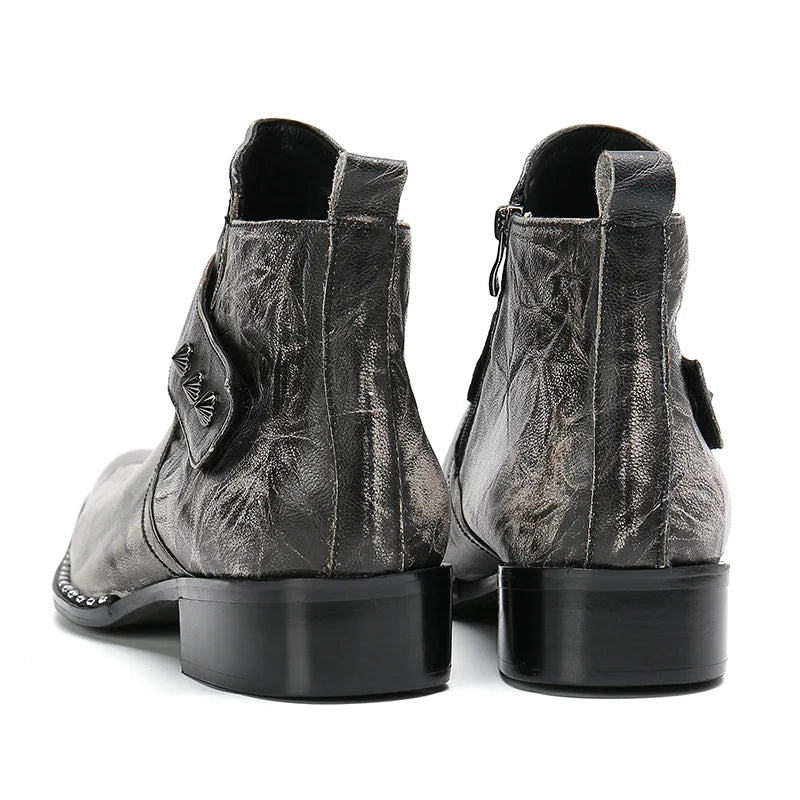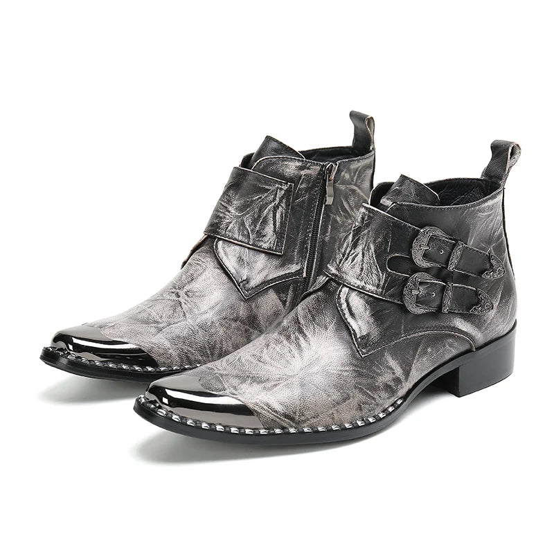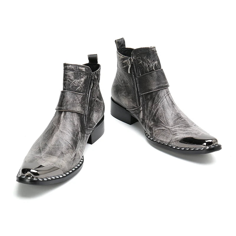 Italian Handmade Iron Toe Snakeskin Pattern Genuine Leather Men's Boots