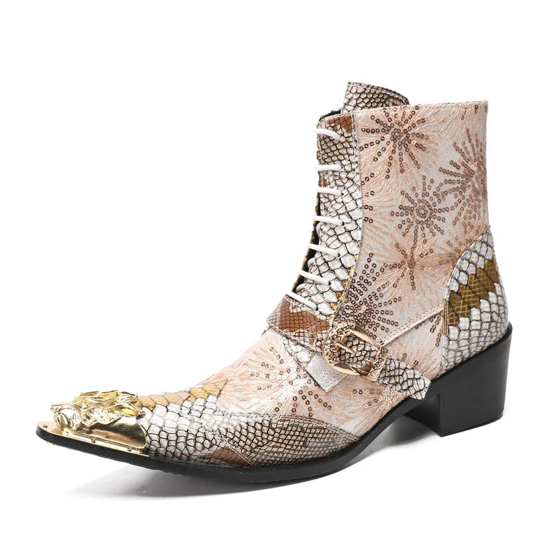 Designed for modern men to suit their fashion needs, these boots combine elegance and functionality. These footwear come with a genuine leather upper and rubber outsole that give a elegant look to it and add comfort to your footsteps. The print pattern and the metal decoration are notable and boost your fashion game. Its versatile design makes it a must-have addition to your boots collection.