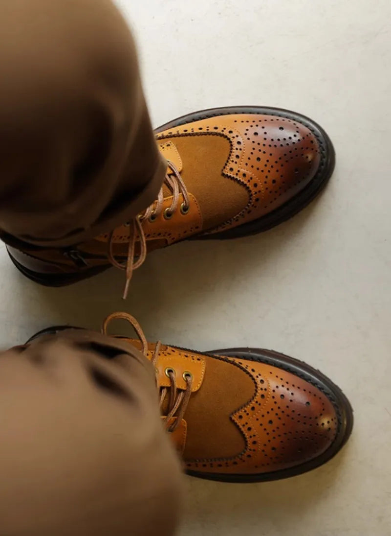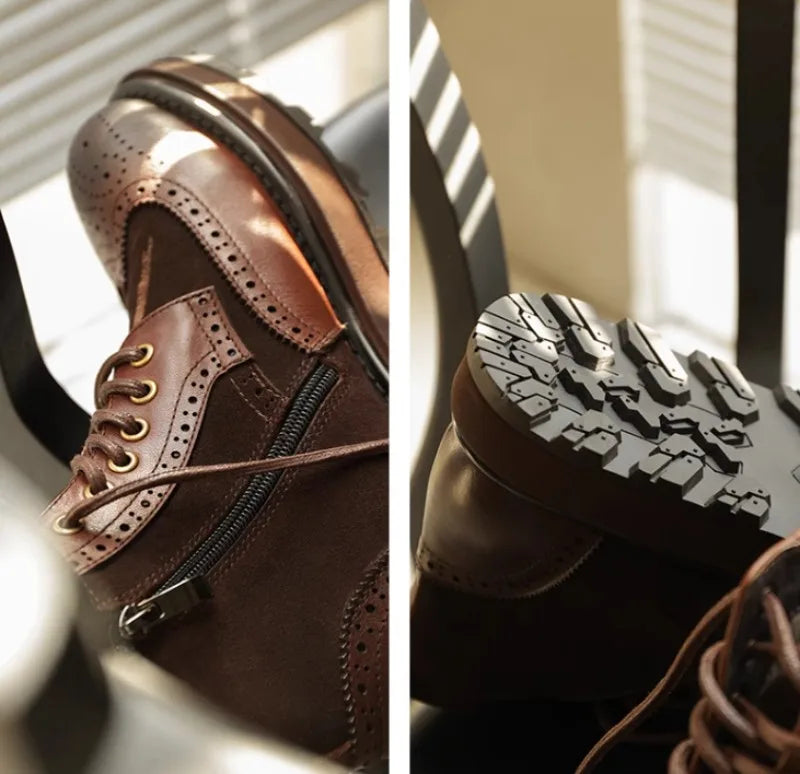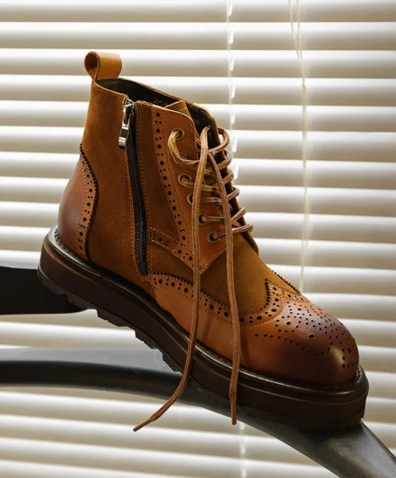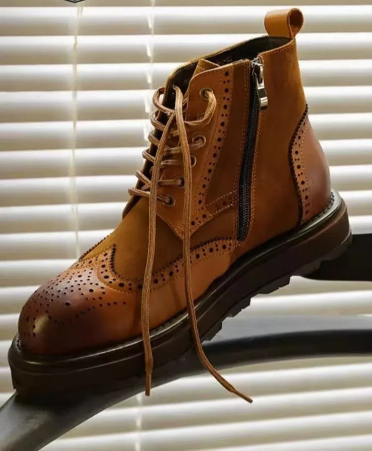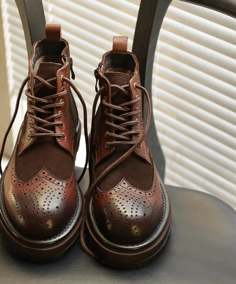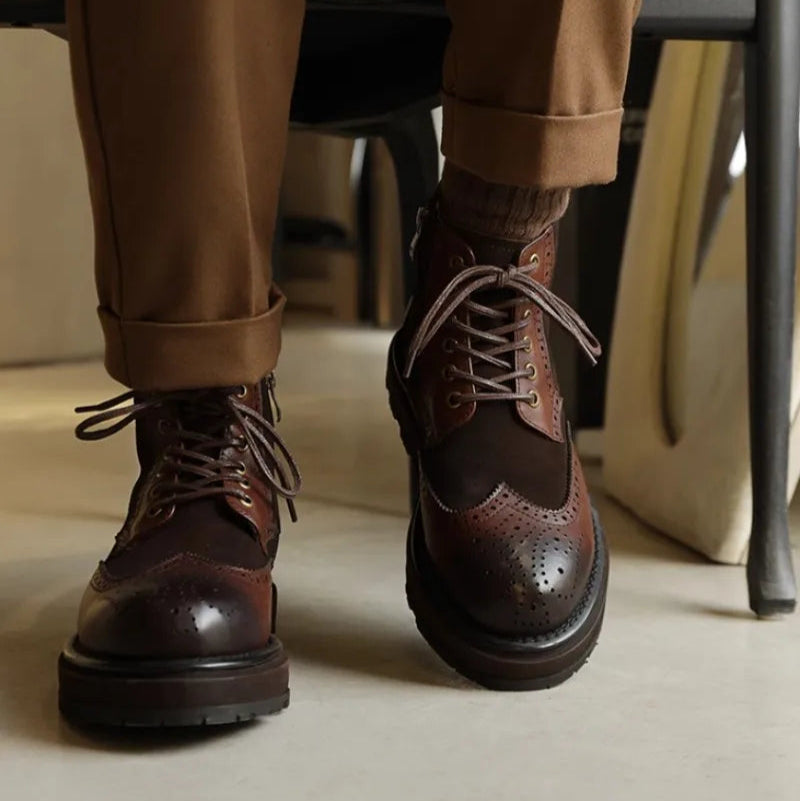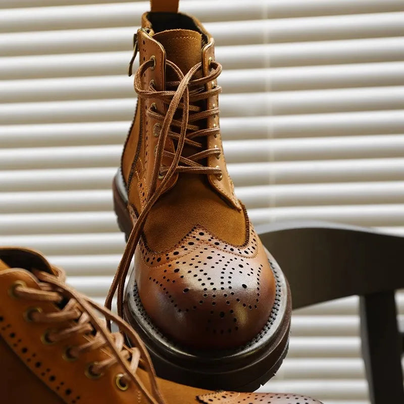Men's British Style High Top Wing Tip Spliced Lace Up Thick Platform Business Work Ankle Boots