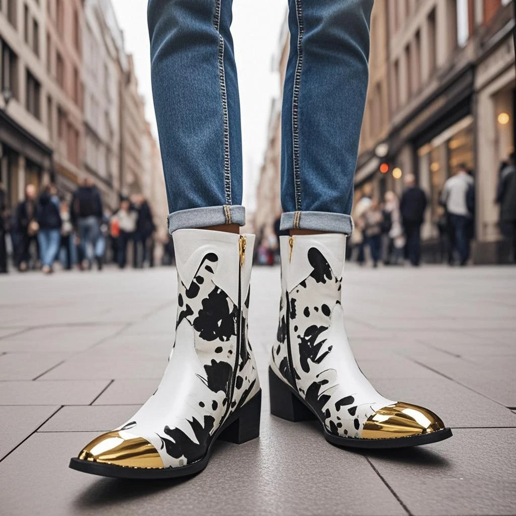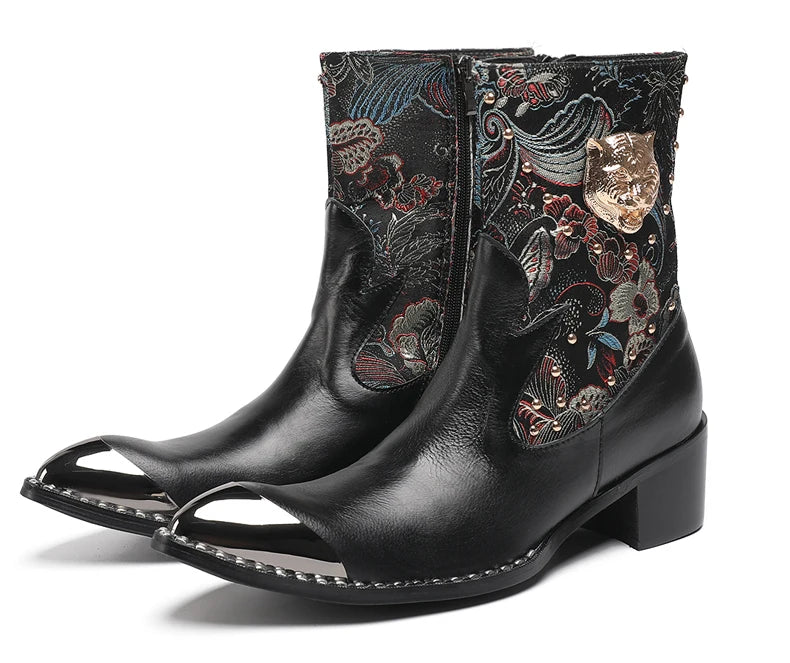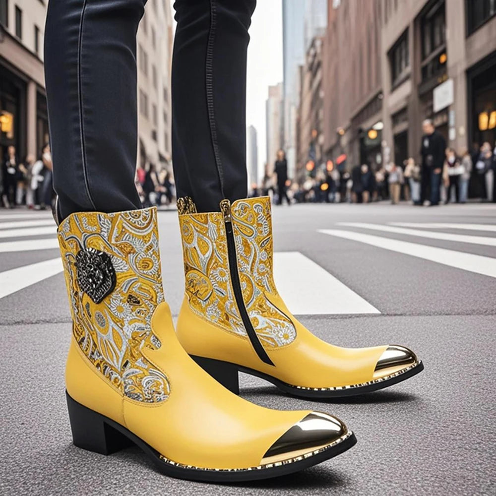 Built to add luxury to your look while keeping you super comfortable, these men’s ankle boots feature metal toes and an artistic pattern that give it a unique look. The genuine leather is premium and the pattern gives it additional style points. Perfect for casual occasions, they’re designed with metal pointed toes for a sharper look. Add them to your collection now.