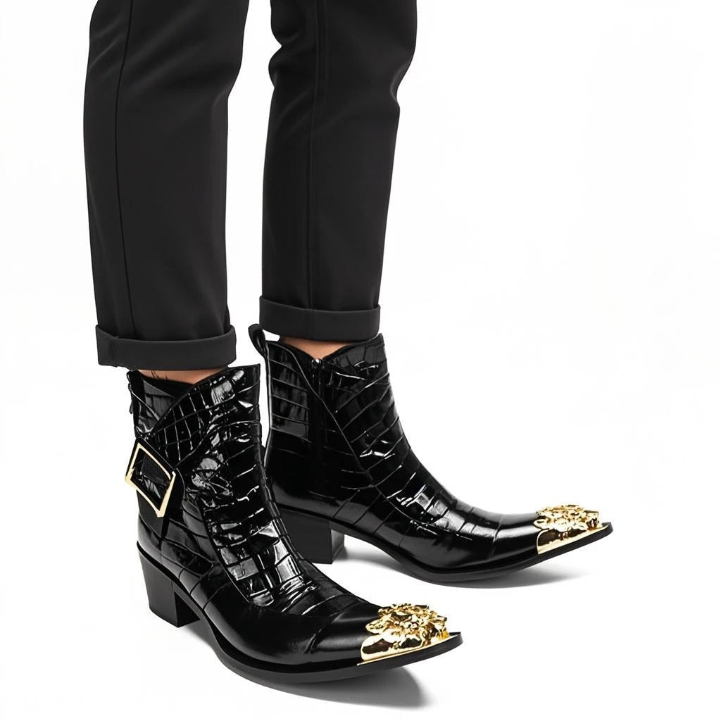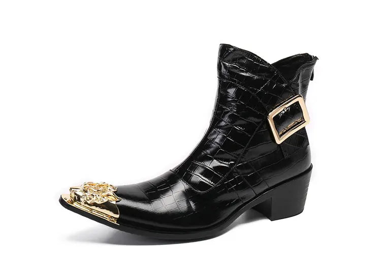 Men's Cowhide Leather Business Banquet Casual Pointed High Heels Boots