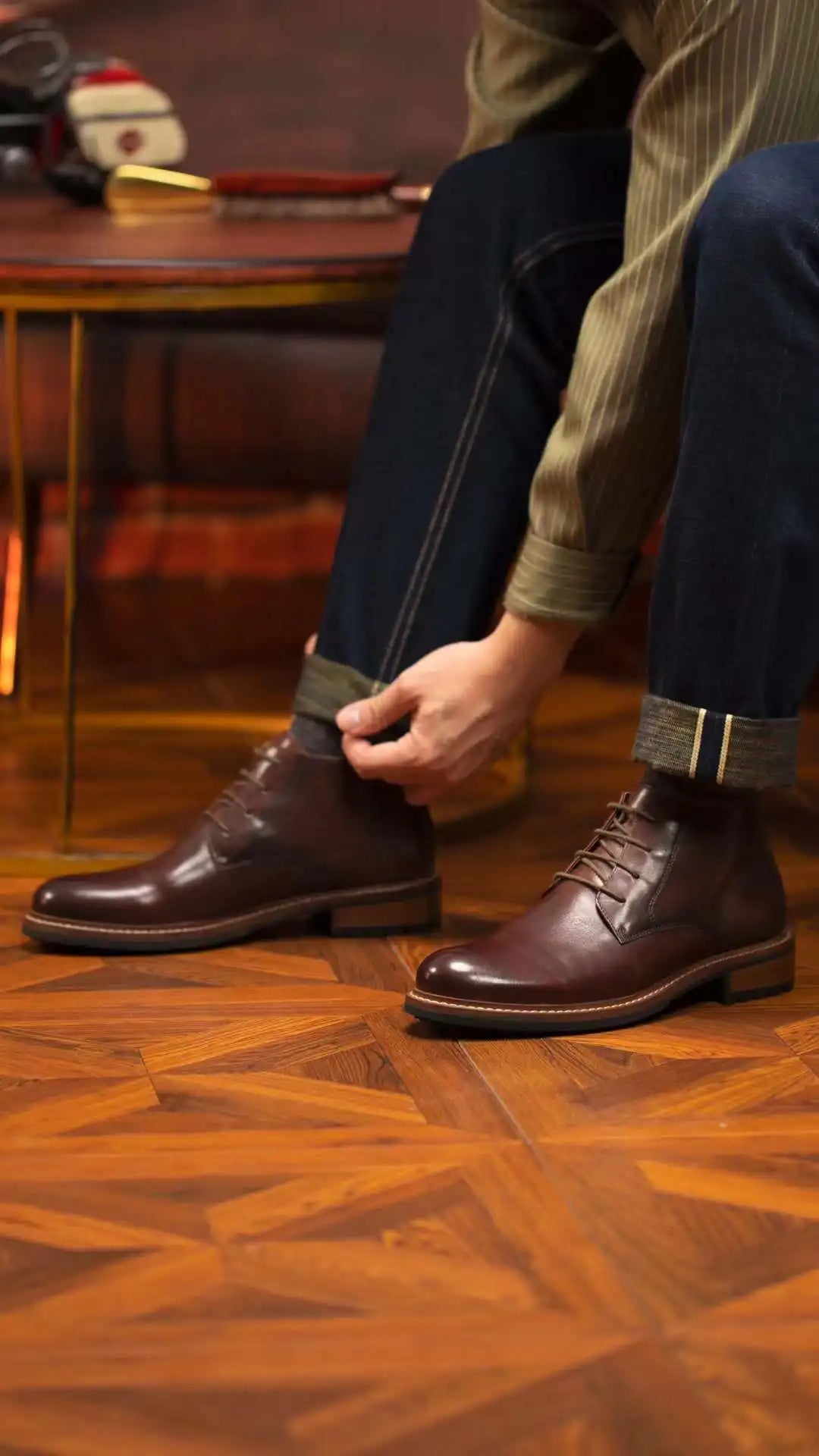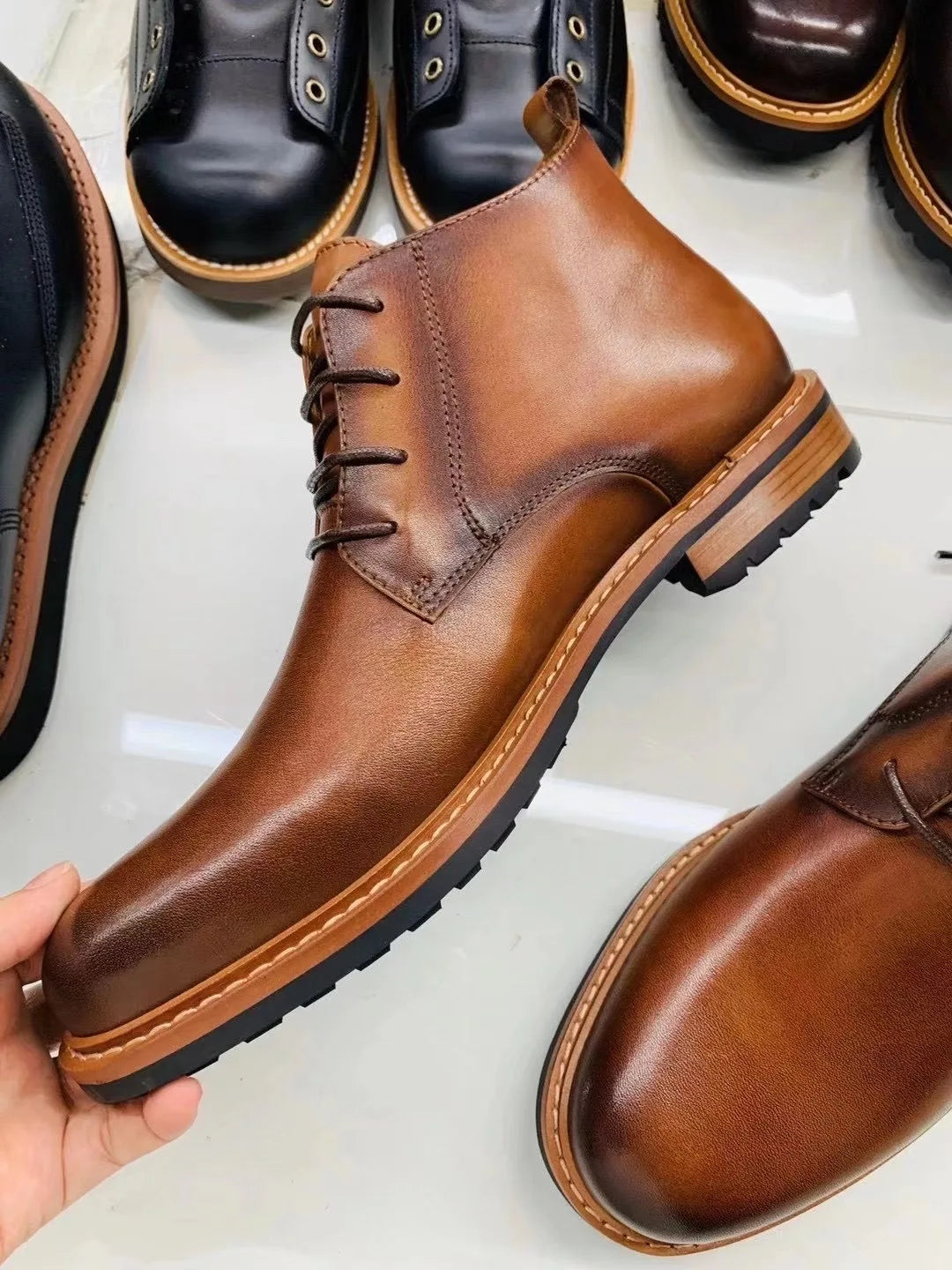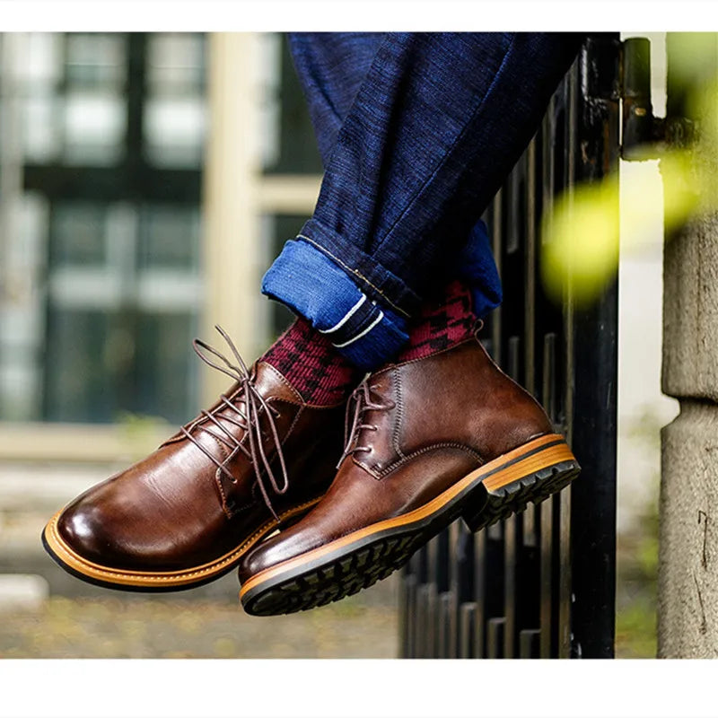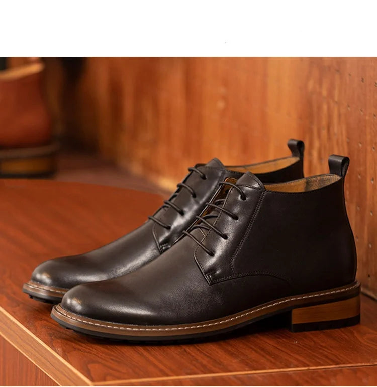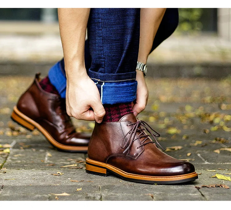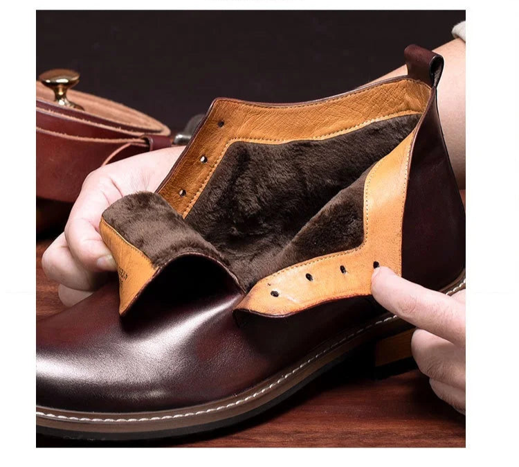 Men's Retro British Luxury Handmade Genuine Leather Warm Ankle Chelsea Boots