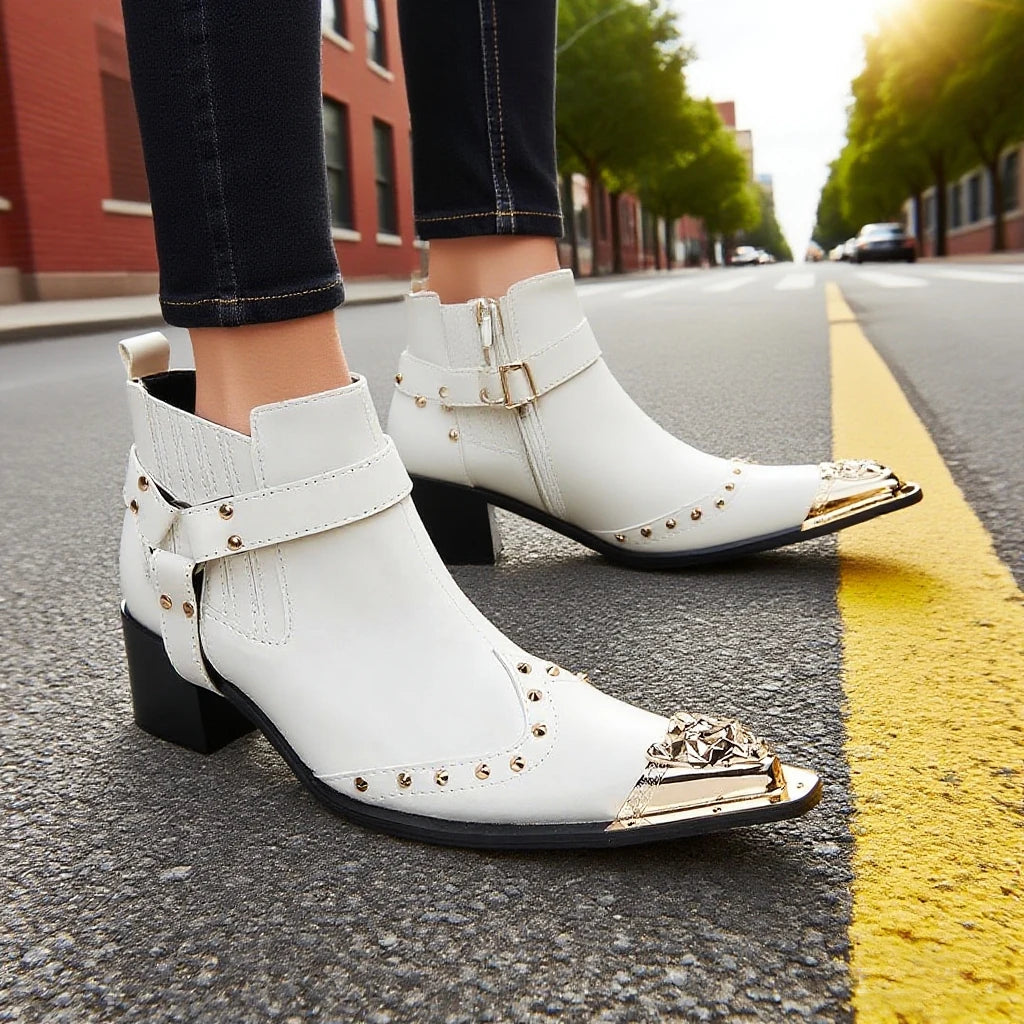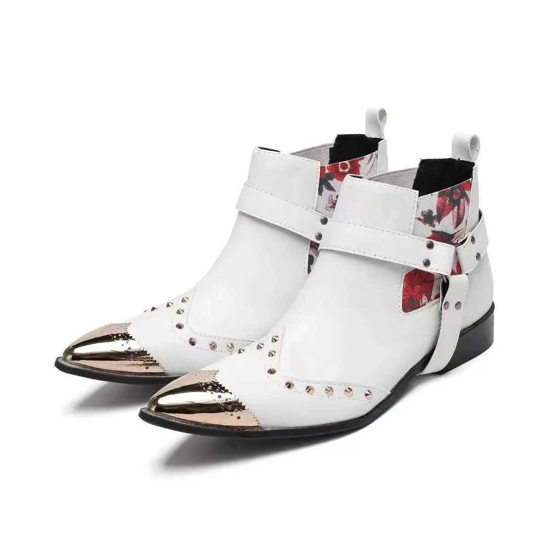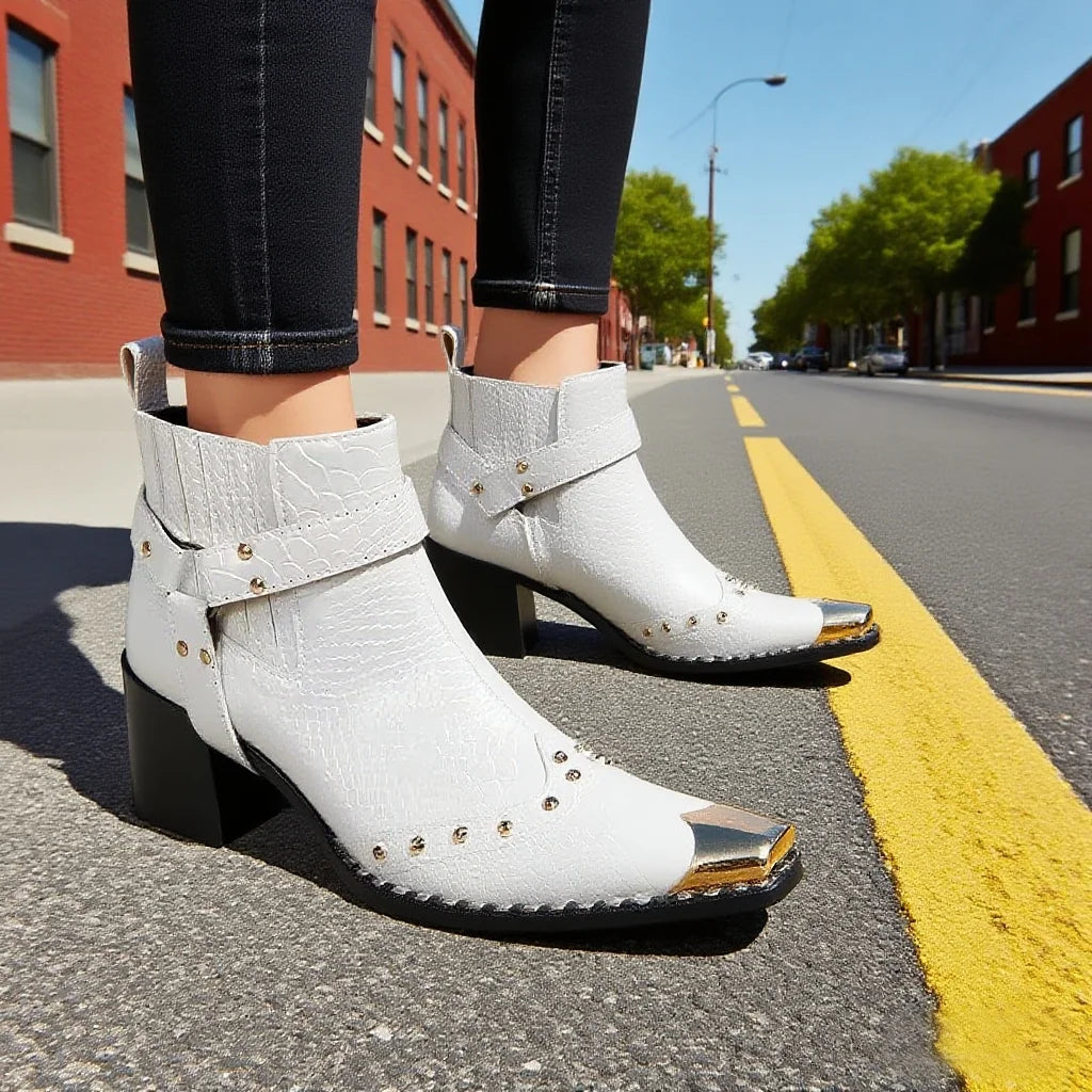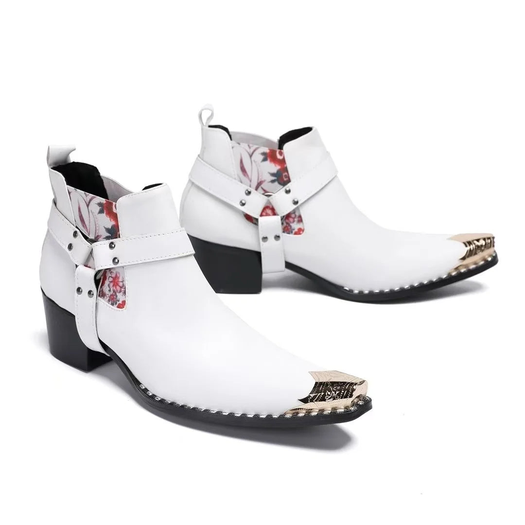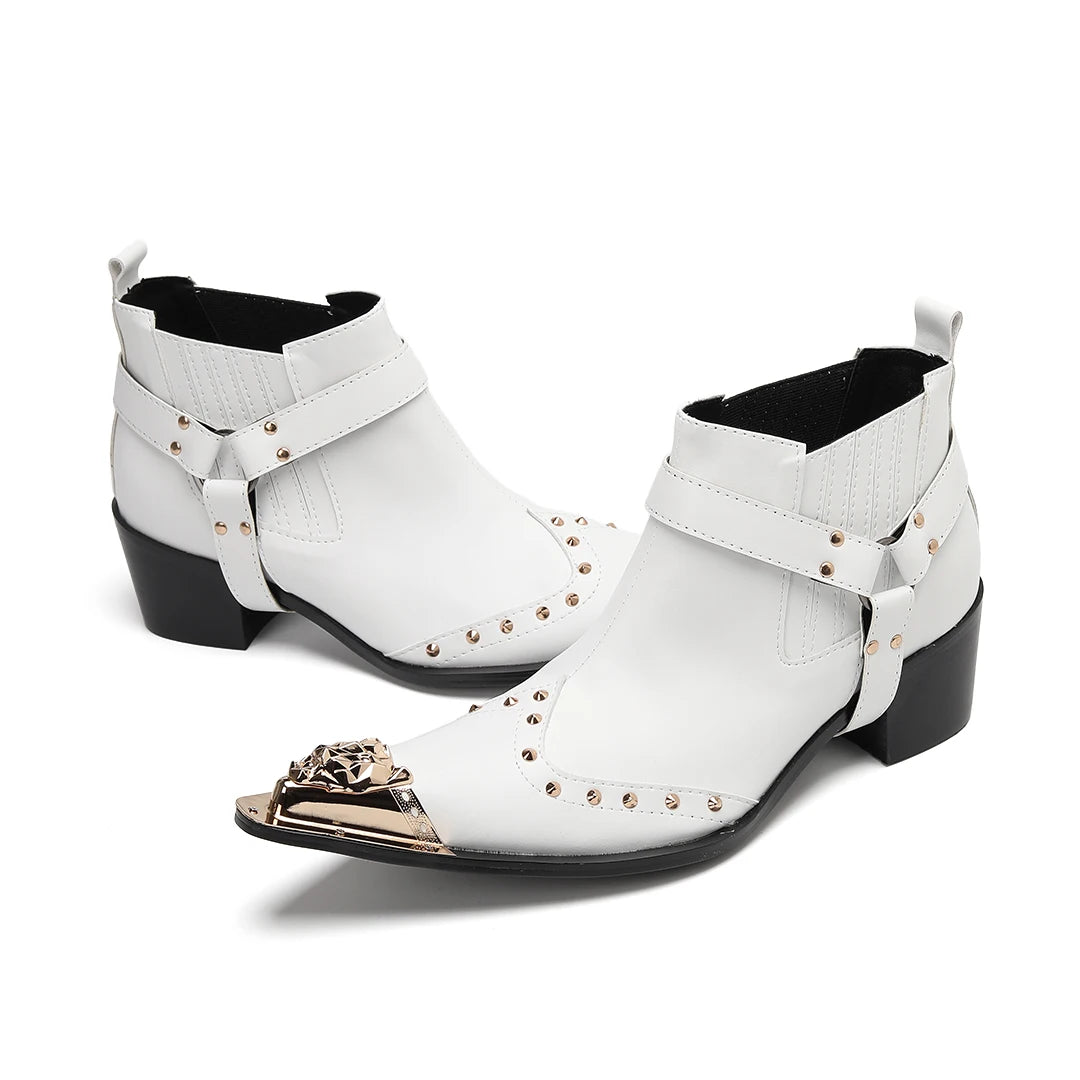 These elegant and stylish men's boots enhance your wardrobe and make you look more stylish. The sleek design with a genuine leather upper and rubber outsole makes it comfortable and durable. Designed with block heels, snakeskin pattern and studded straps, these boots are more than just a fashion accessory. Own it to enhance your wardrobe!