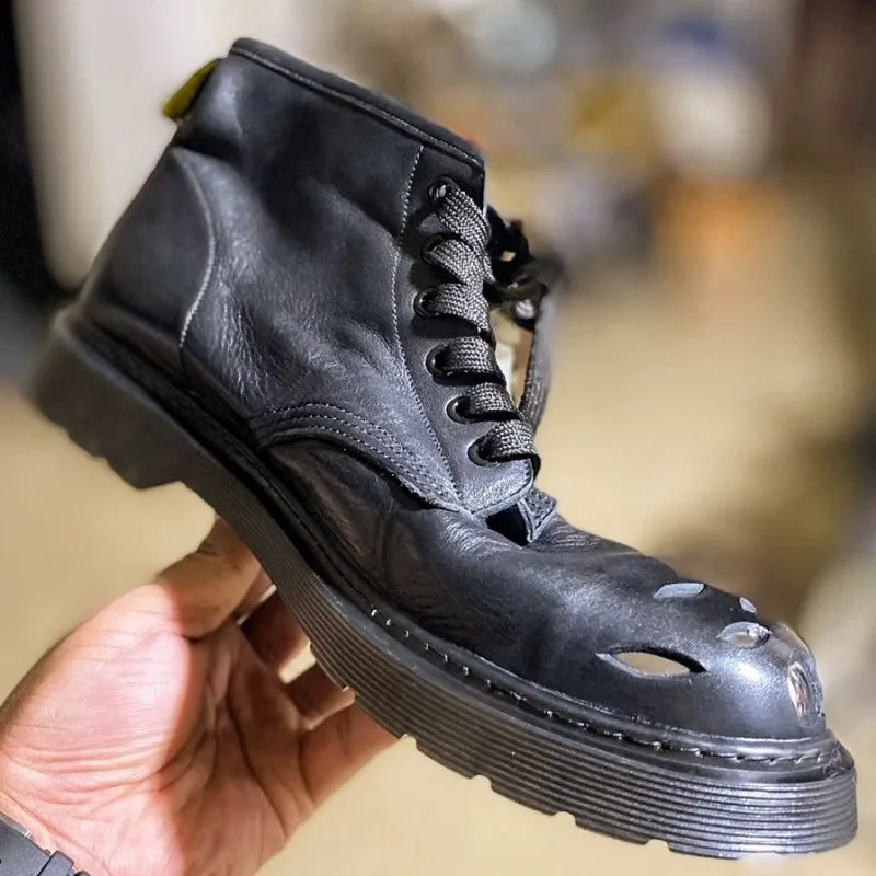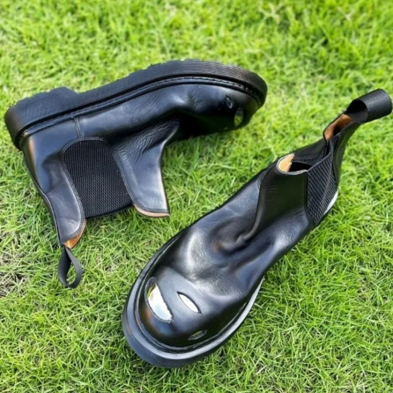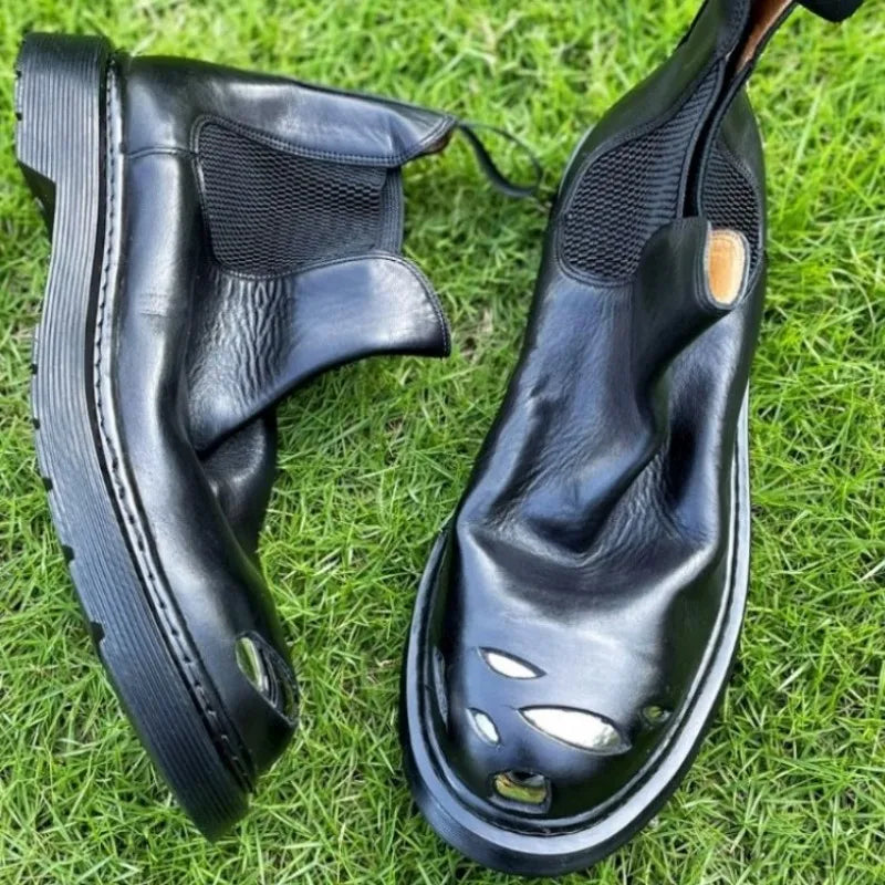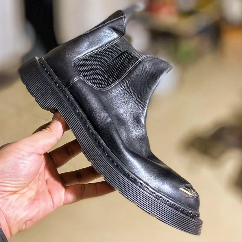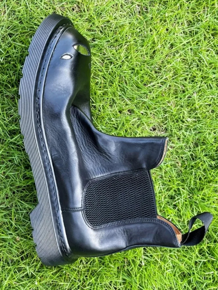 Men's Trendy Handmade Cowhide Platform Slip On Round Toe Lace-Up Ankle Boots
