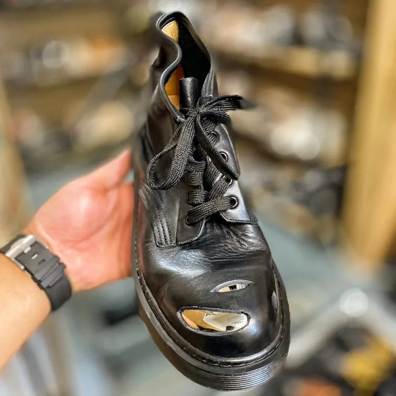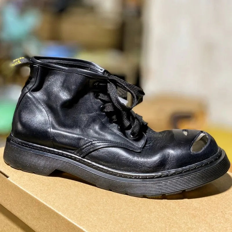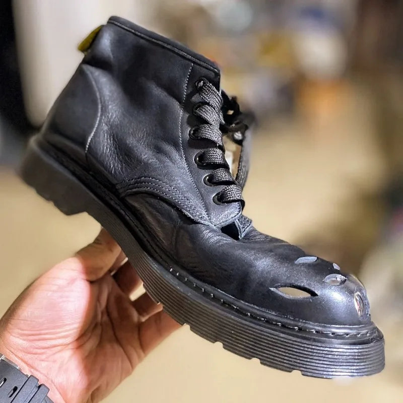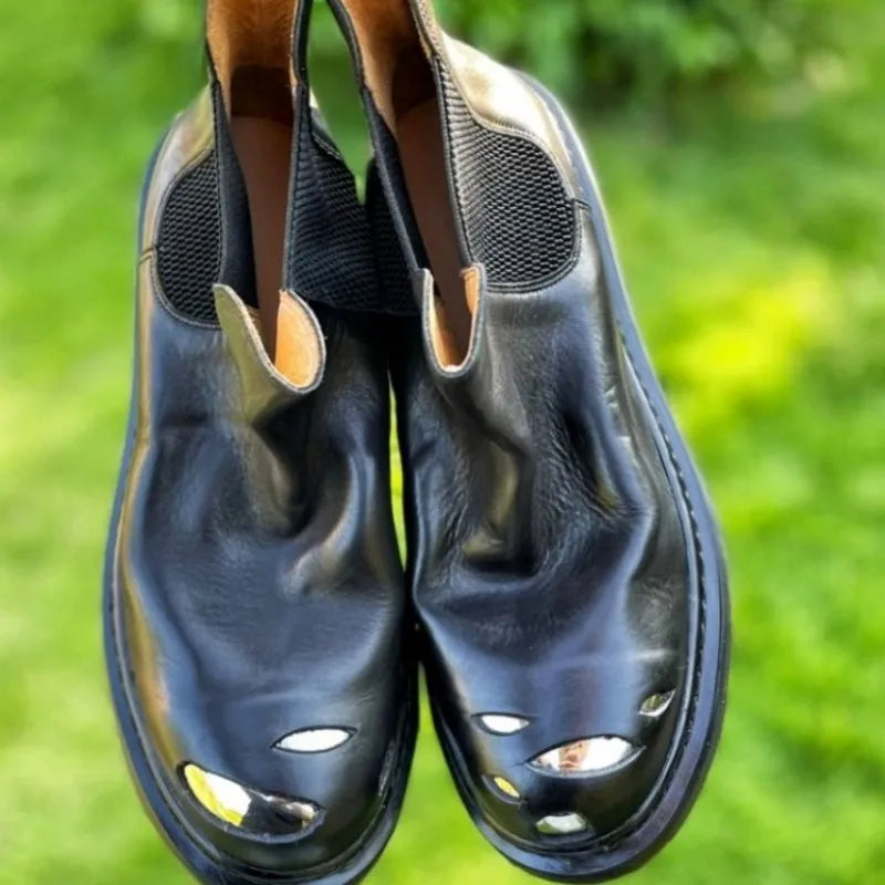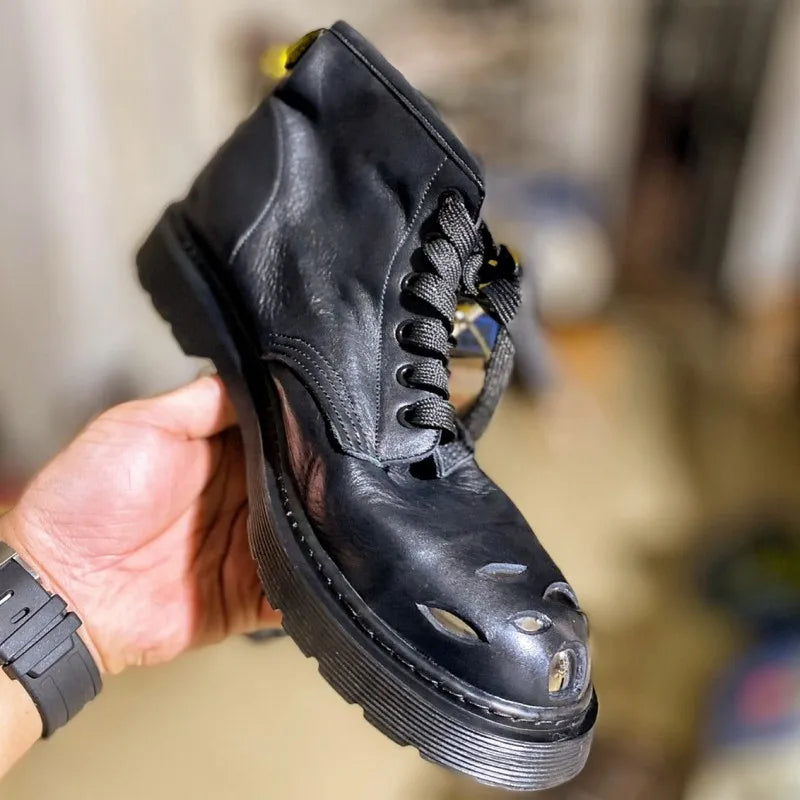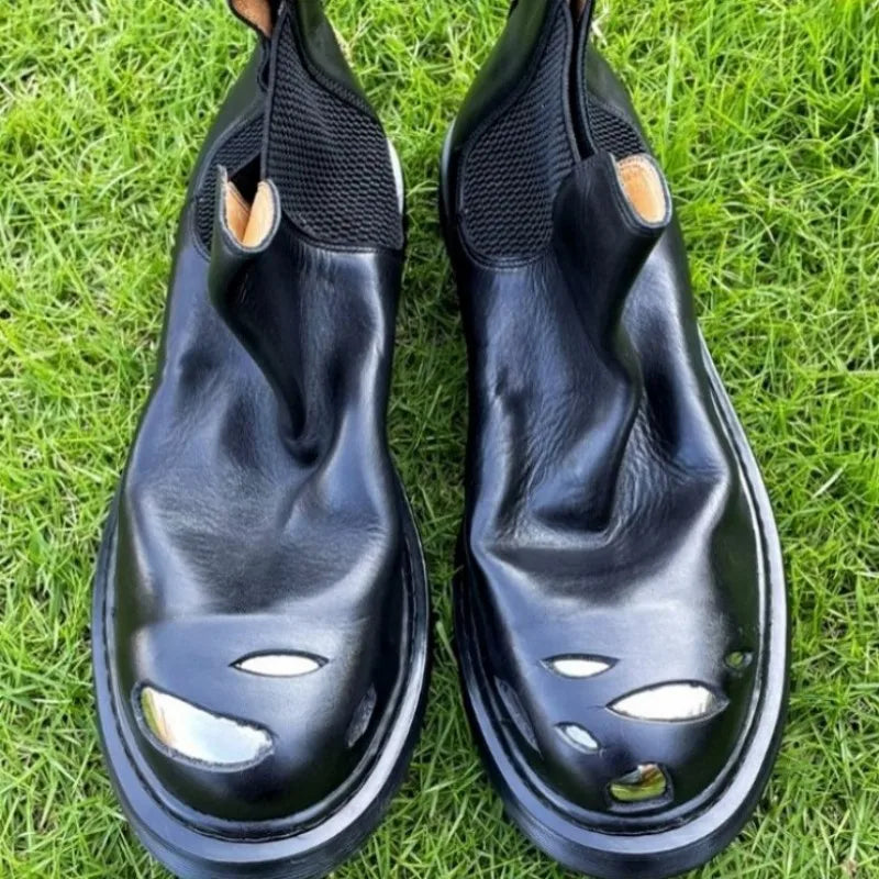 Men's Trendy Handmade Cowhide Platform Slip On Round Toe Lace-Up Ankle Boots