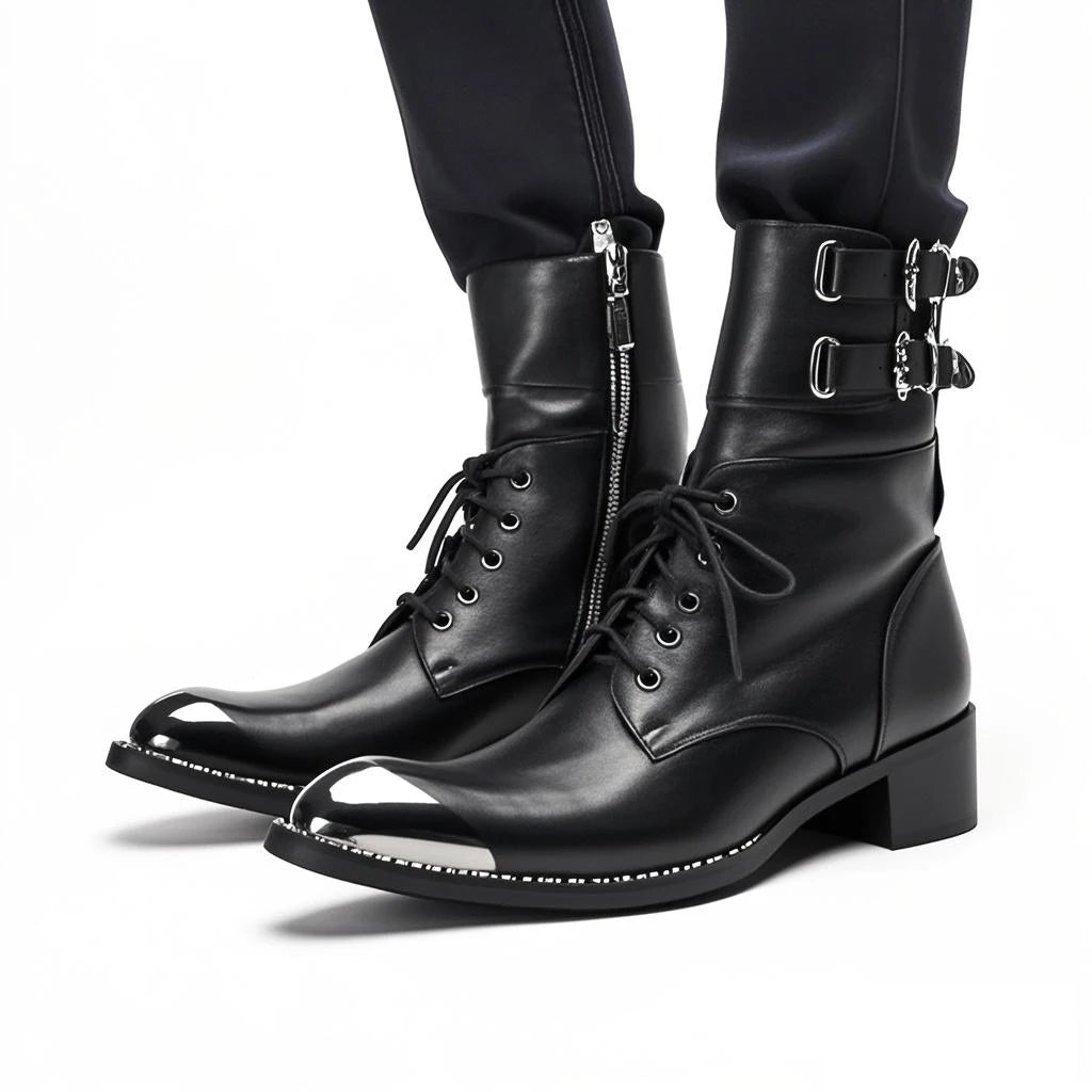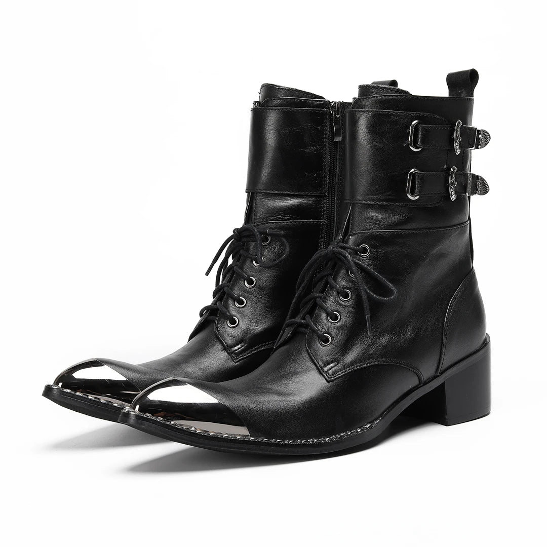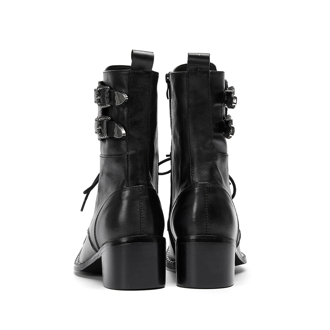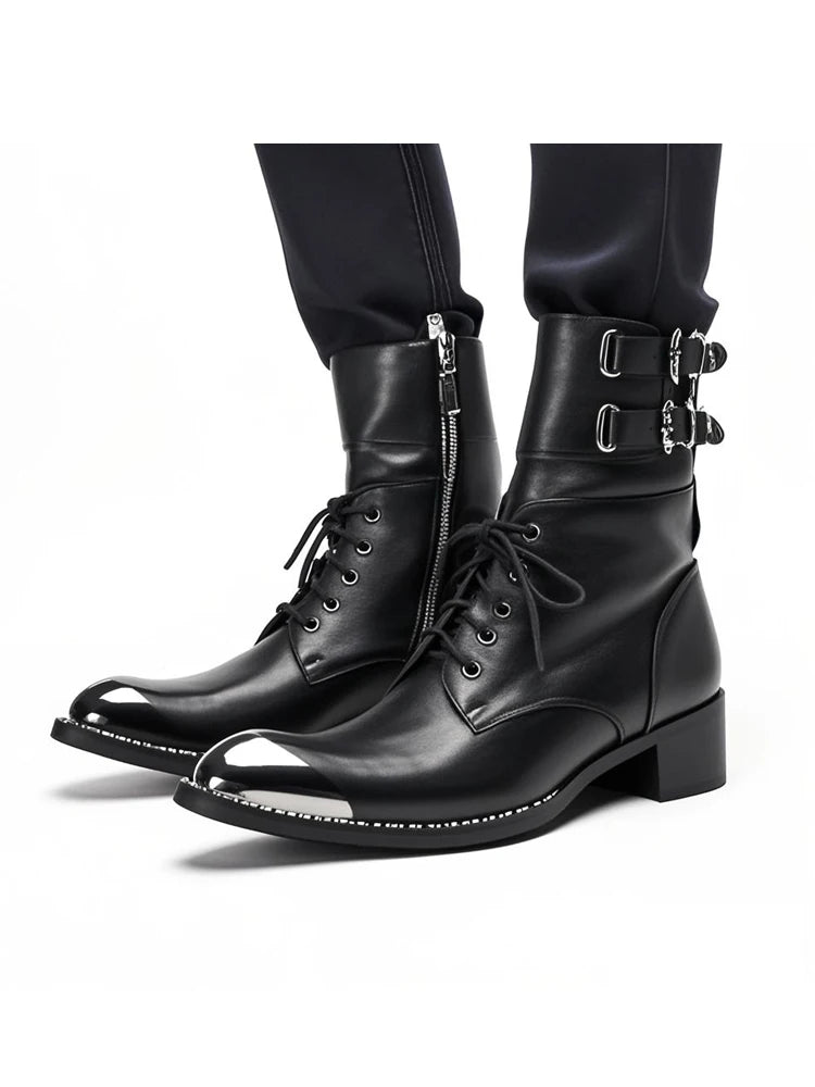 Men's Western Style Belt Buckle Pointed Toe Soft Leather Ankle Boots