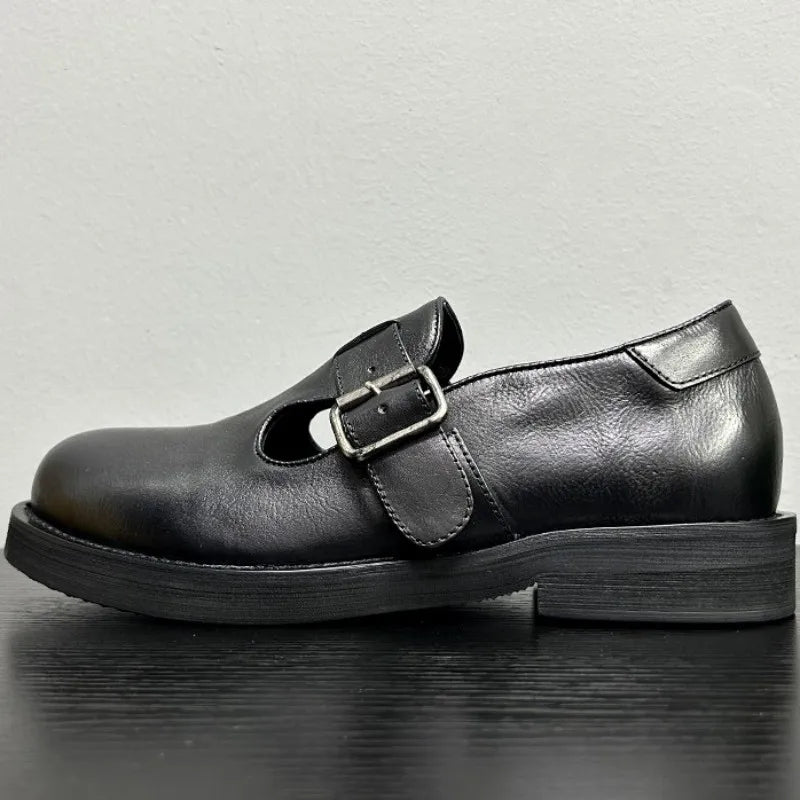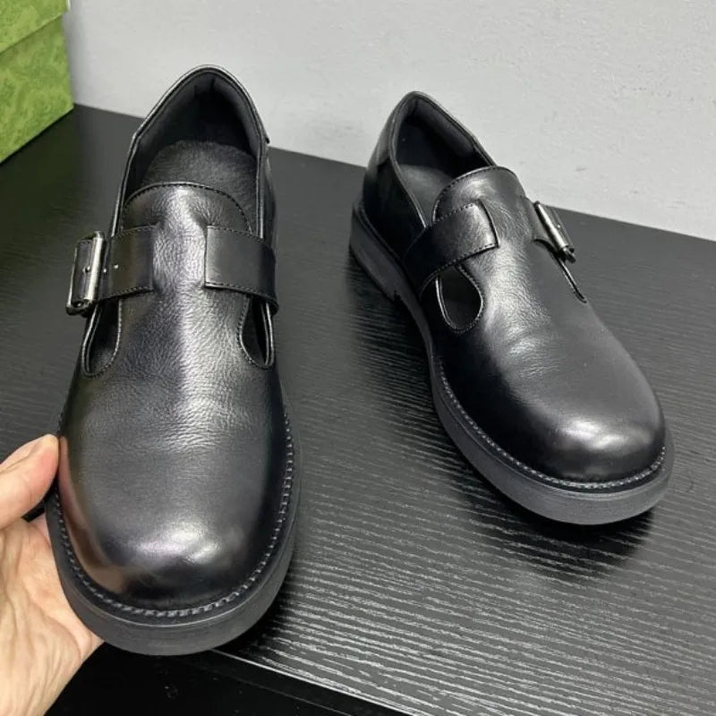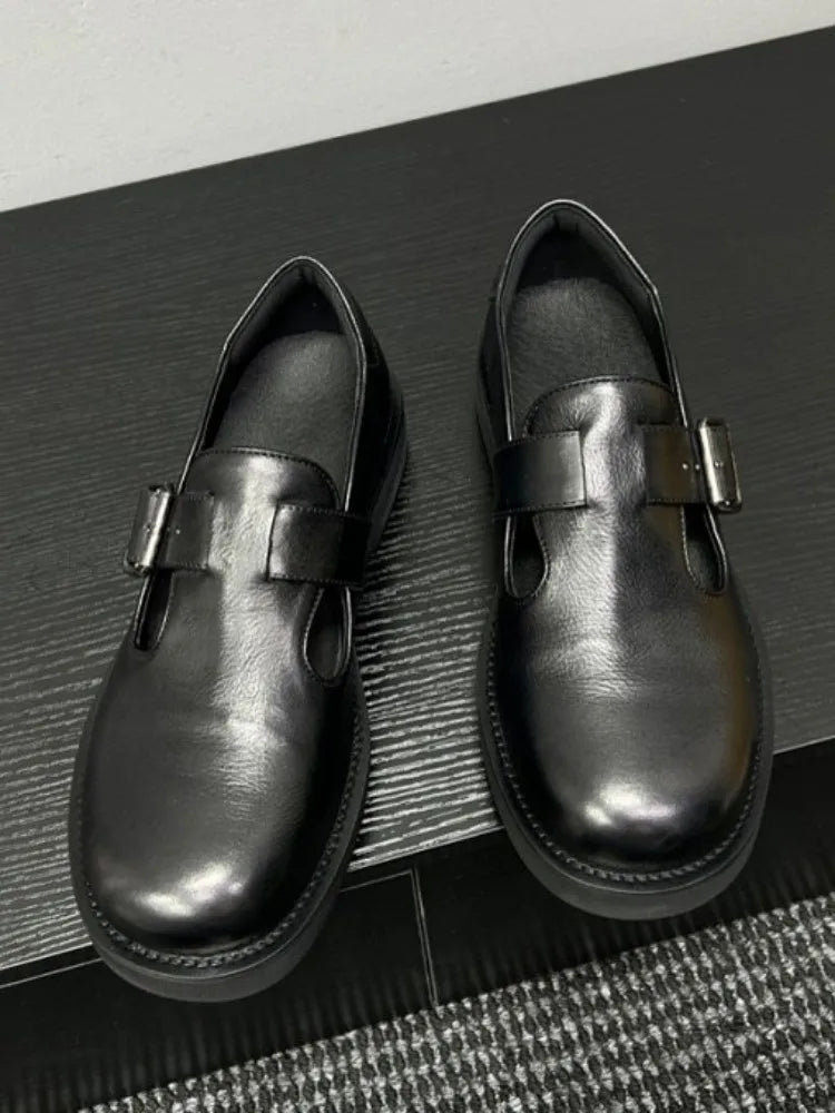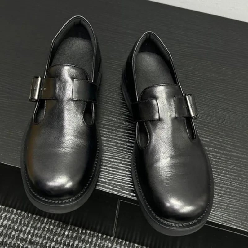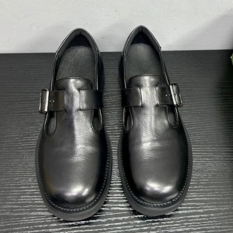 Breathable Cowhide Round Toe Buckle Height Increasing Platform Derby Dress Shoes for Men