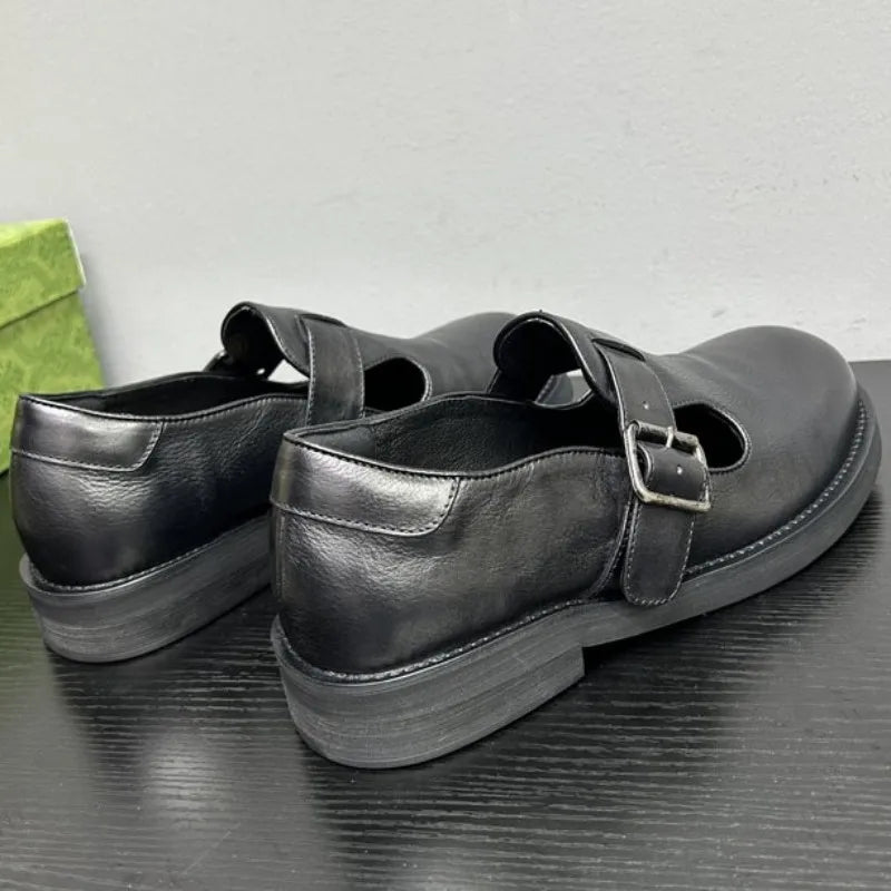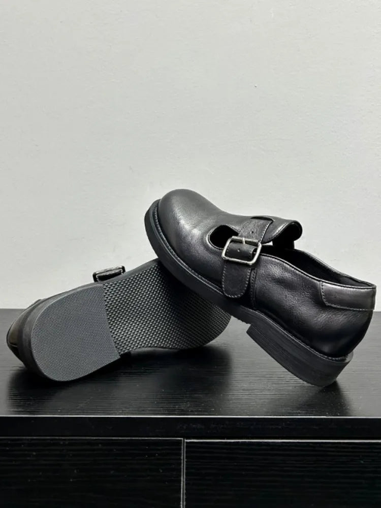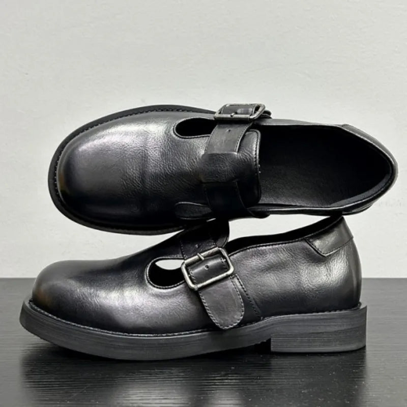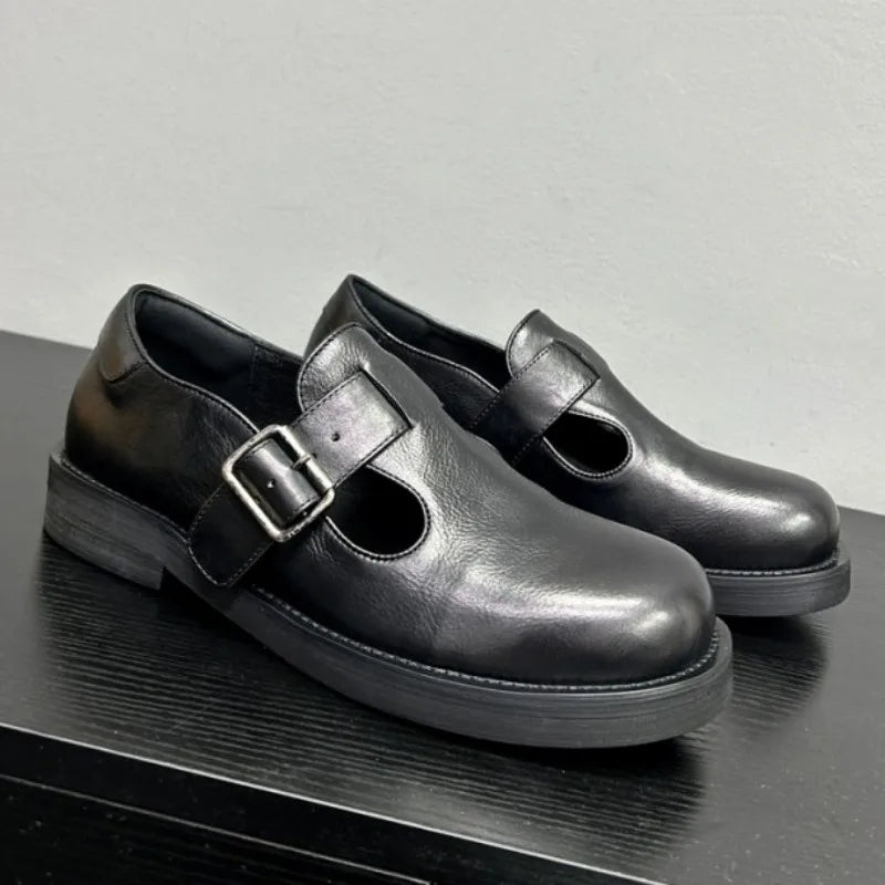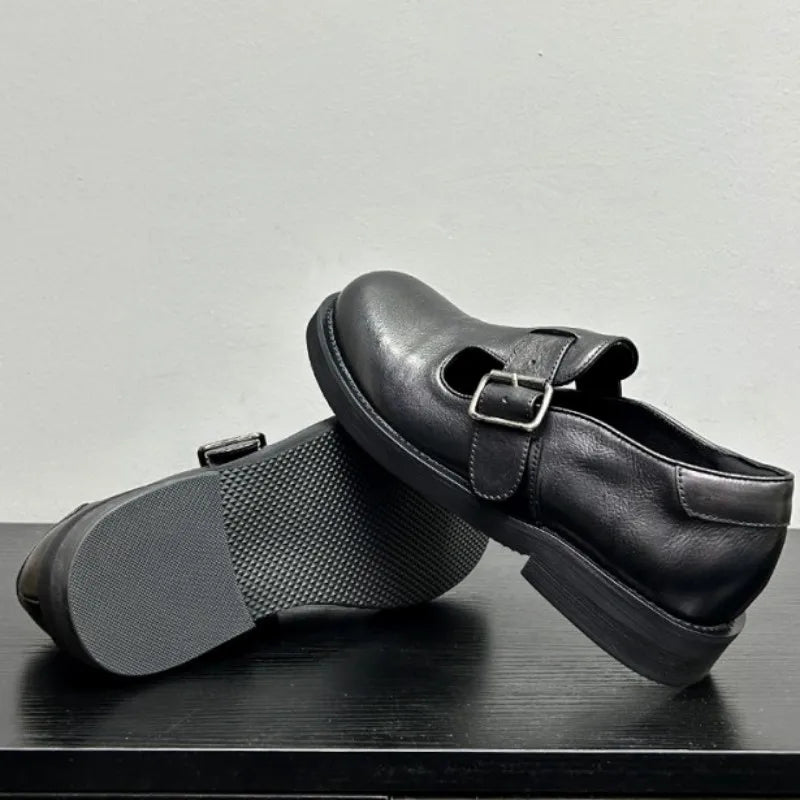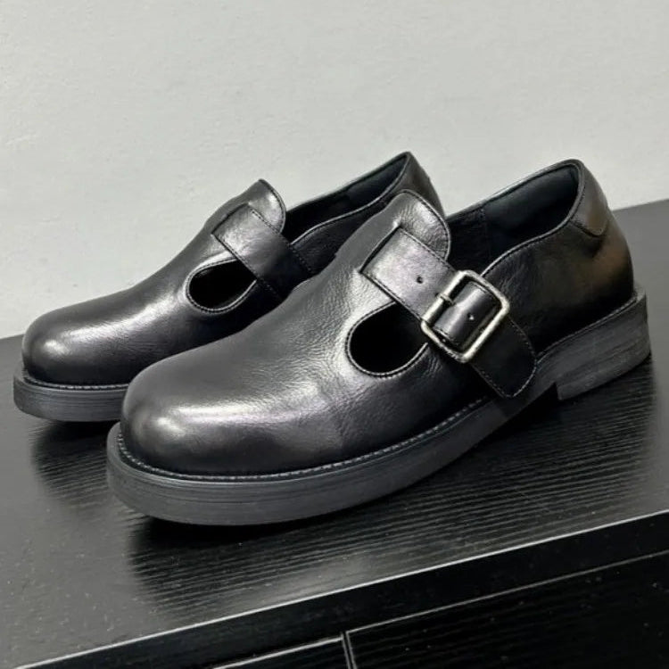 Breathable Cowhide Round Toe Buckle Height Increasing Platform Derby Dress Shoes for Men