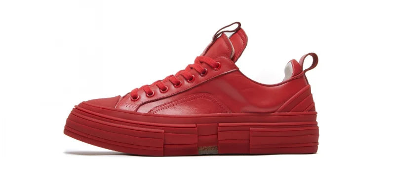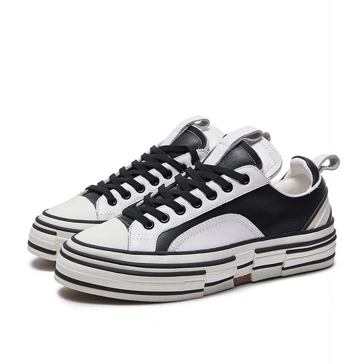 Men's Casual Designer Patchwork Lace Up Round Toe Genuine Leather Sneakers