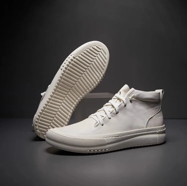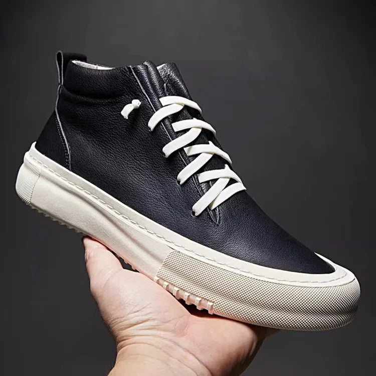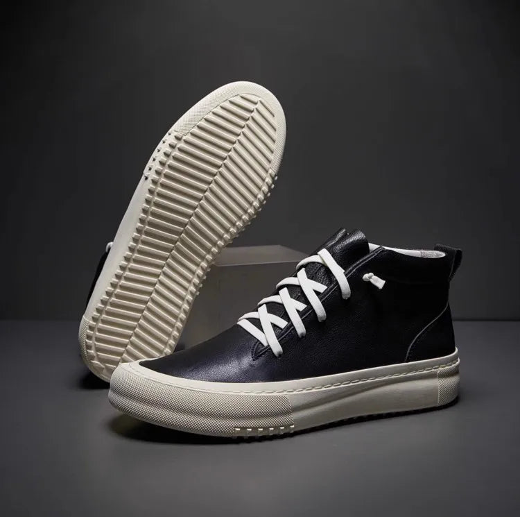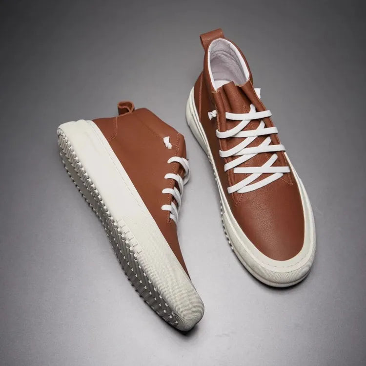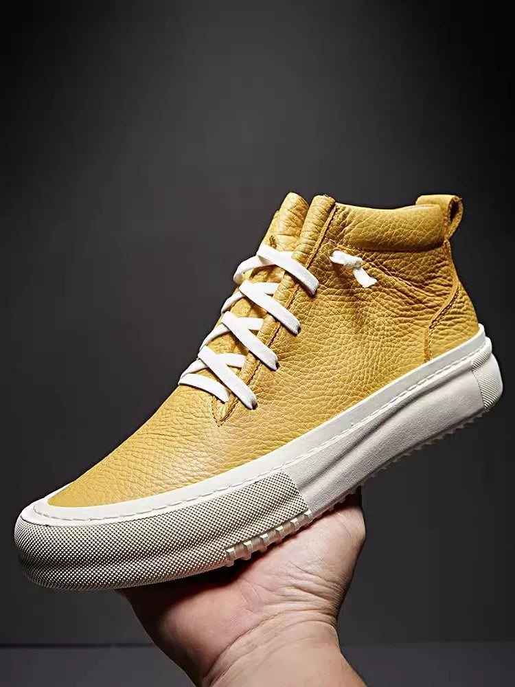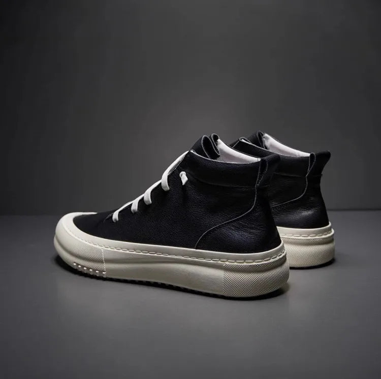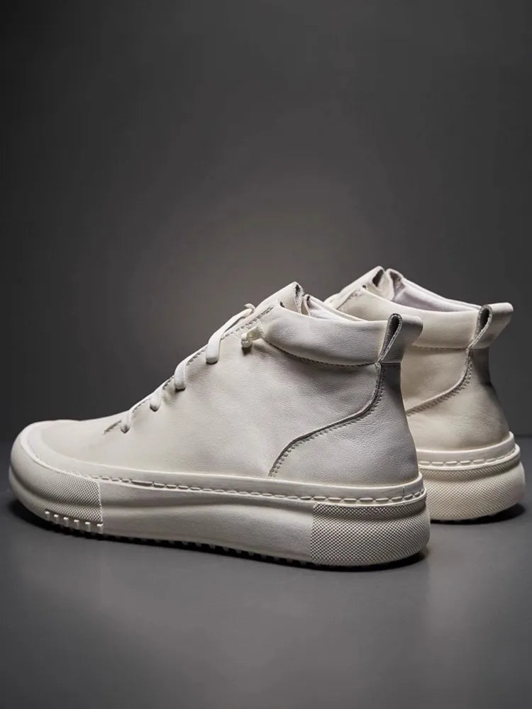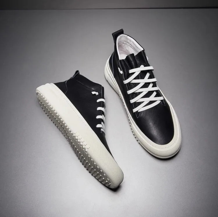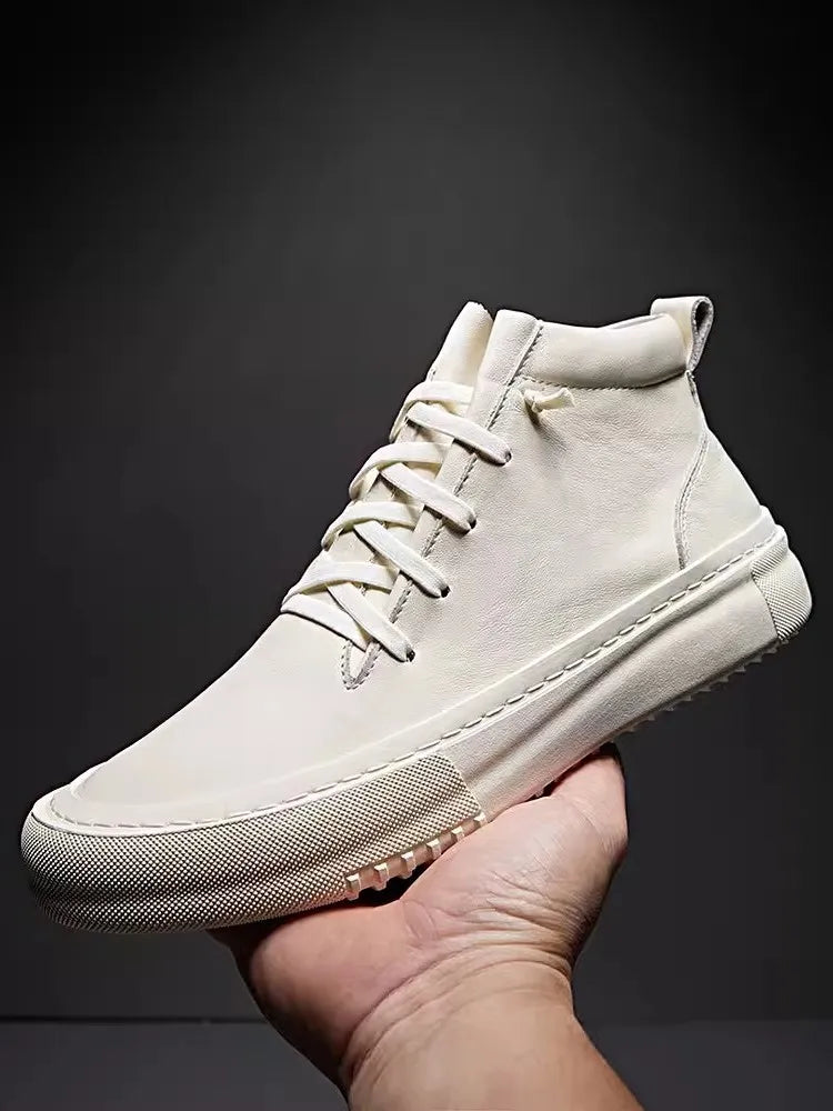 Men's Cowhide Platform Lace Up High Top Skateboard Casual Joggers Sneakers