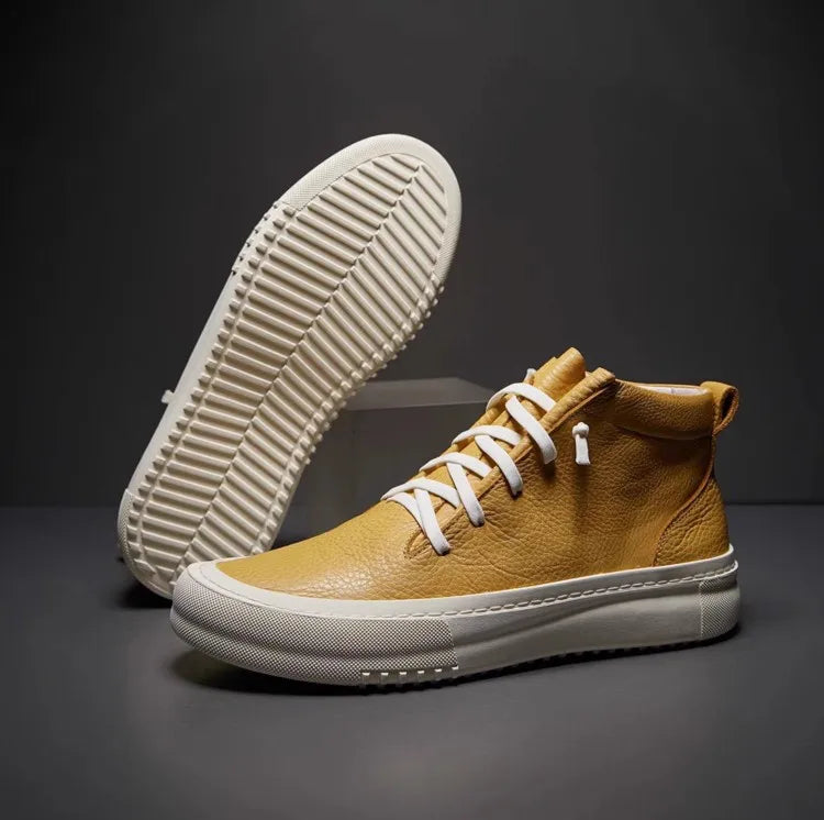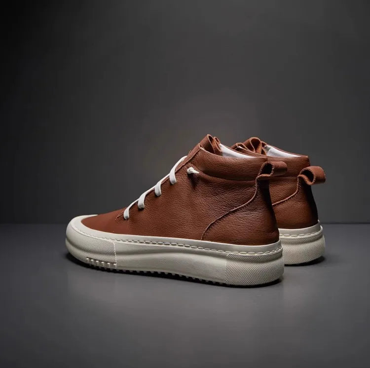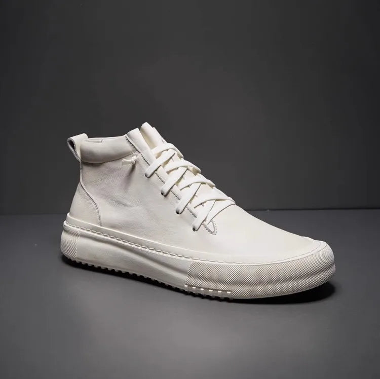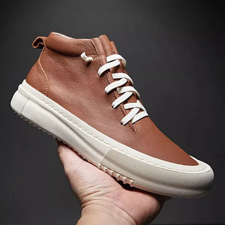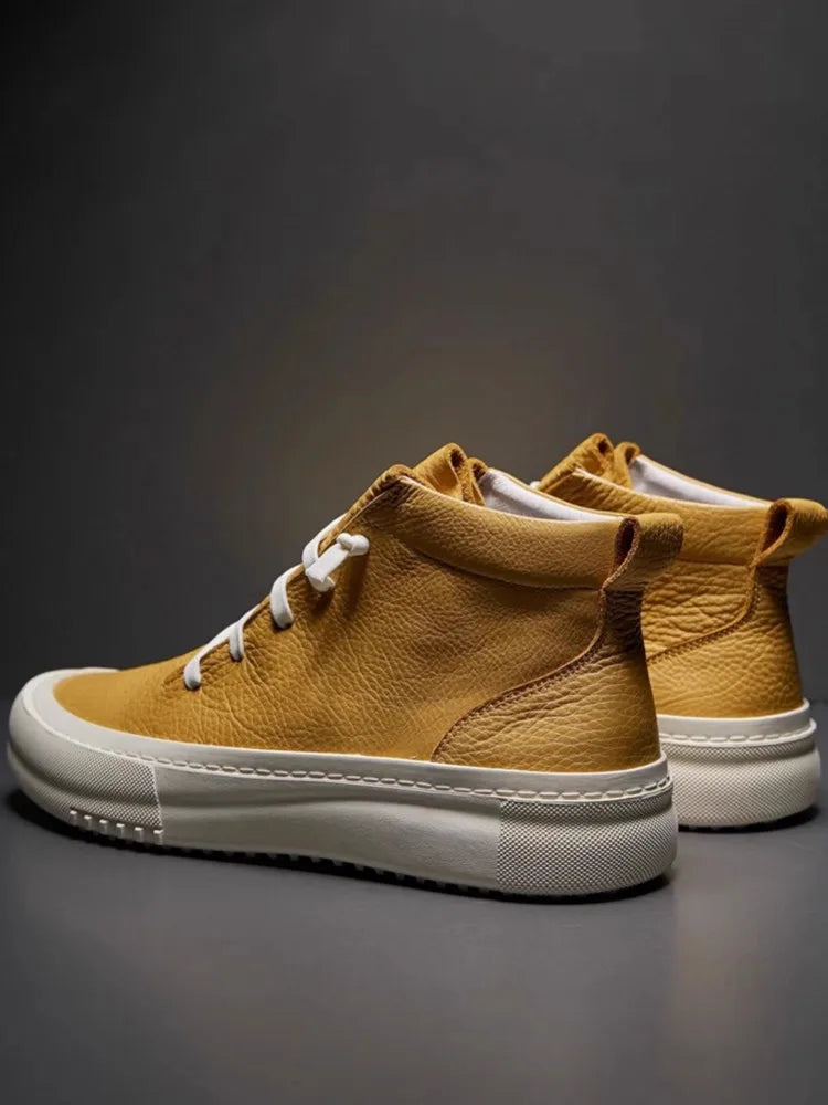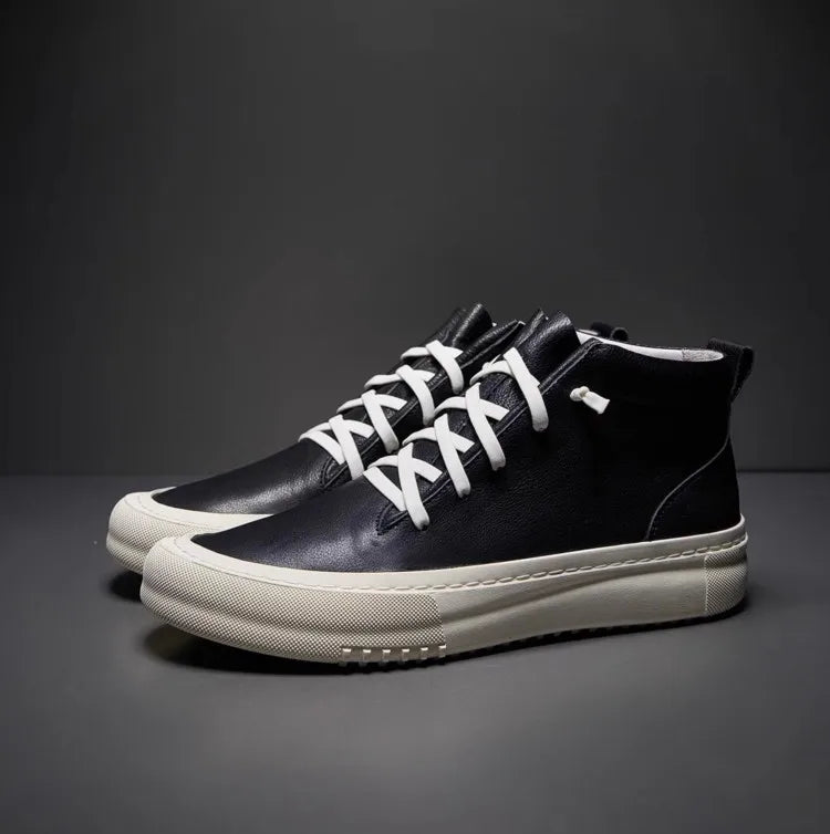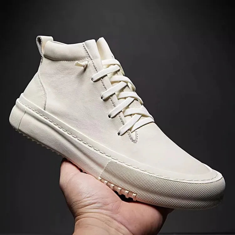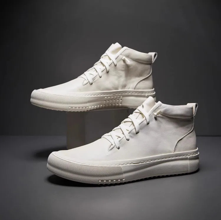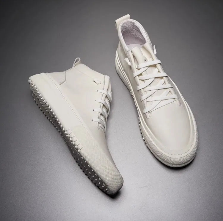 Men's Cowhide Platform Lace Up High Top Skateboard Casual Joggers Sneakers