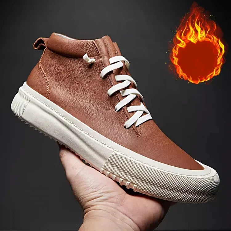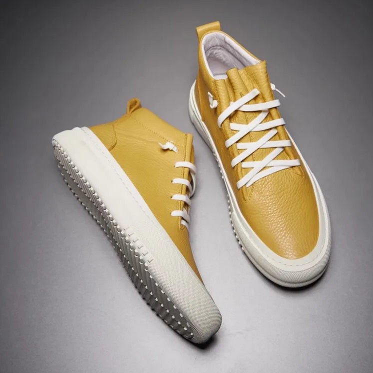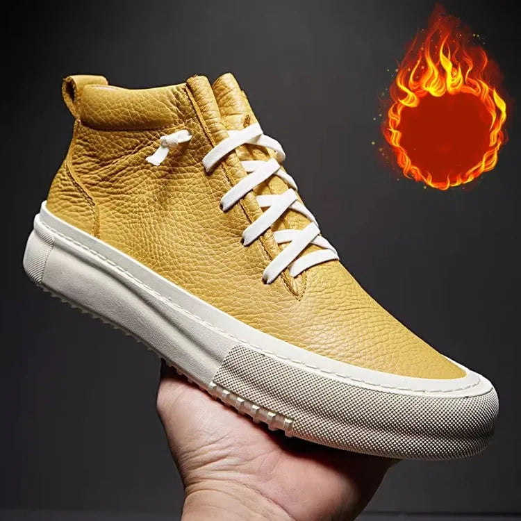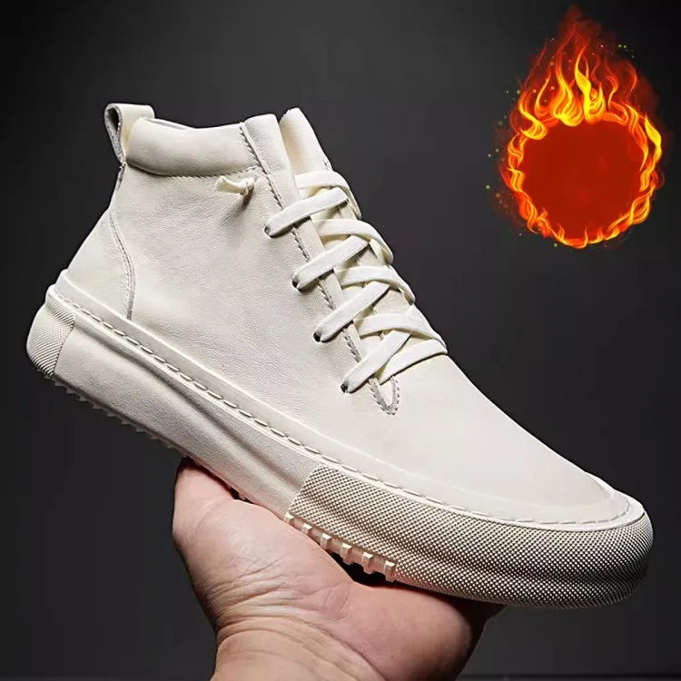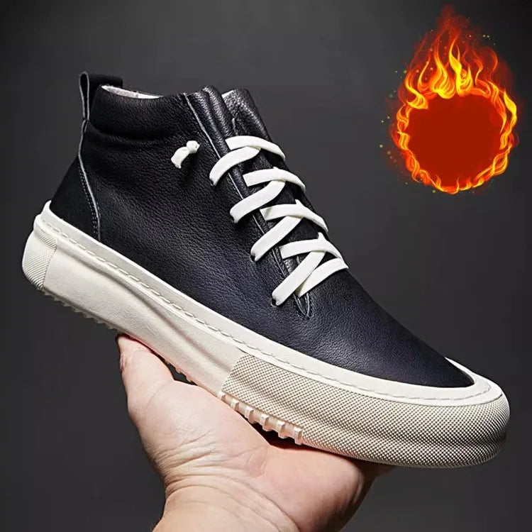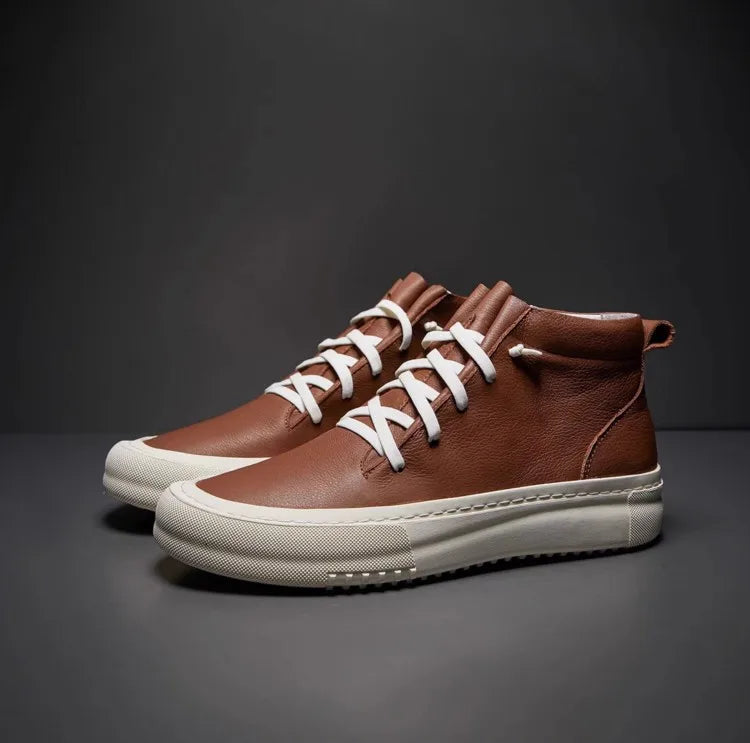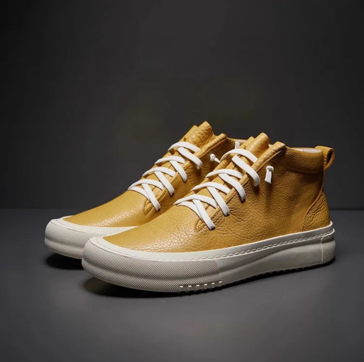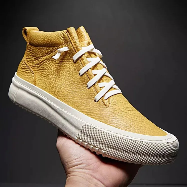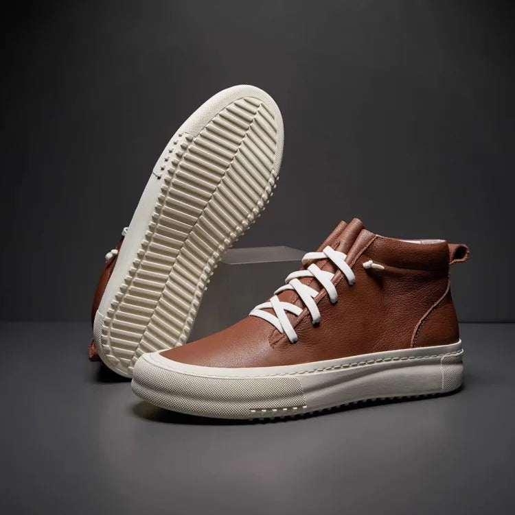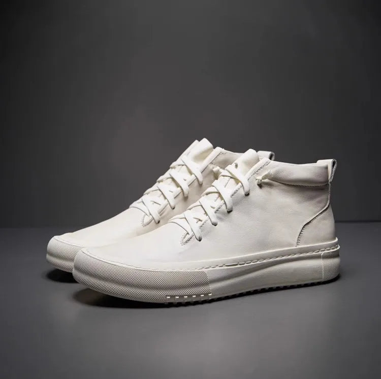 Men's Cowhide Platform Lace Up High Top Skateboard Casual Joggers Sneakers