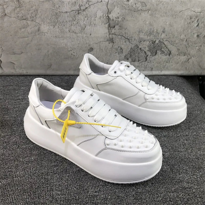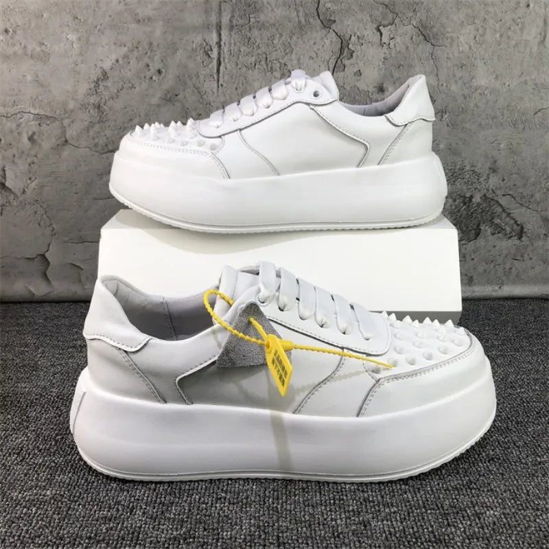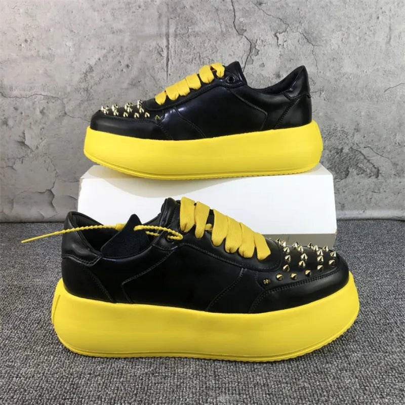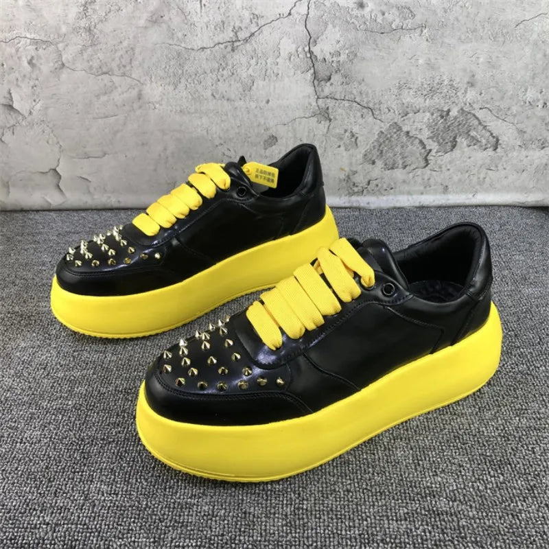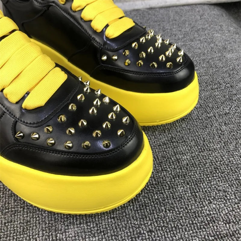 Men's Lace Up Thick Bottom Designer Punk Style Rivet Casual Sneakers