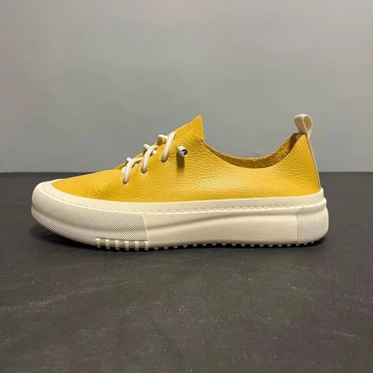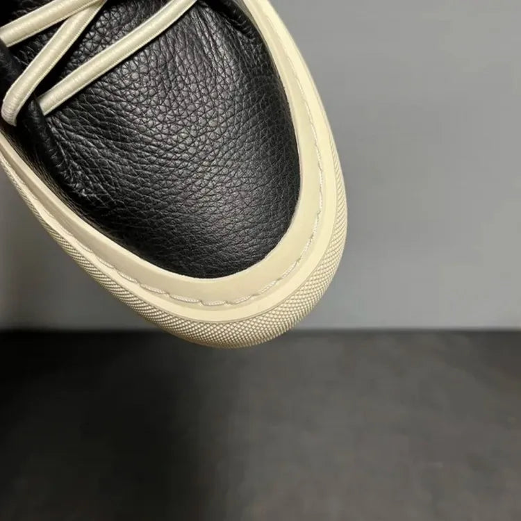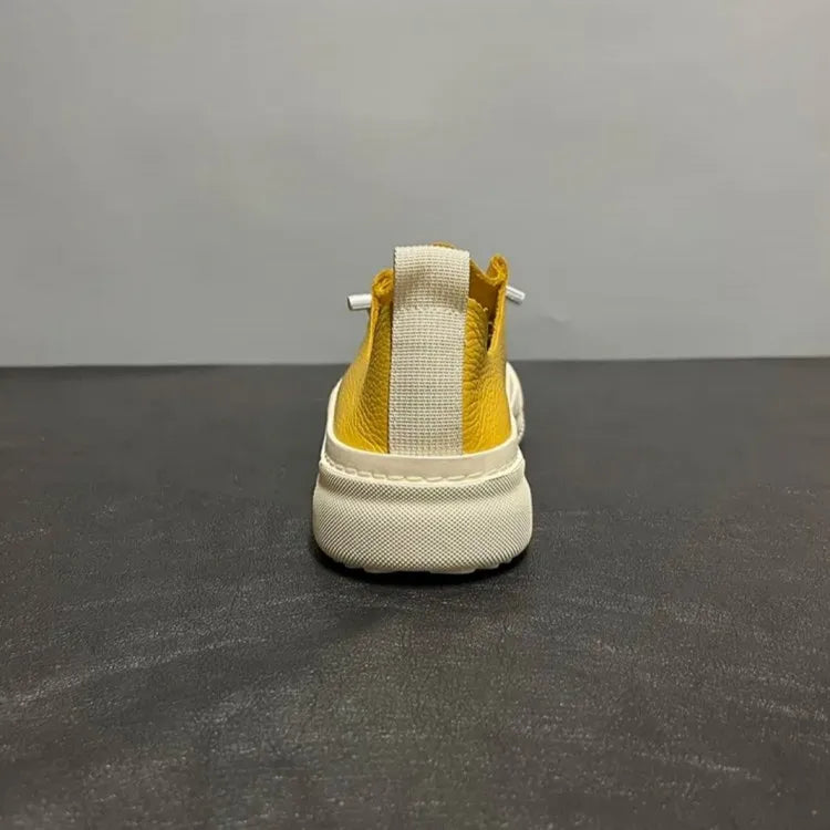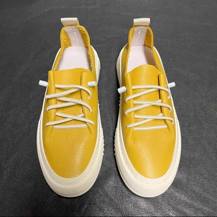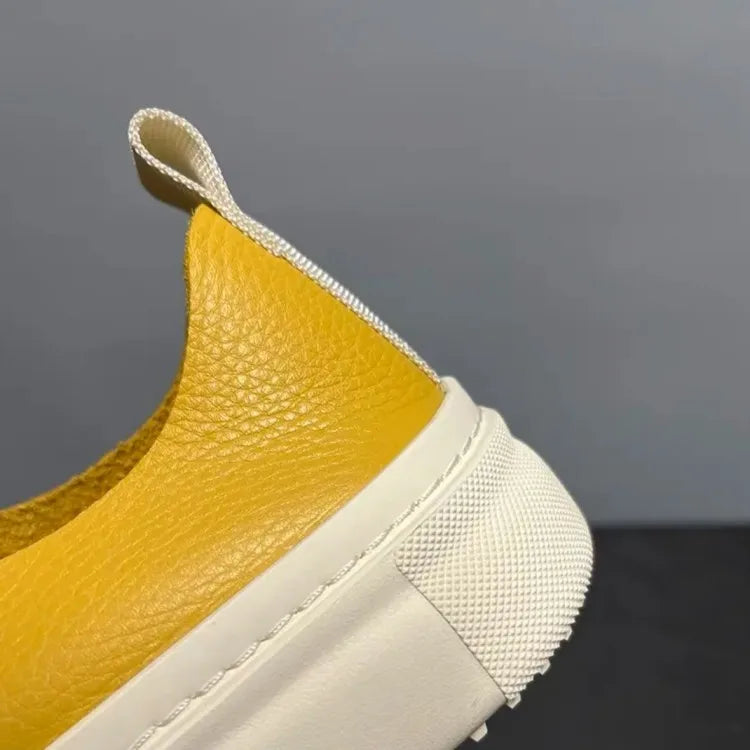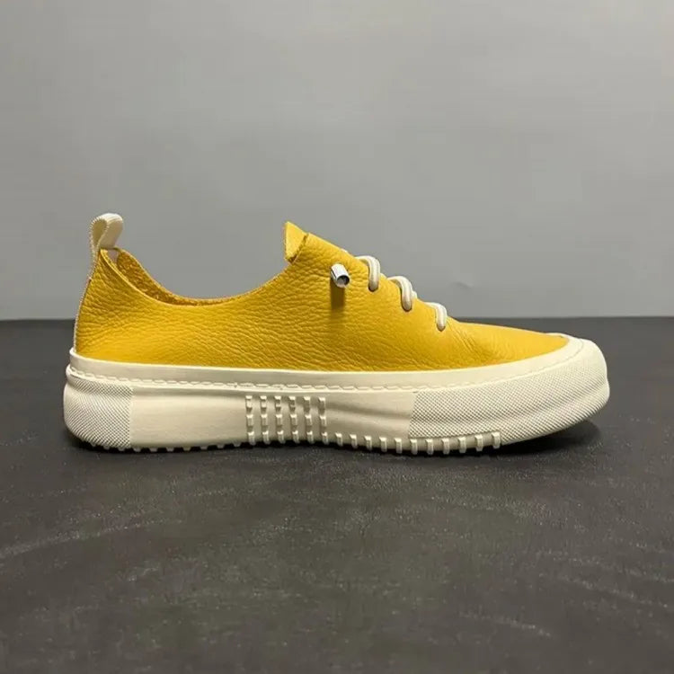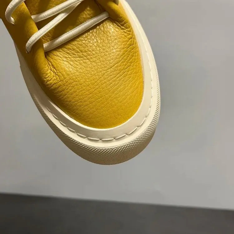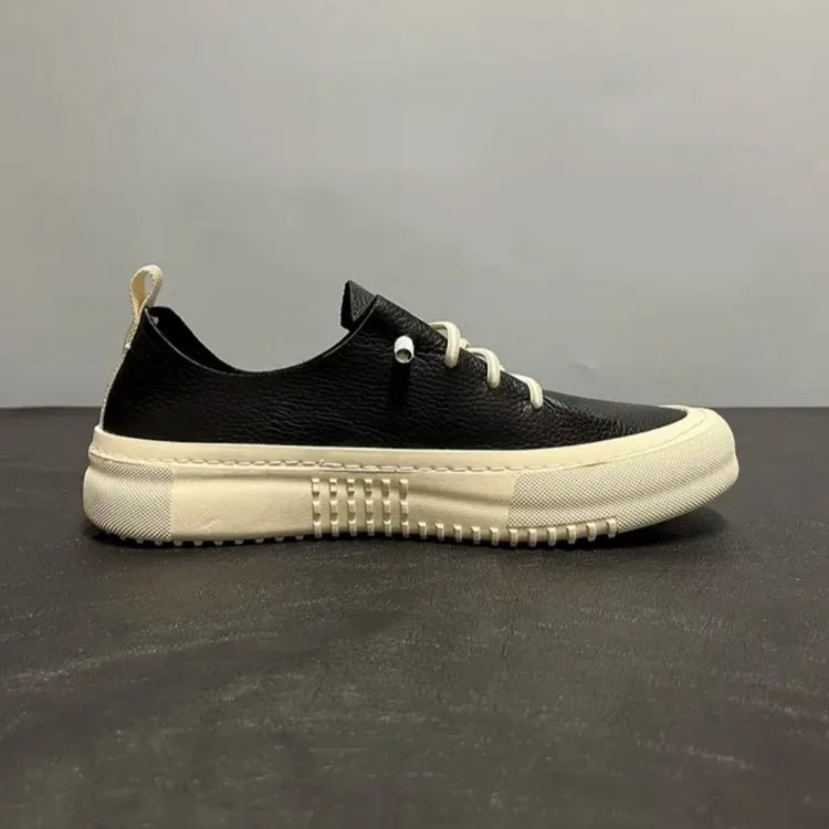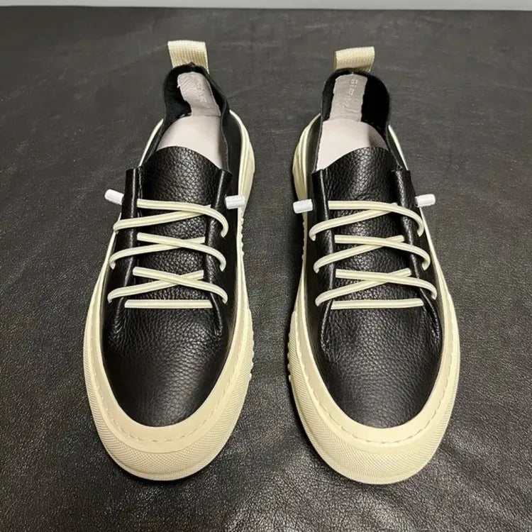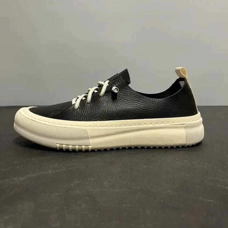Men's Soft Genuine Leather Breathable Thick Platform Casual Skateboard Sneakers
