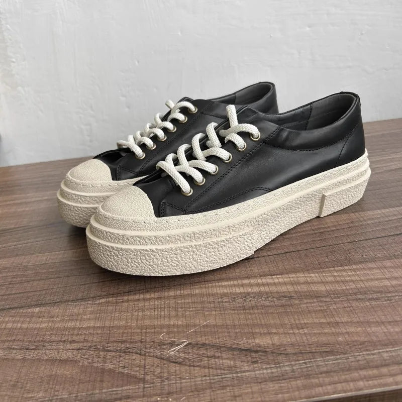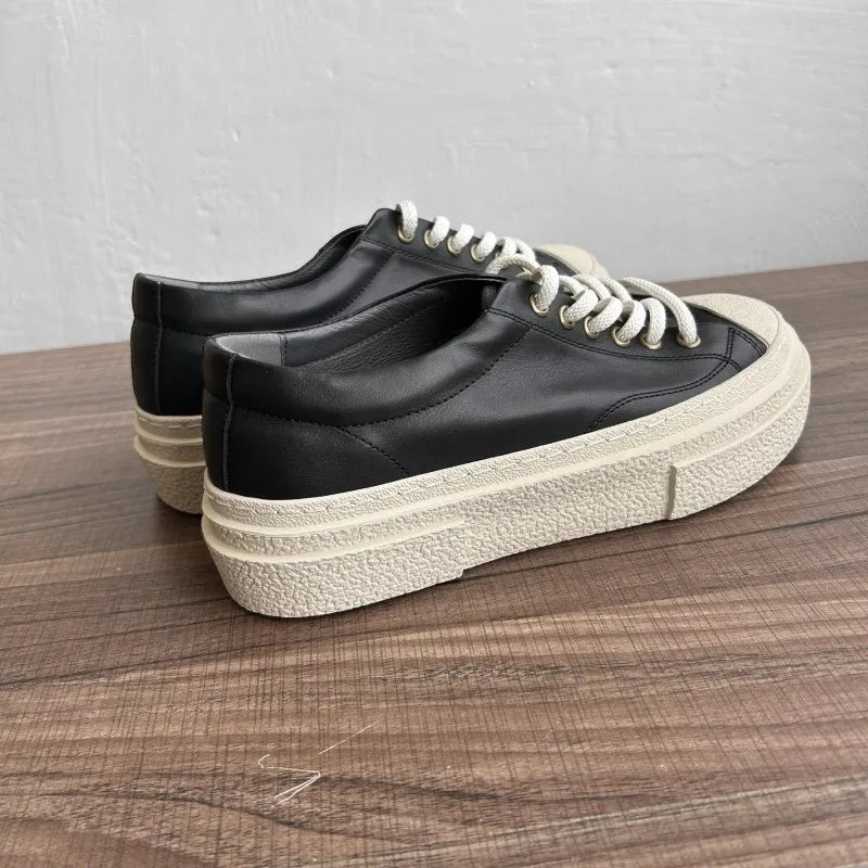 Men's Thick Platform Breathable Low Cut Lace Up Casual Skateboard Jogger Sneakers