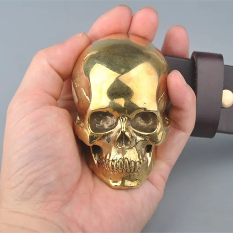 Cowboy Fashion Men's 38mm Brass Metal Oval Skull Ring Belt Buckle