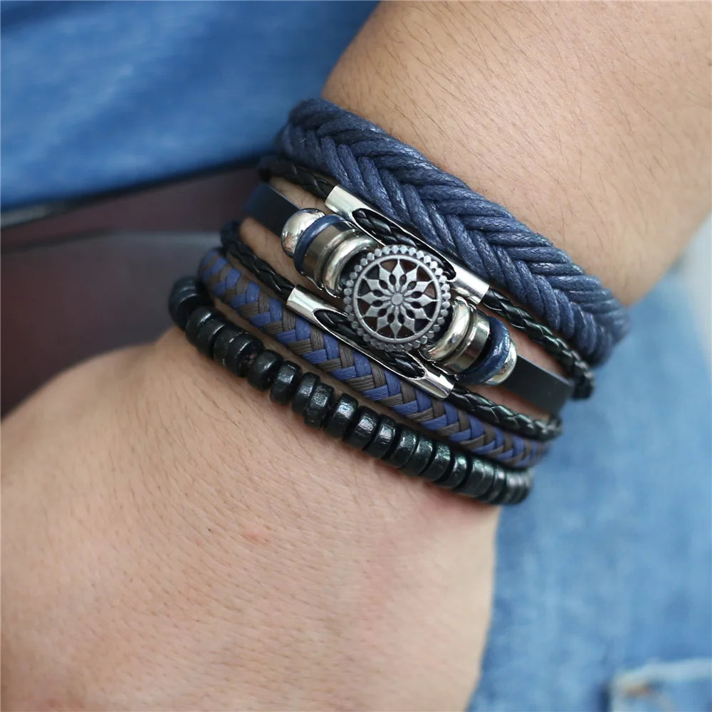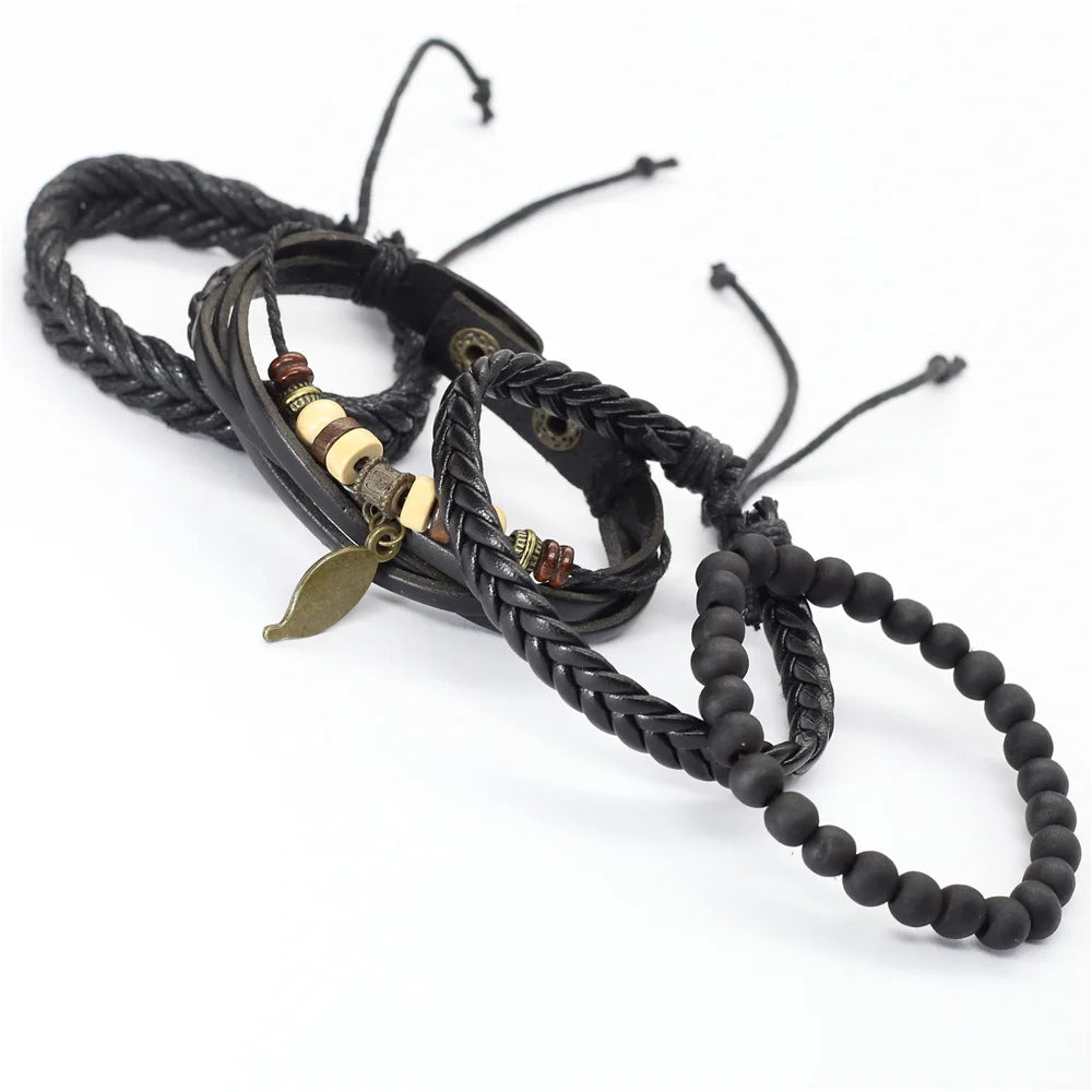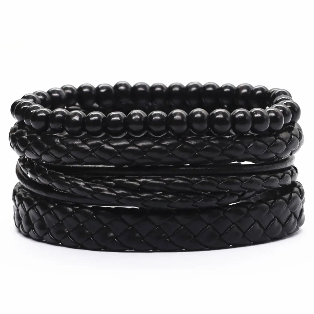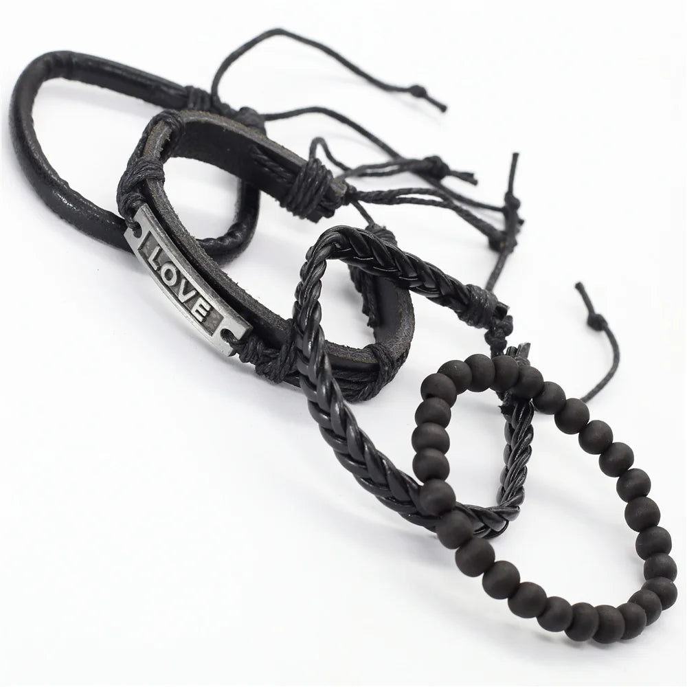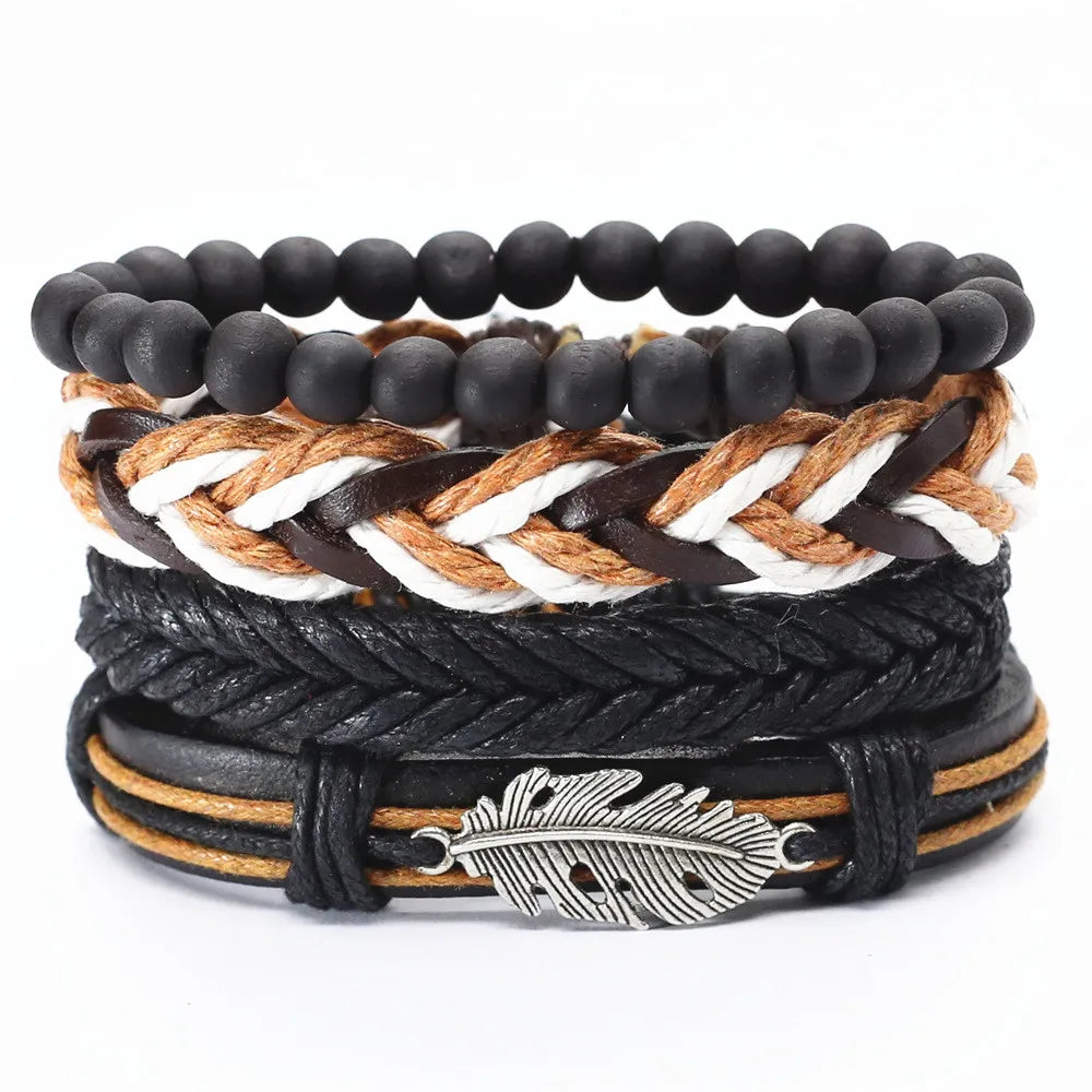 Elevate your wardrobe with this stylish 4-piece bracelet set that suits the fashion needs of both men and women. The leather keeps you comfortable while the woven pattern and charms make it look unique and trendy. Wear it to add a finishing touch to your look. Order now!