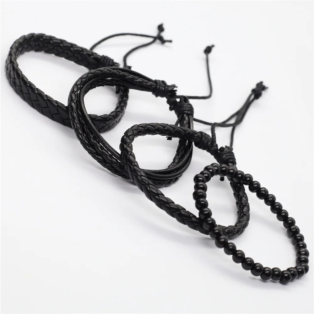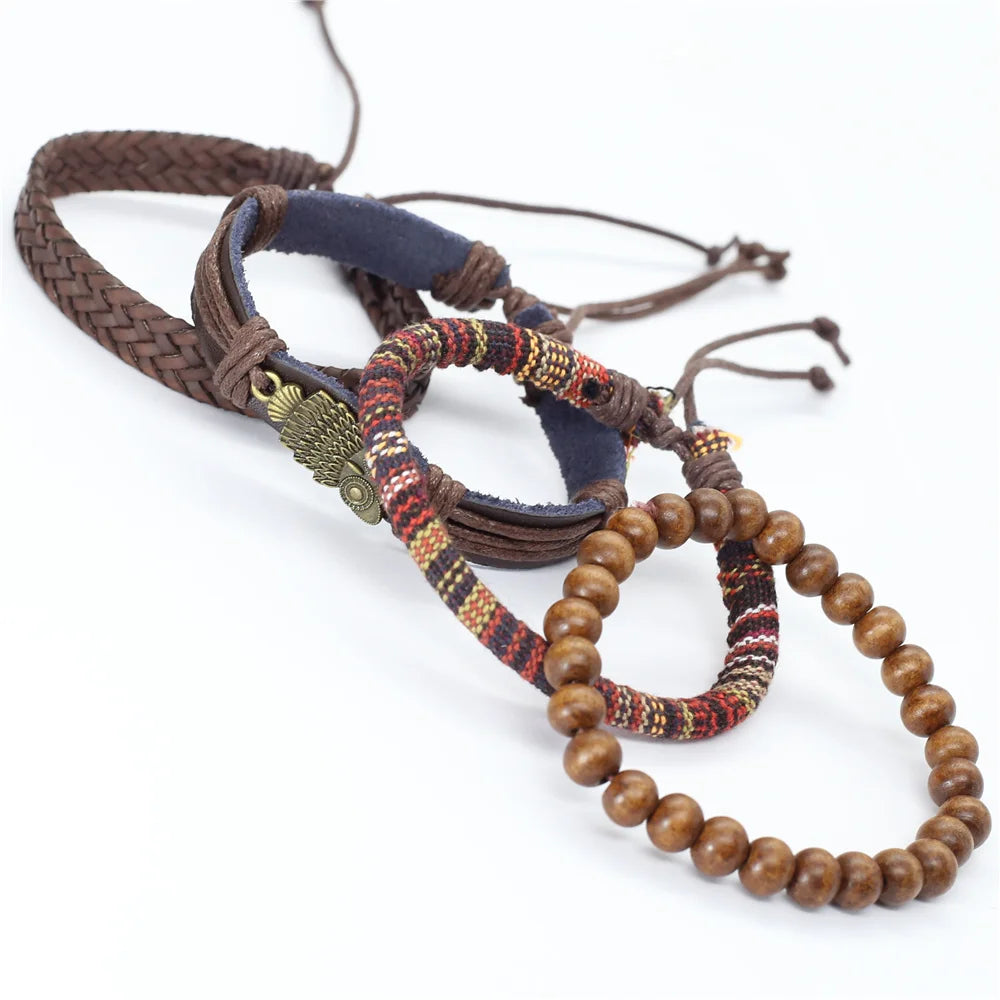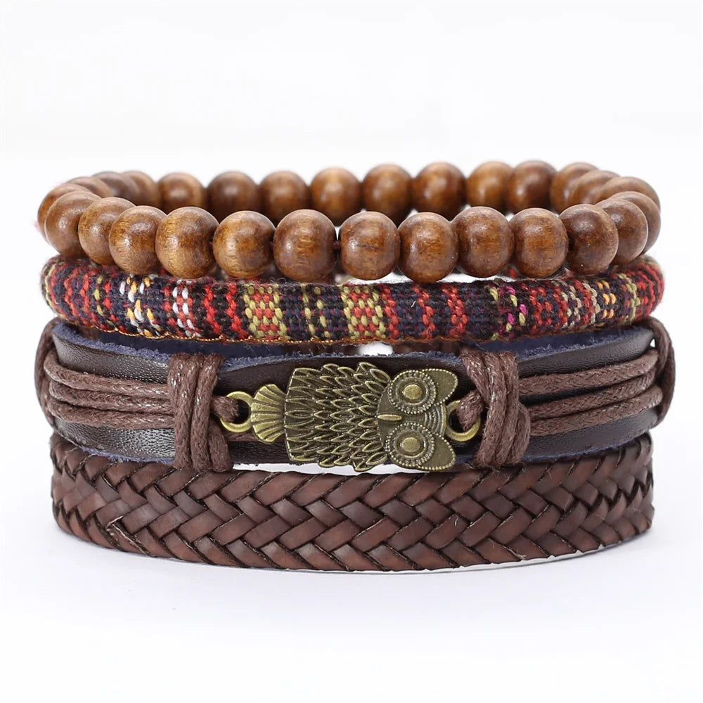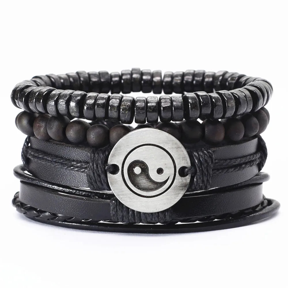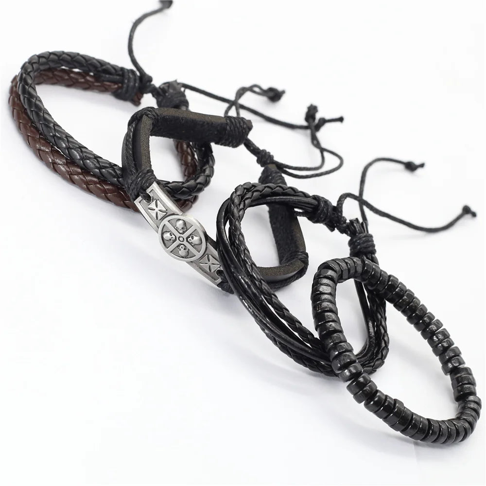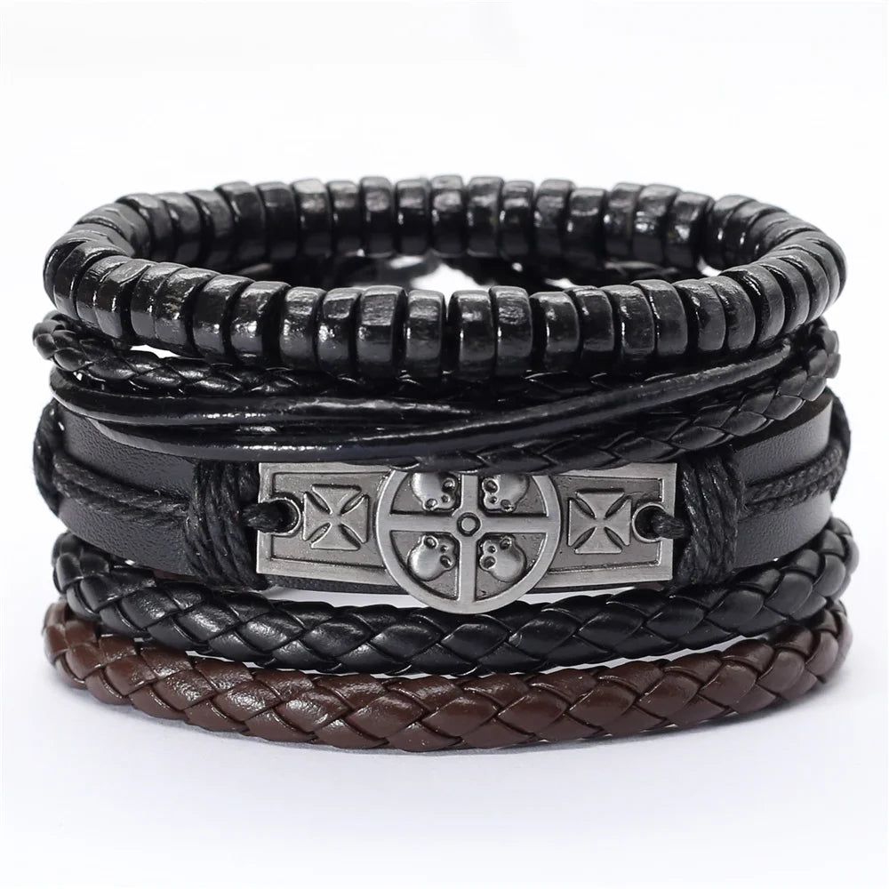 Elevate your wardrobe with this stylish 4-piece bracelet set that suits the fashion needs of both men and women. The leather keeps you comfortable while the woven pattern and charms make it look unique and trendy. Wear it to add a finishing touch to your look. Order now!