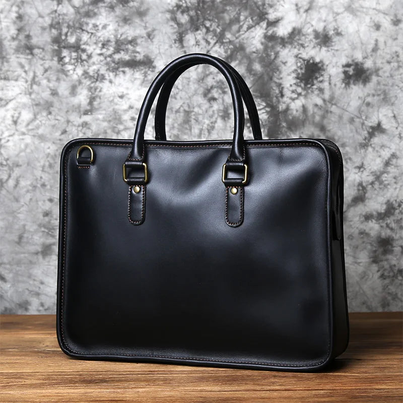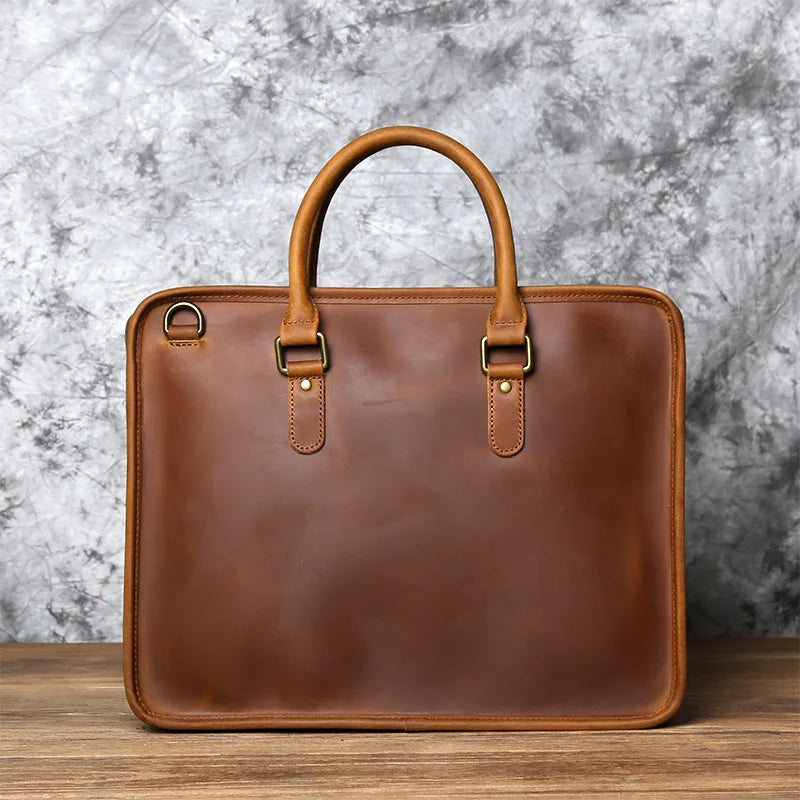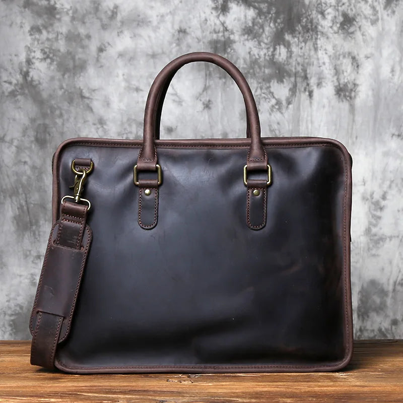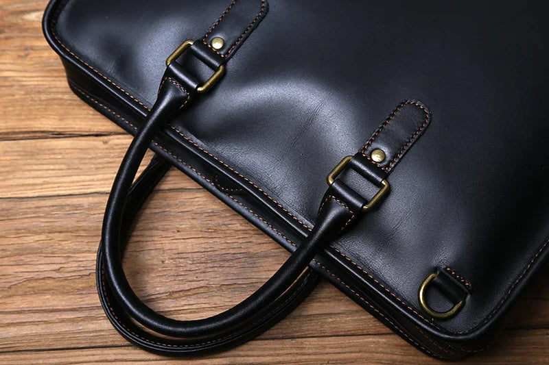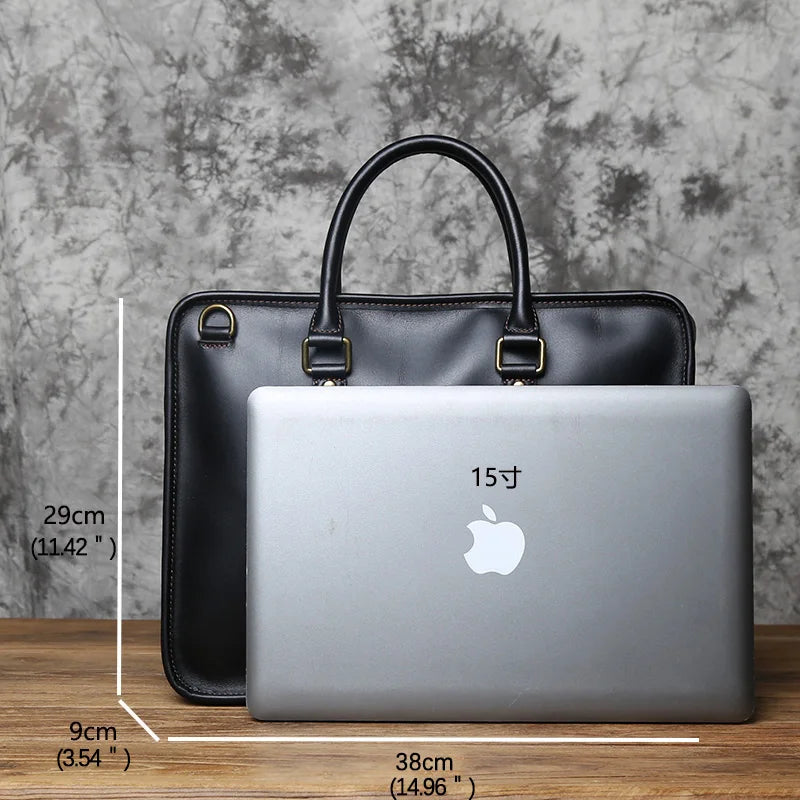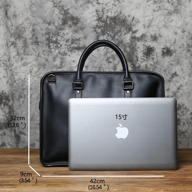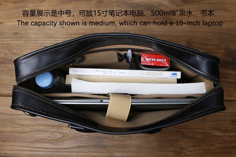 Luxury Retro Style Genuine Leather Briefcase Messenger Laptop Bag for Men