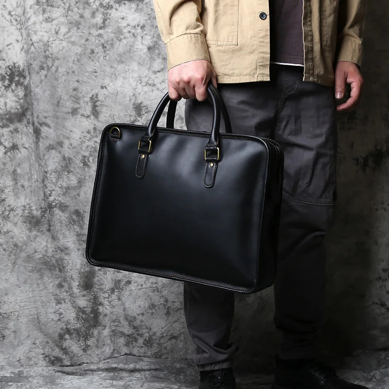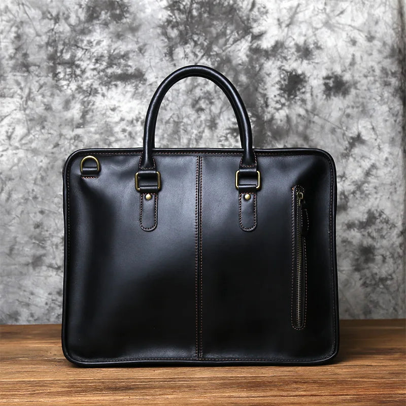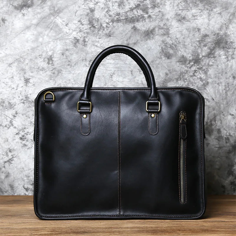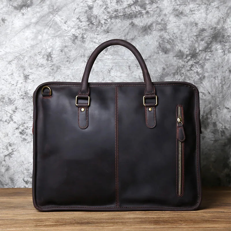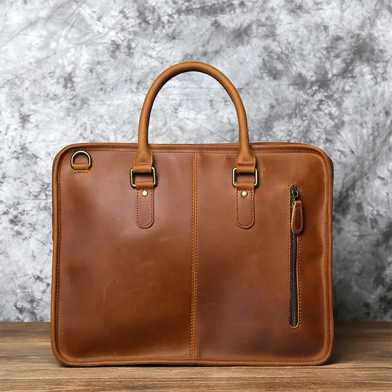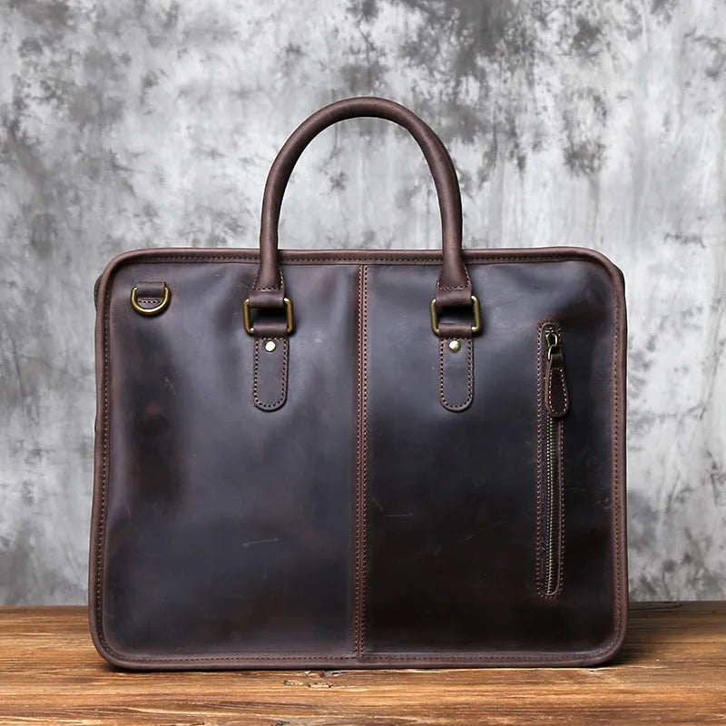 Luxury Retro Style Genuine Leather Briefcase Messenger Laptop Bag for Men