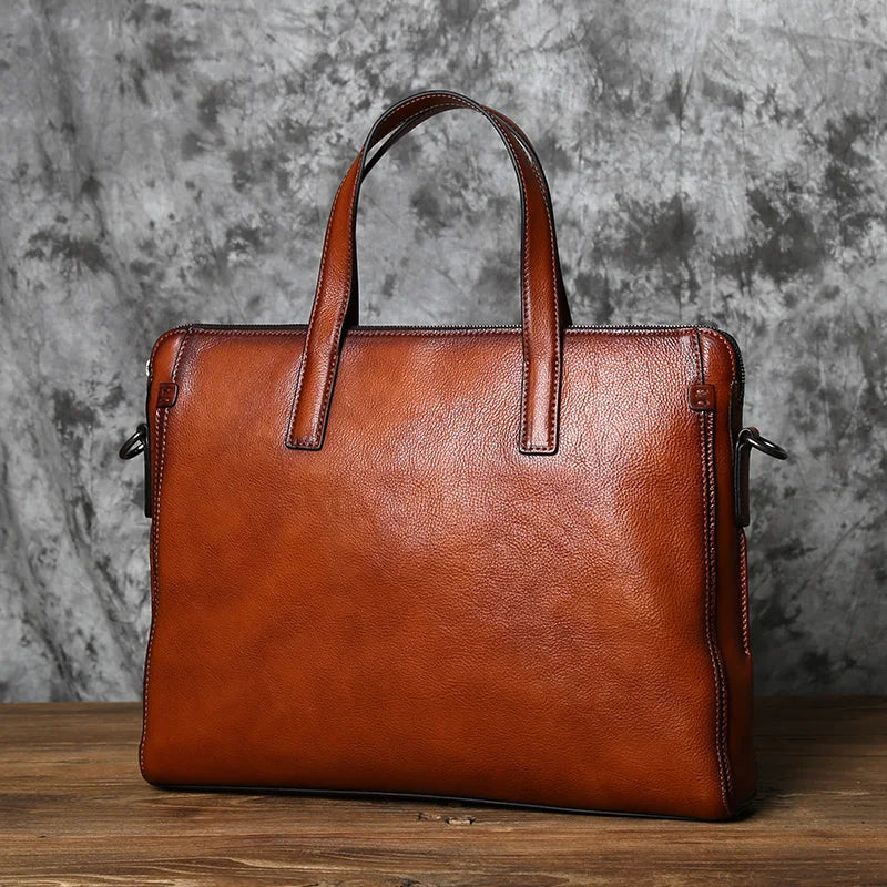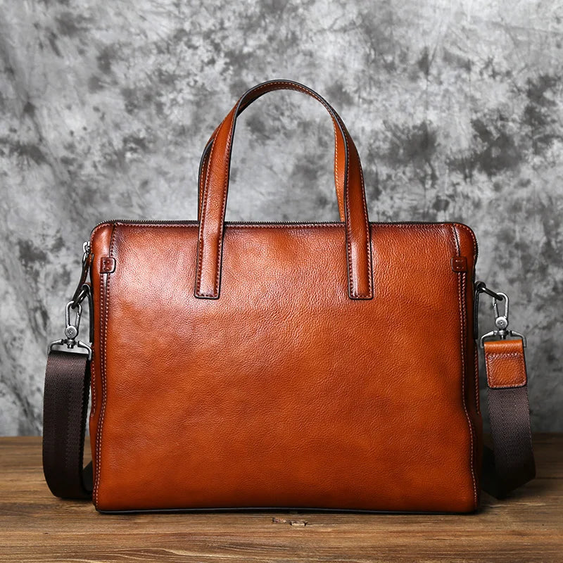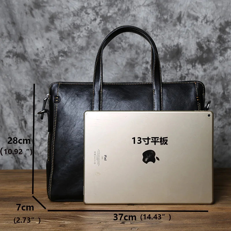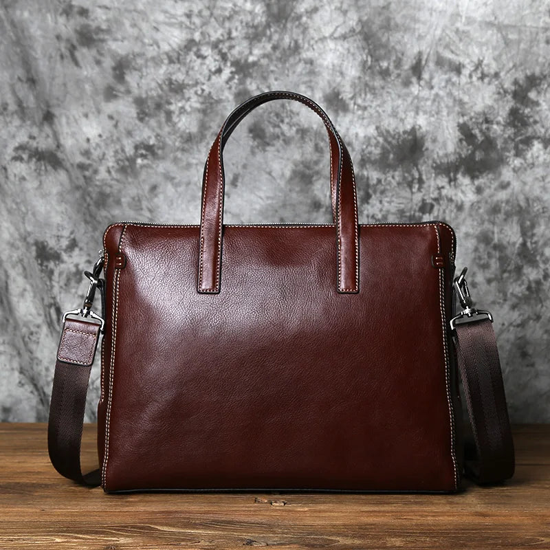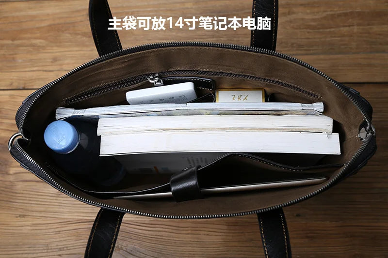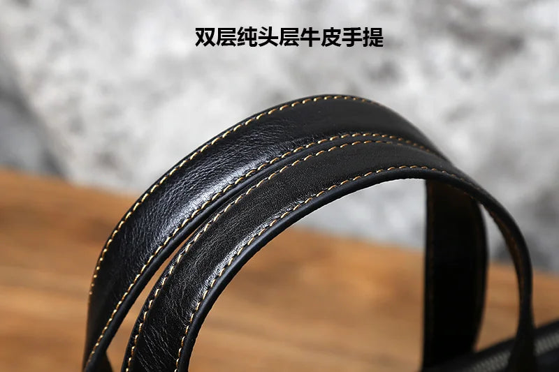 Men's First Layer Cowhide Leather Large-capacity Messenger Bag for 14-inch Laptop