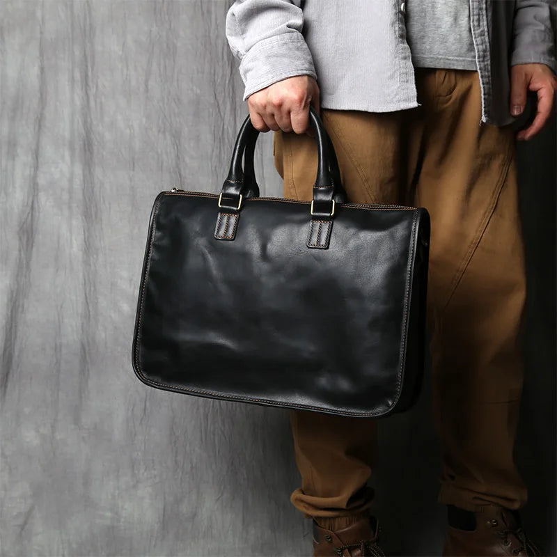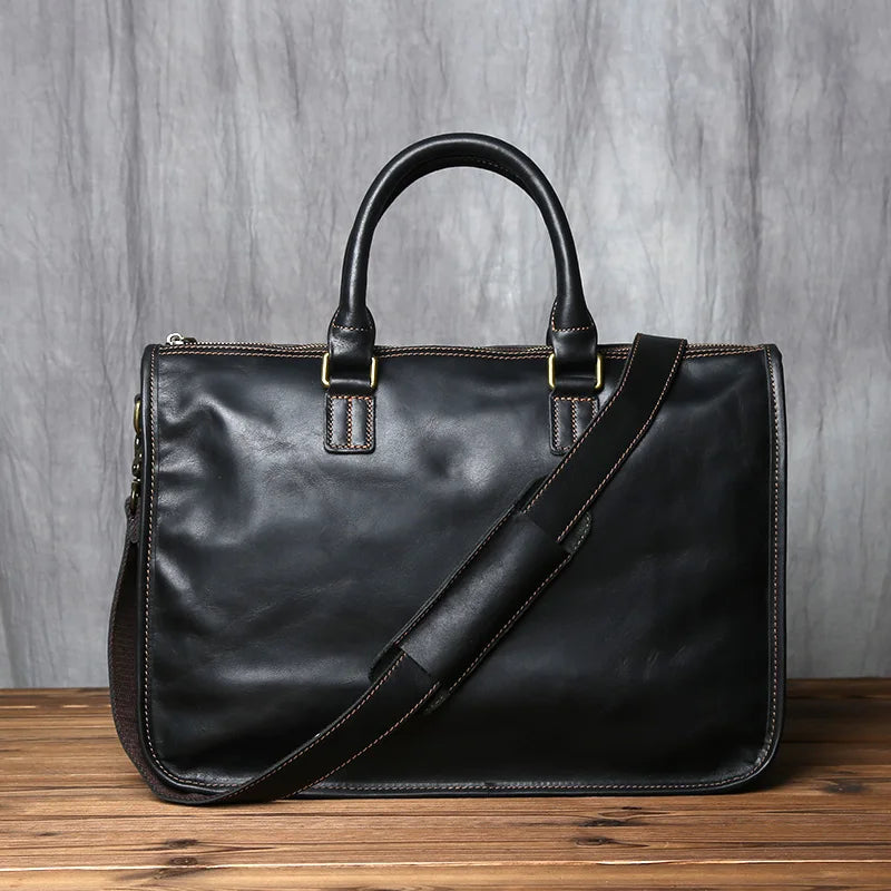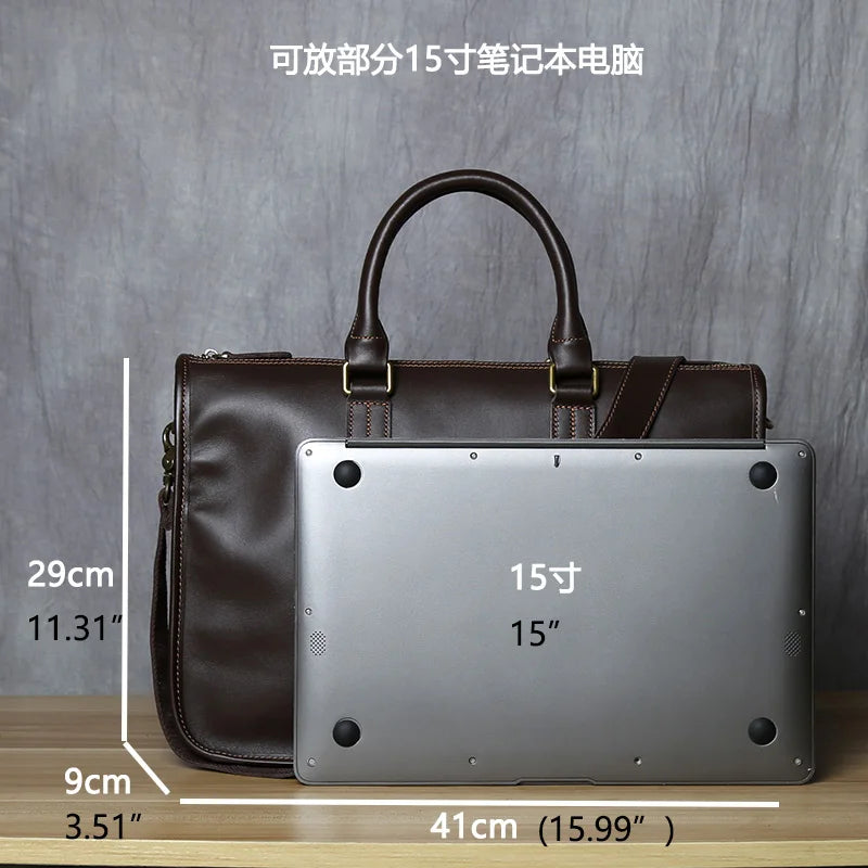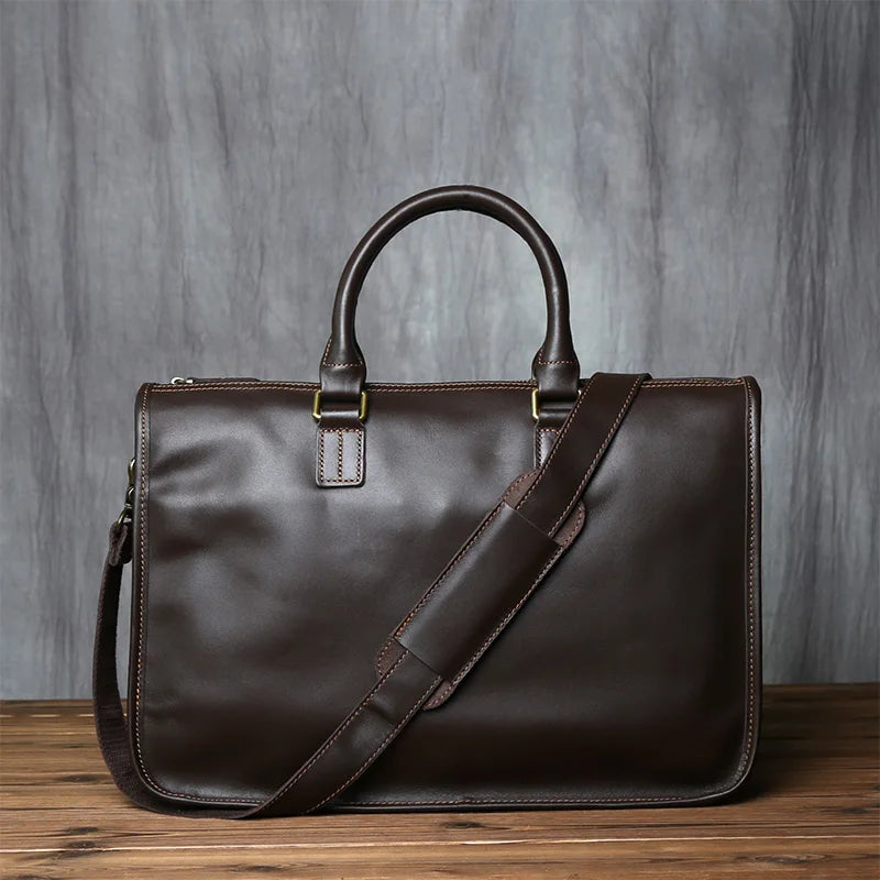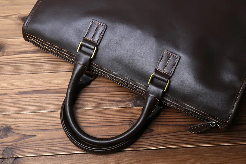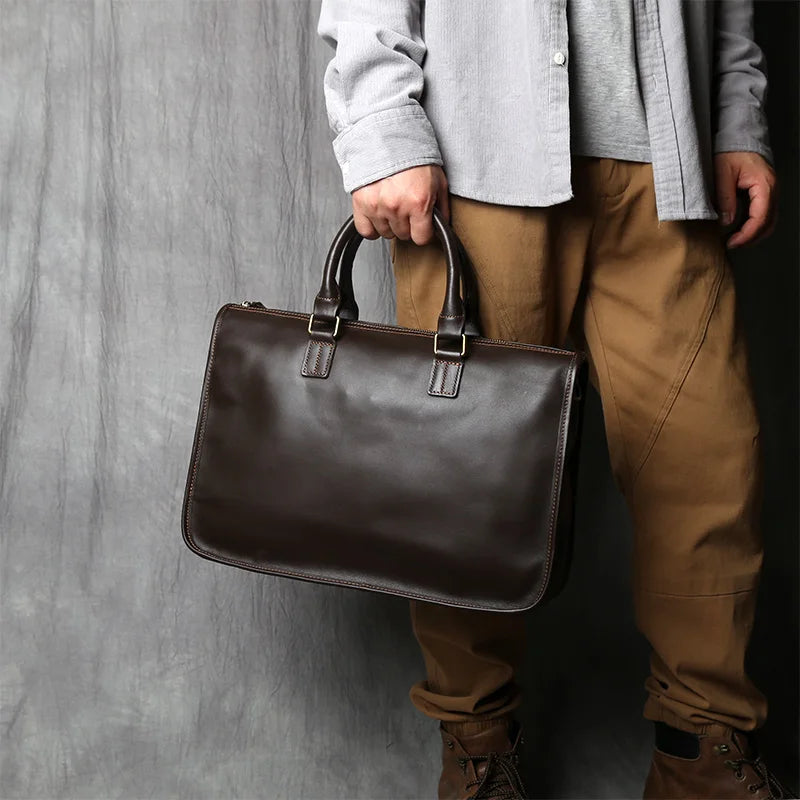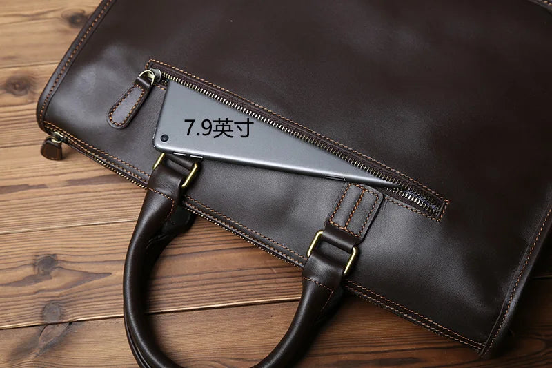 Retro Style Men's Natural Cowhide Single Shoulder Casual Business Messenger Handbag