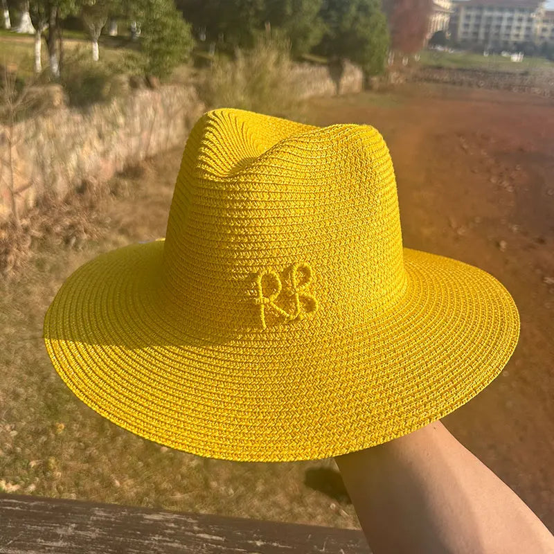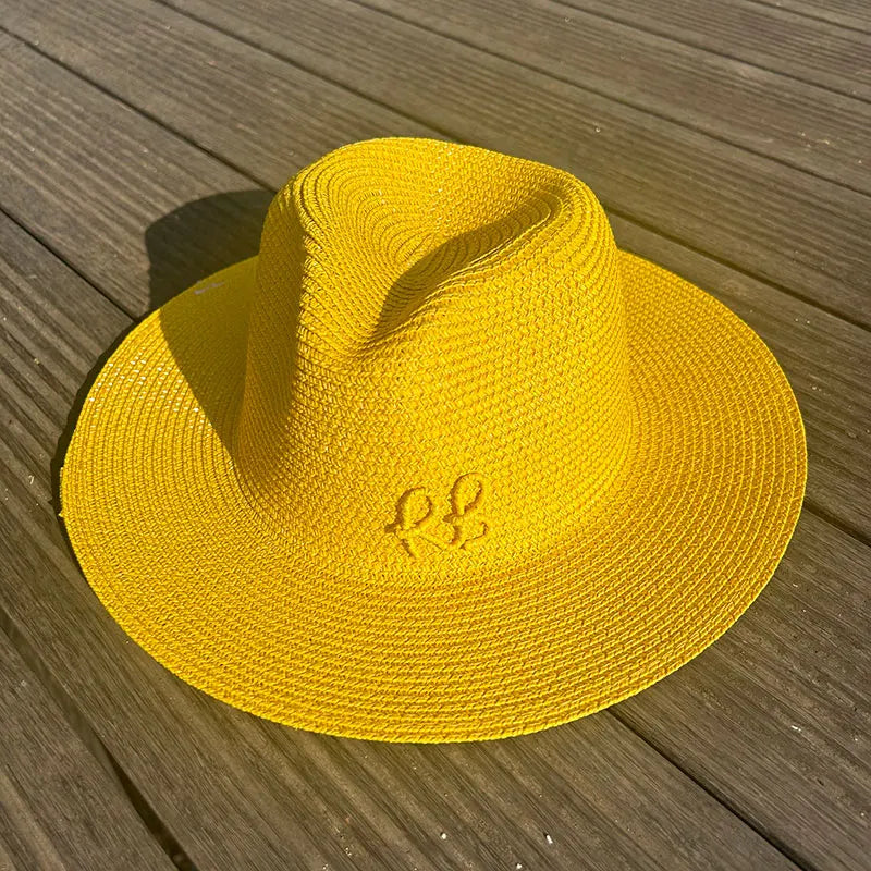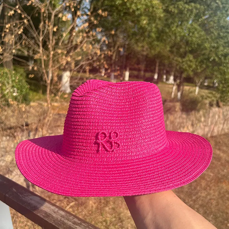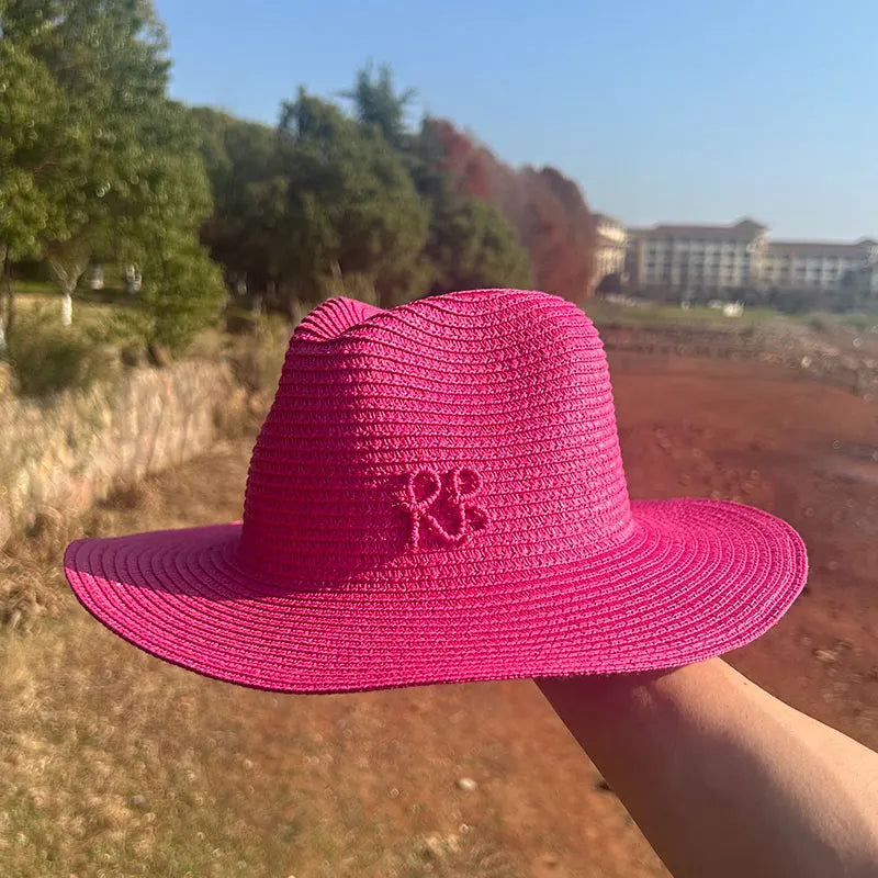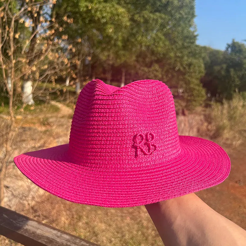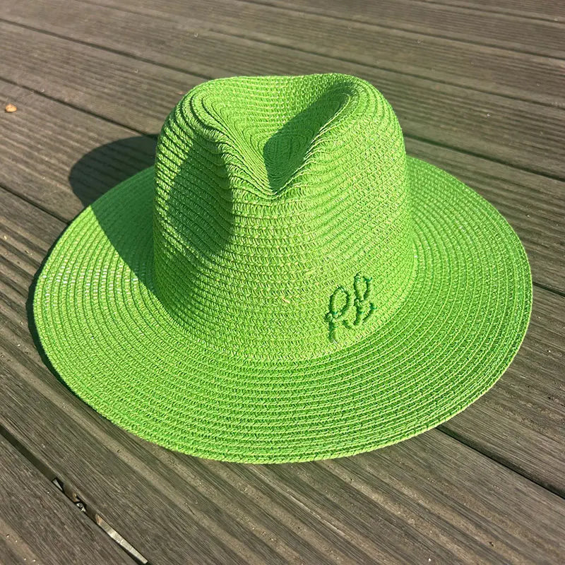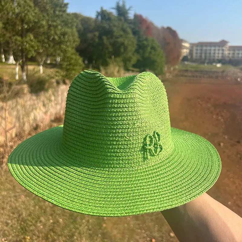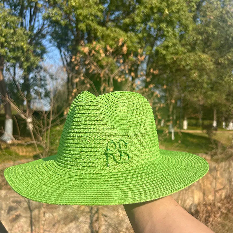 Handmade Letter Decoration Panama Paper Straw Jazz Sun Hat for Men and Women