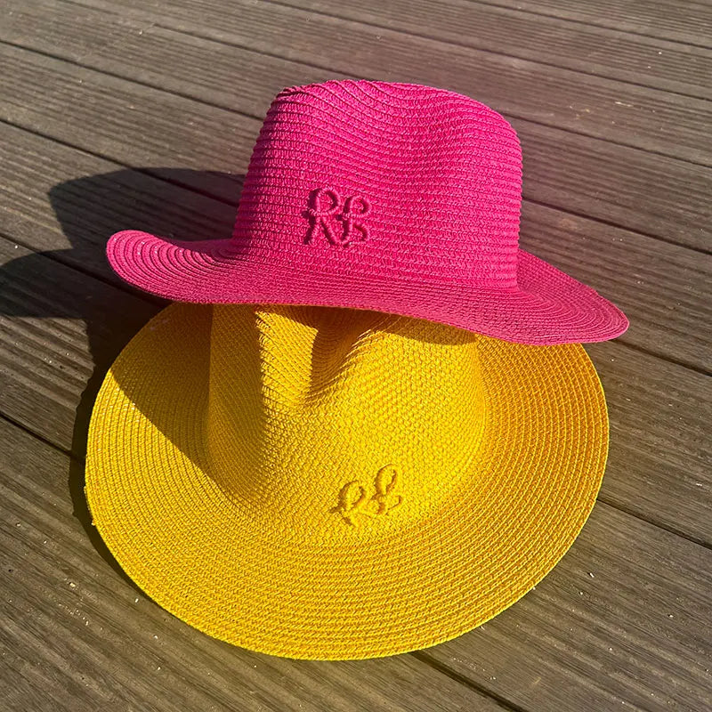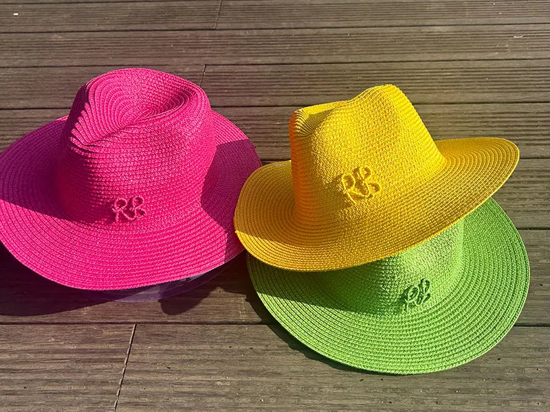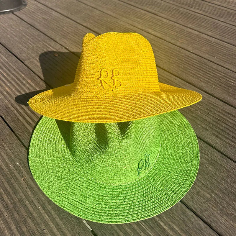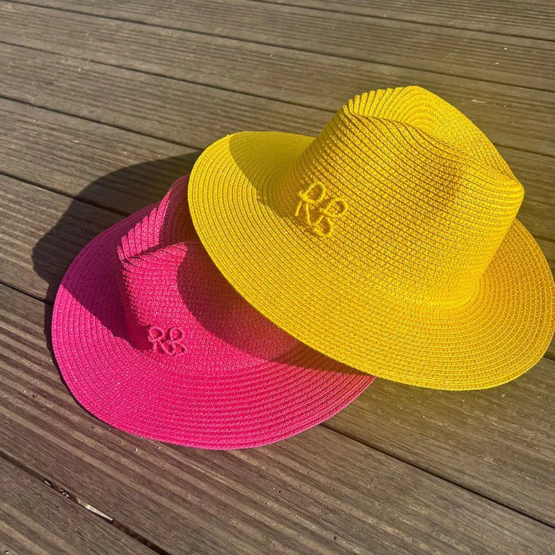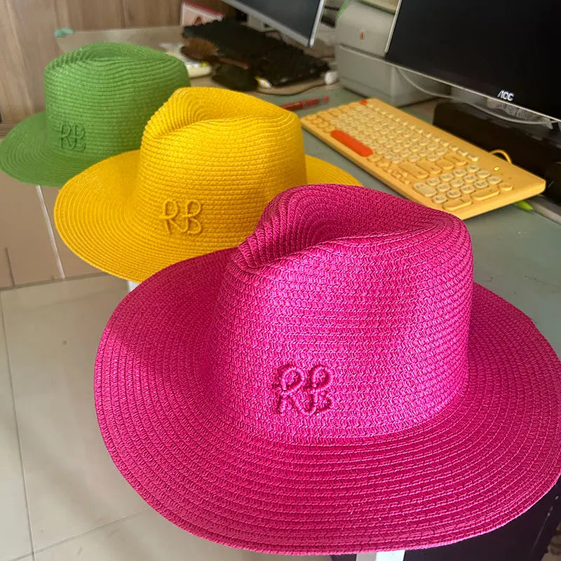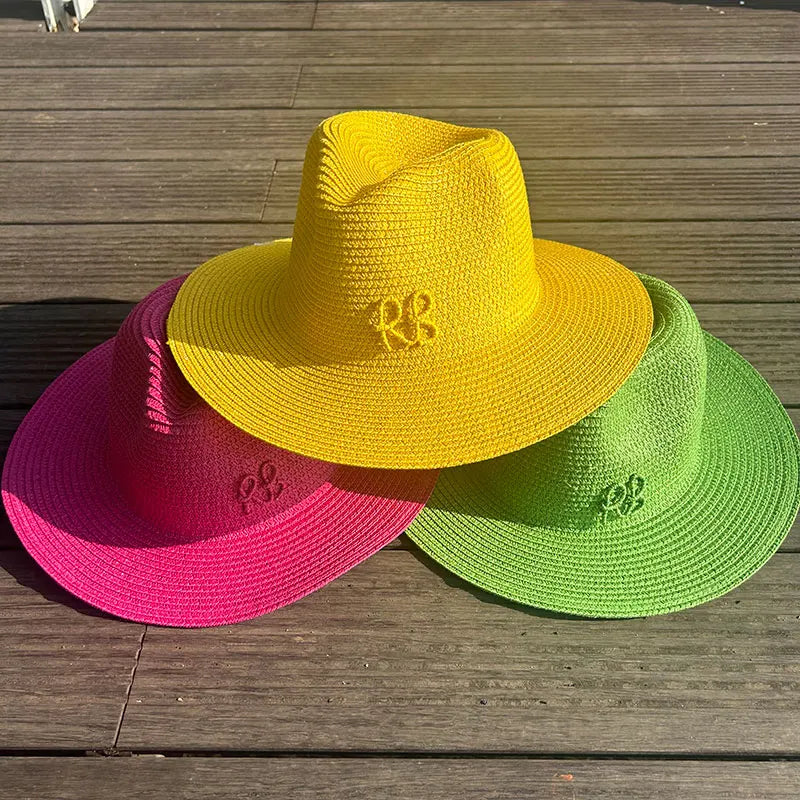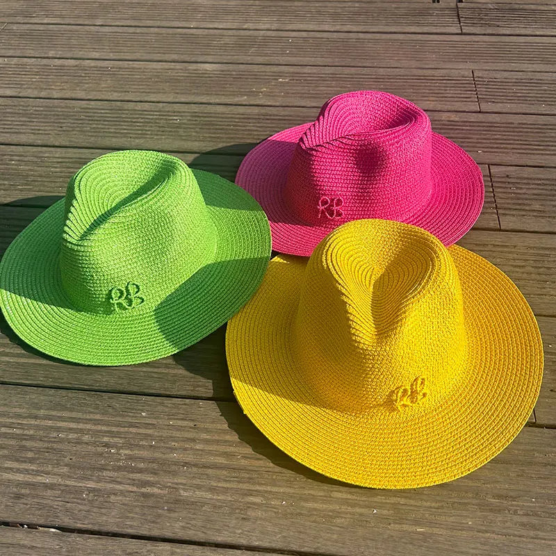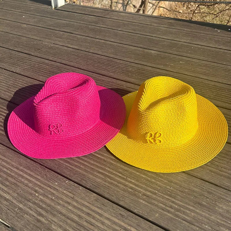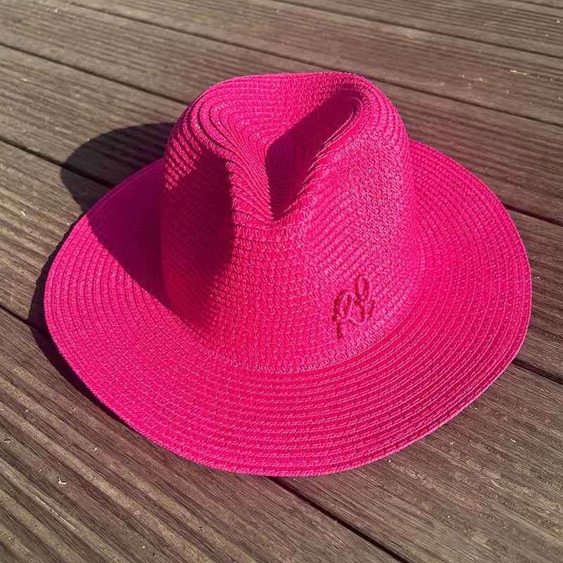 Handmade Letter Decoration Panama Paper Straw Jazz Sun Hat for Men and Women