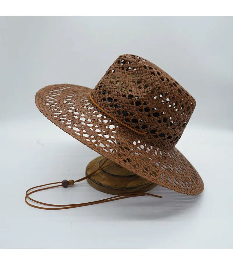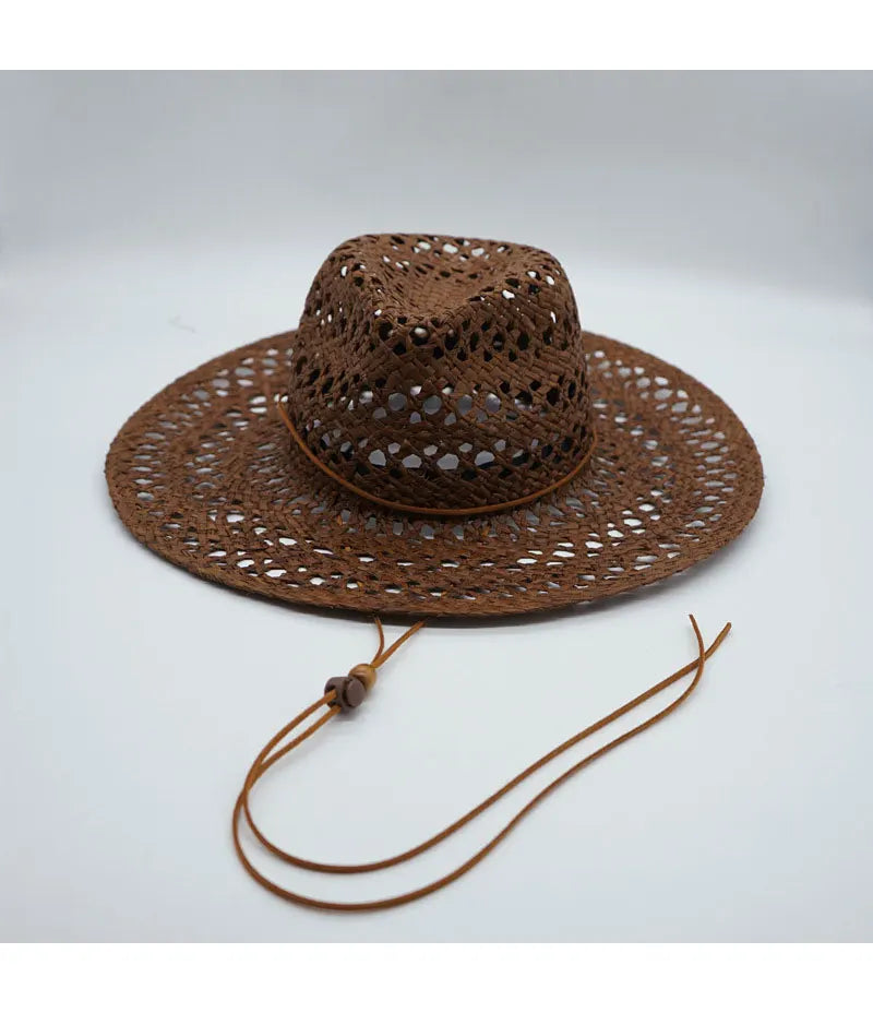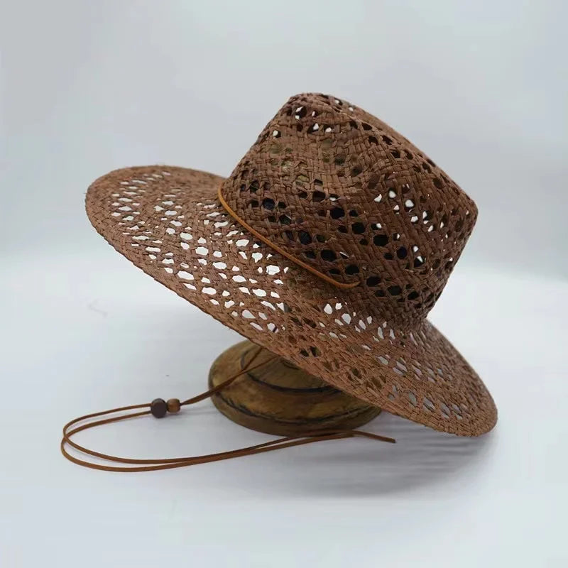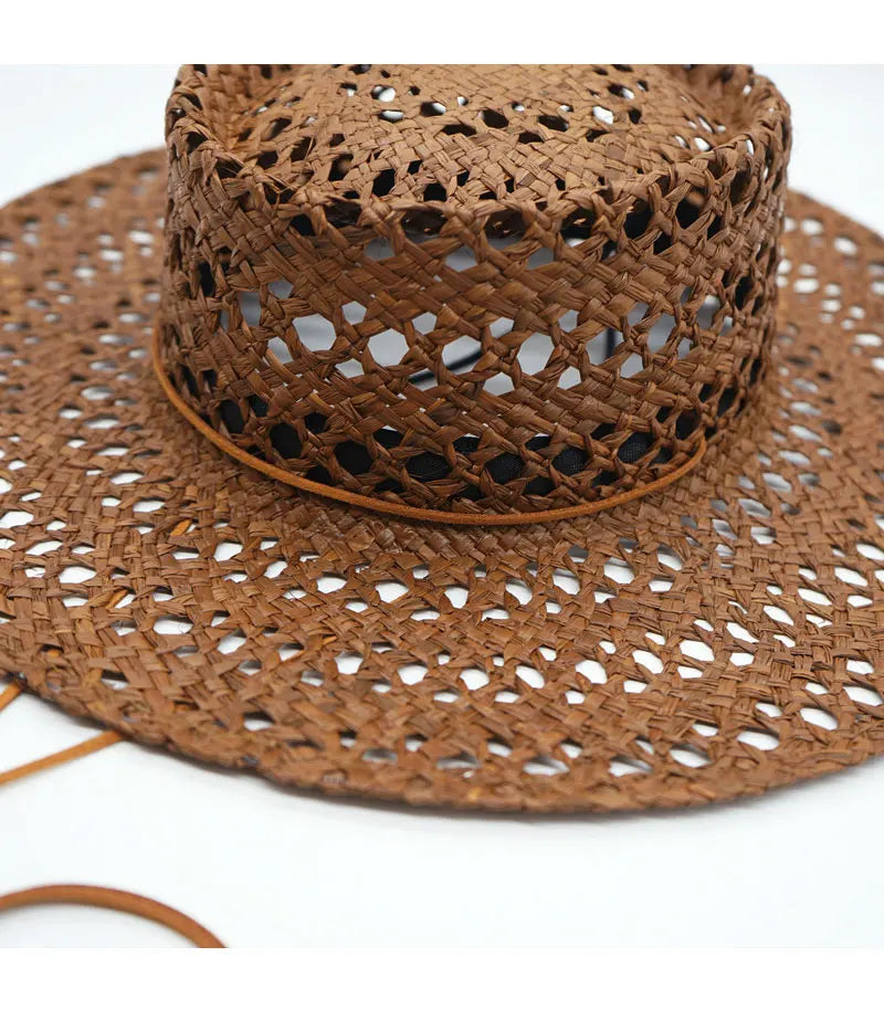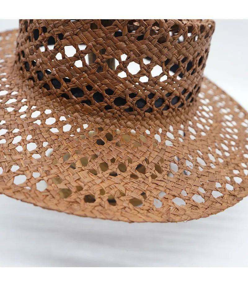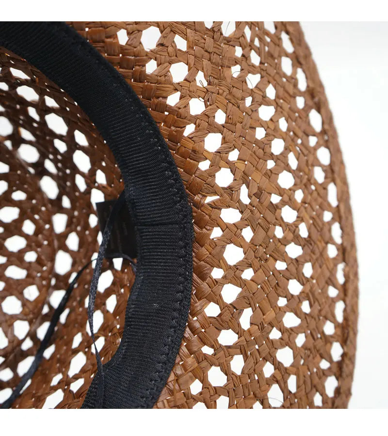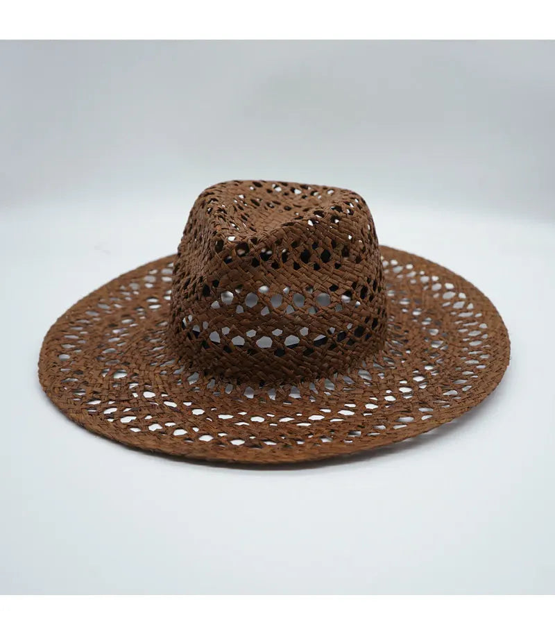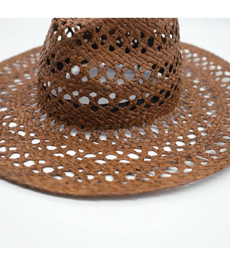 This unisex handmade sun hat is your go-to accessory for comfort and style on hot summer days. Made with raffia straw in coffee brown finish, it is durable and looks appealing with a hollow pattern. It helps you stay away from harsh sun rays and amp up your style. Don't miss it!