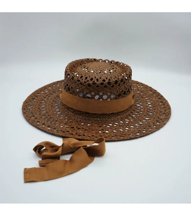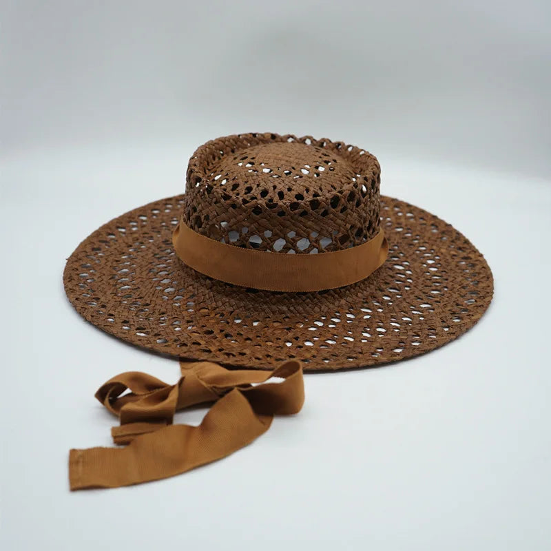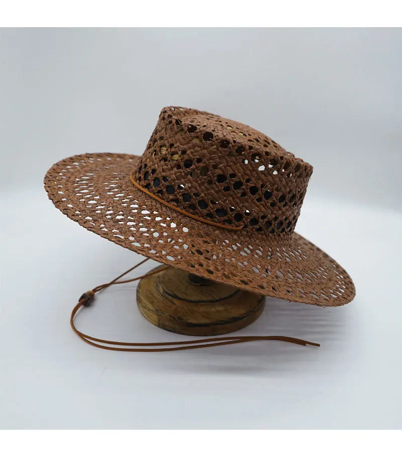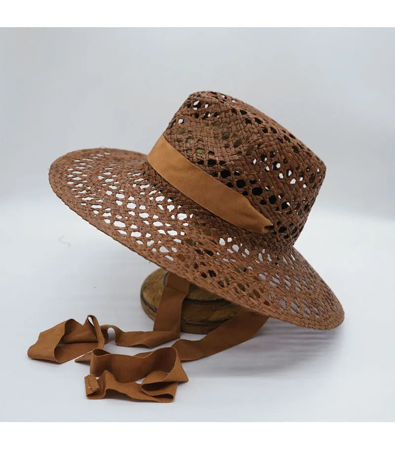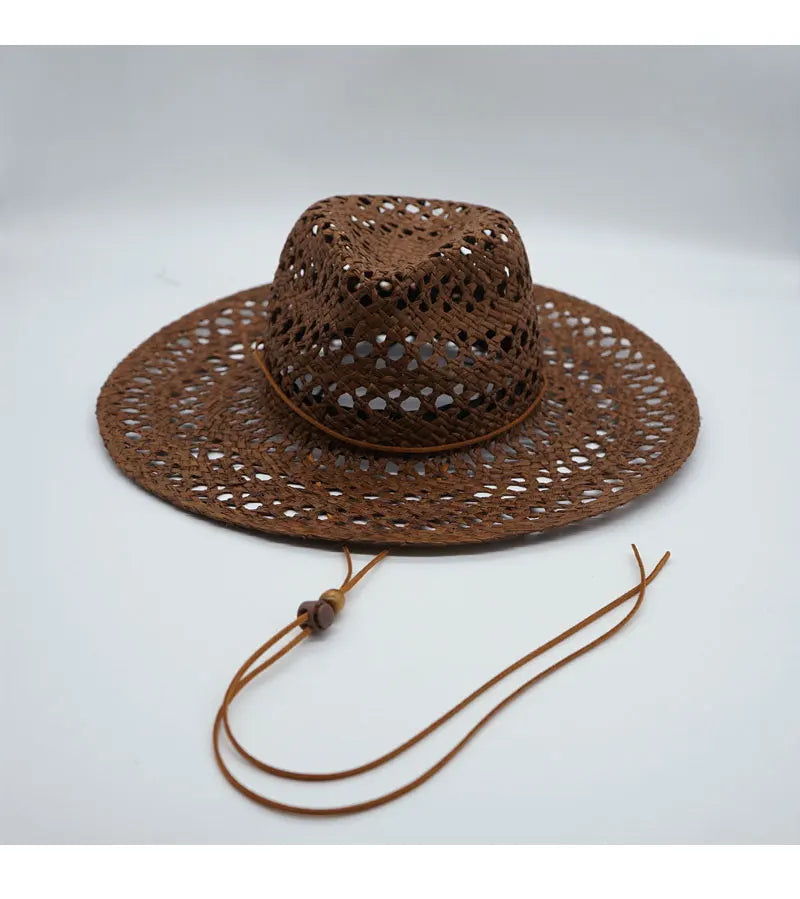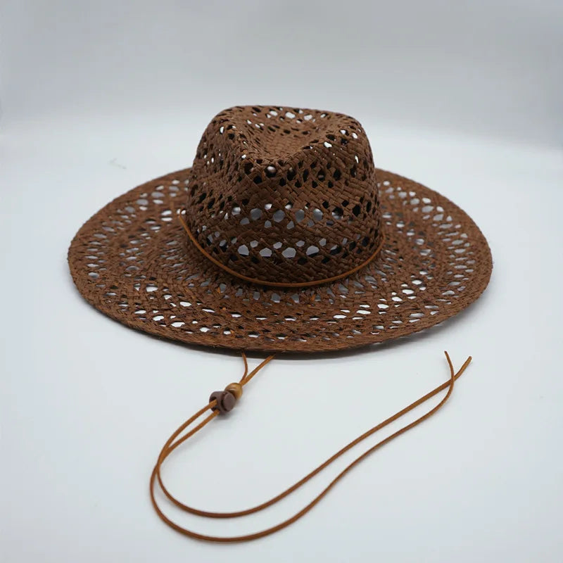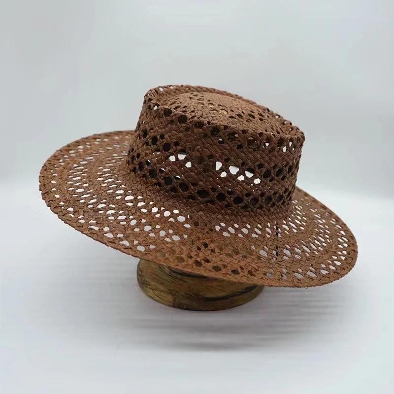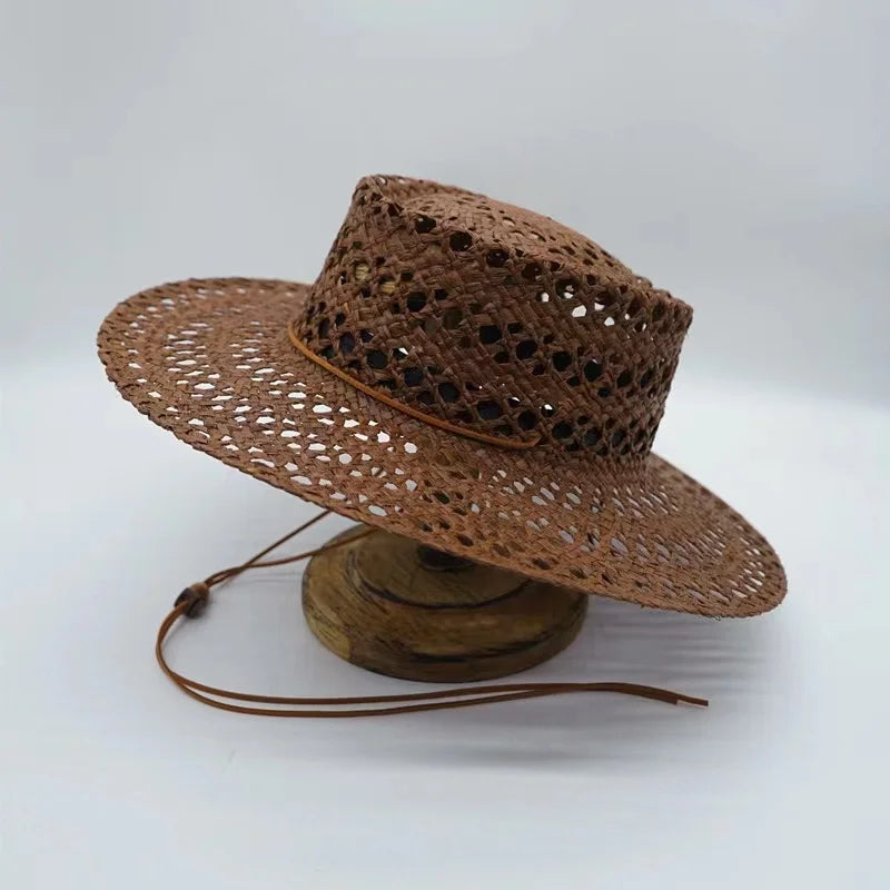 This unisex handmade sun hat is your go-to accessory for comfort and style on hot summer days. Made with raffia straw in coffee brown finish, it is durable and looks appealing with a hollow pattern. It helps you stay away from harsh sun rays and amp up your style. Don't miss it!