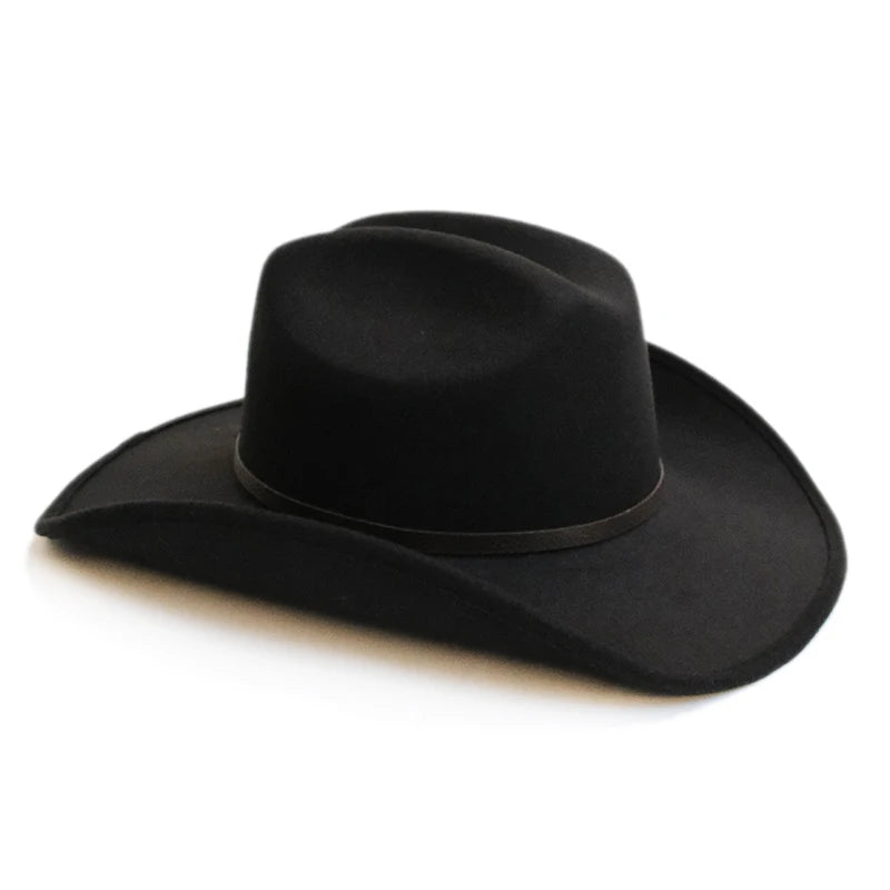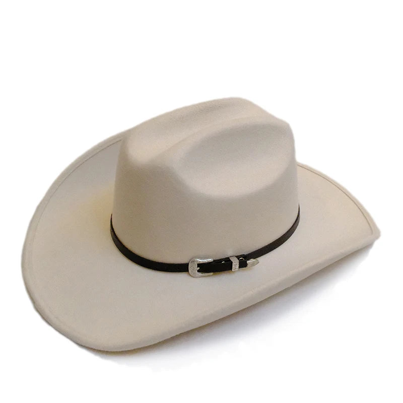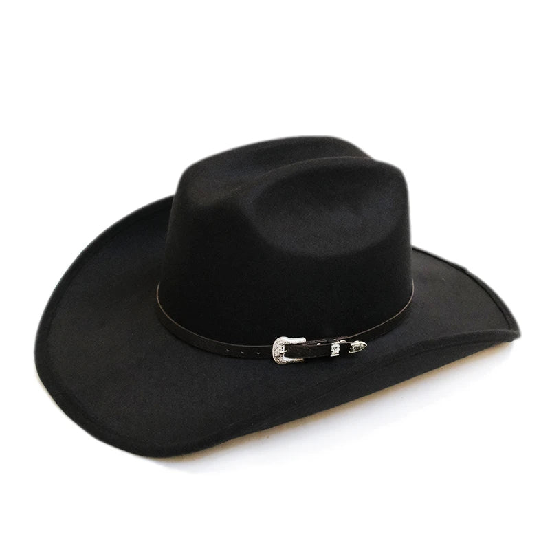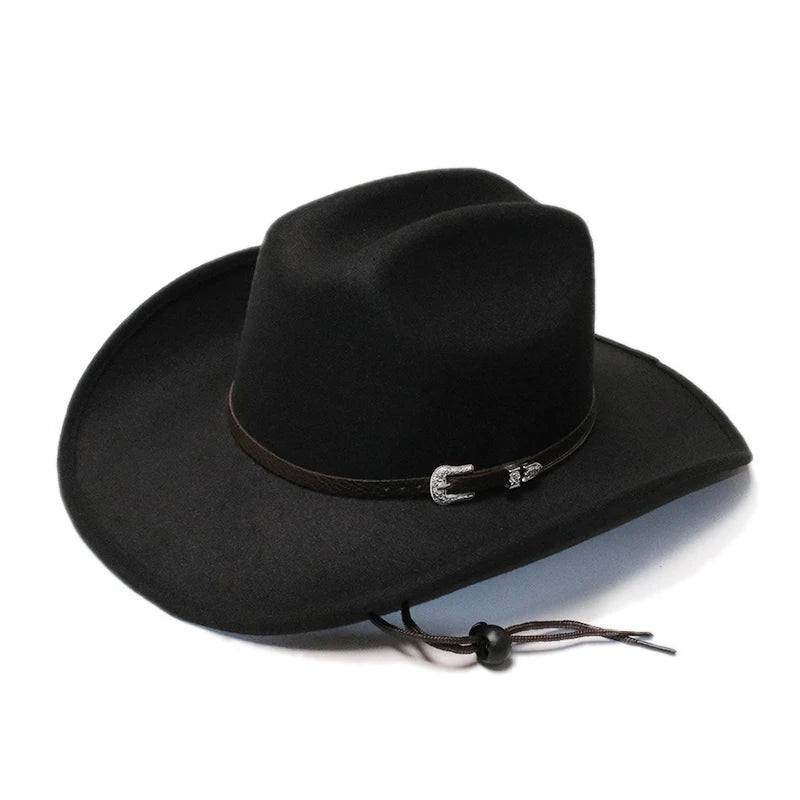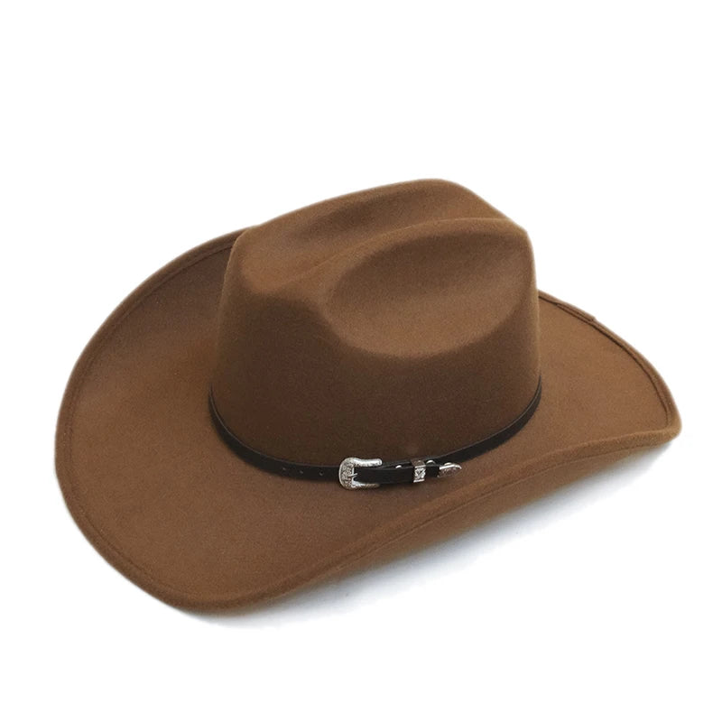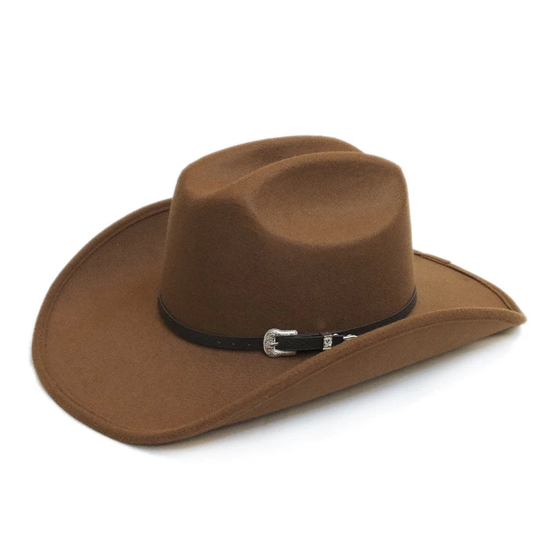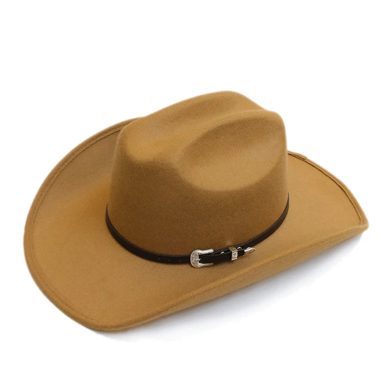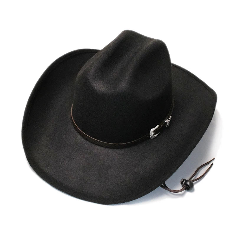 Hard Felt Retro Wide Brim Leather Belt Band Cowboy 58-59cm Hat for Women and Men
