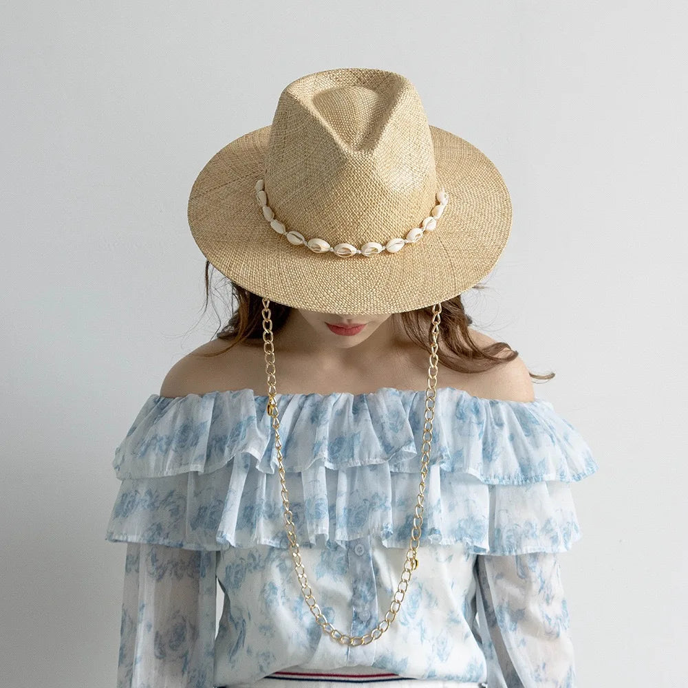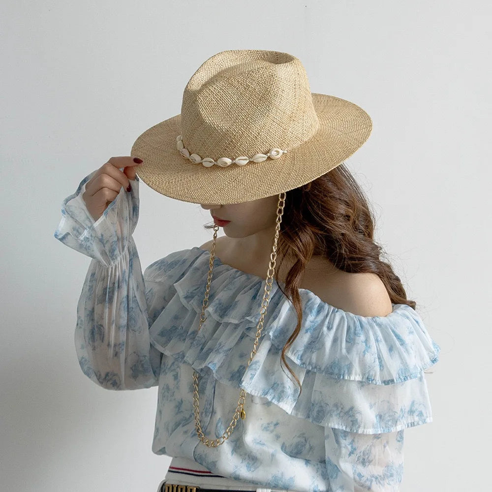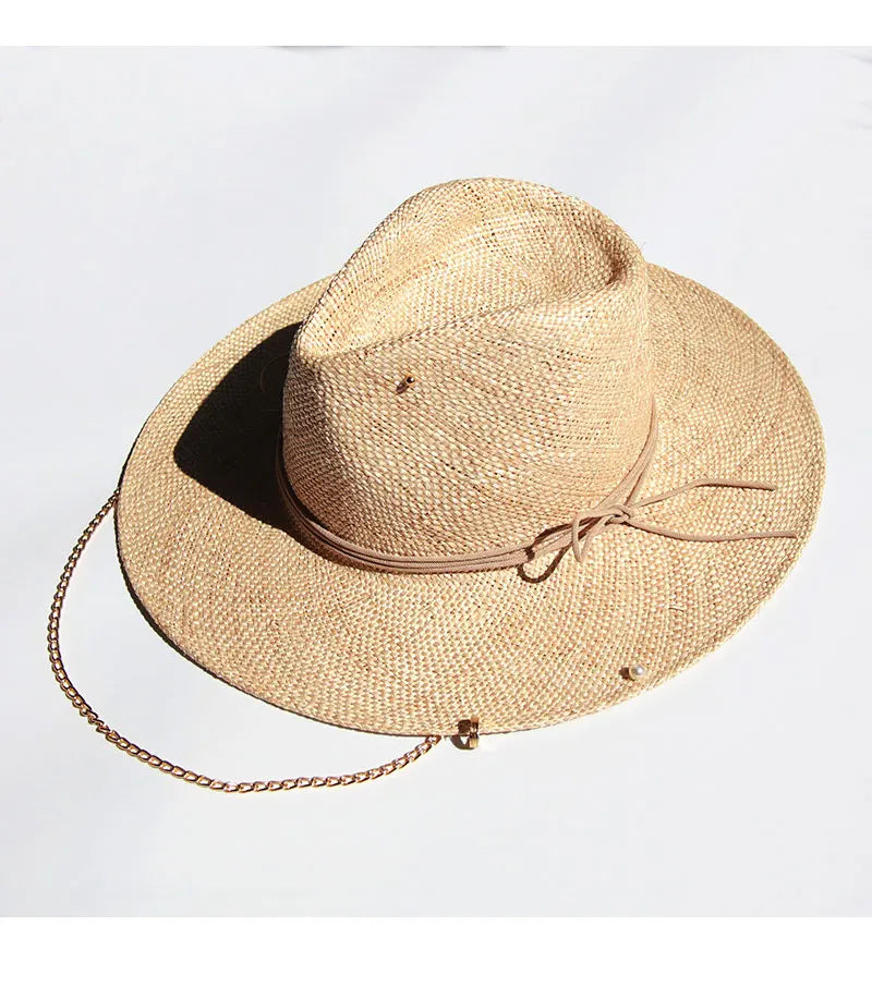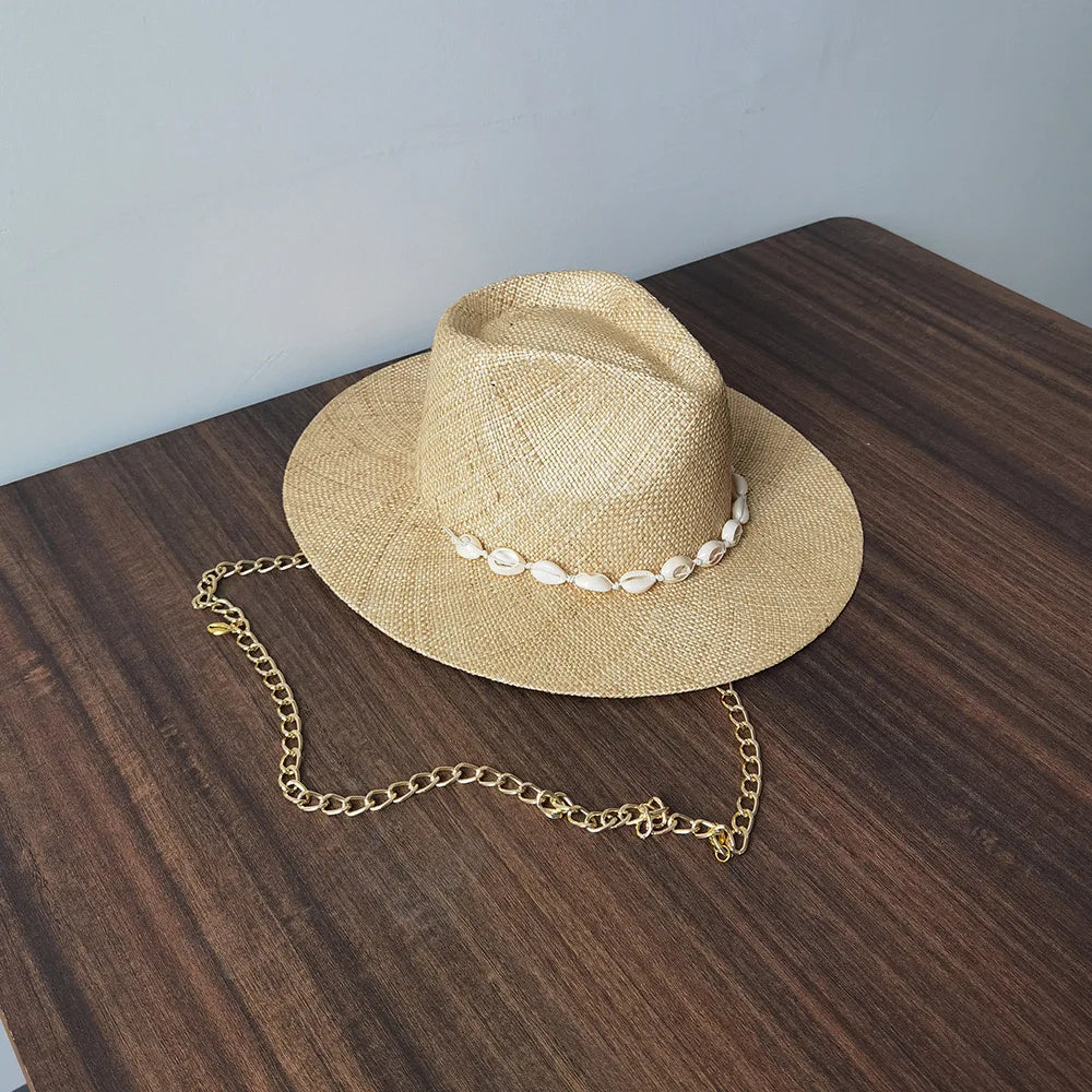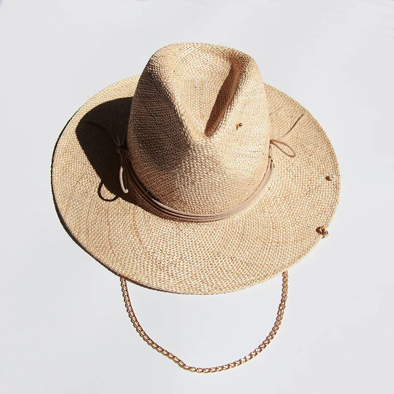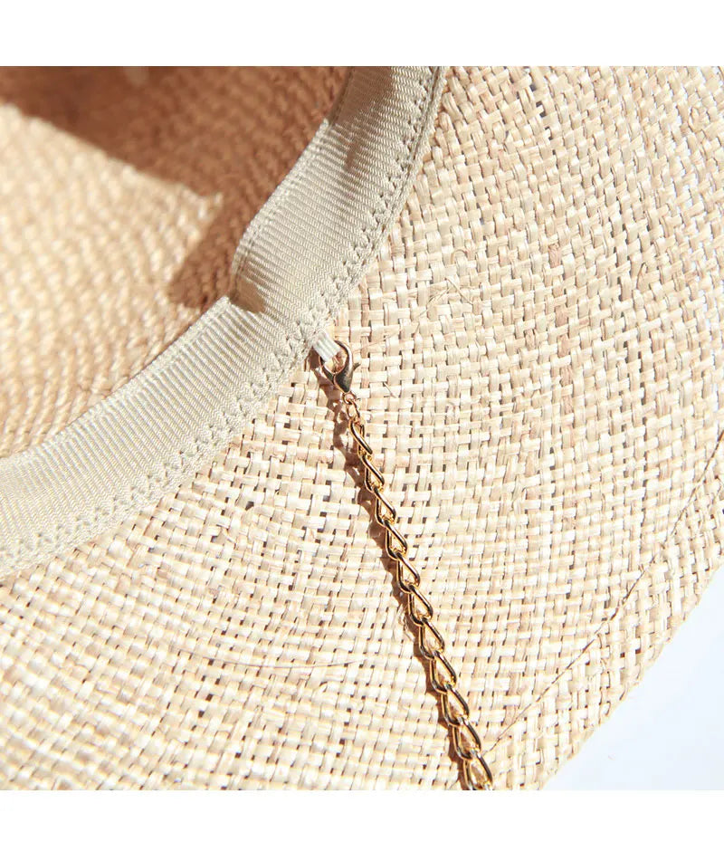 Men and Women Summer Panama Designer Style Raffia Sun Hat With Chain