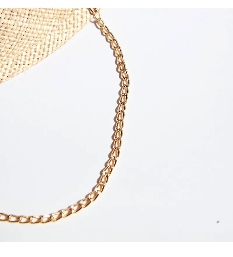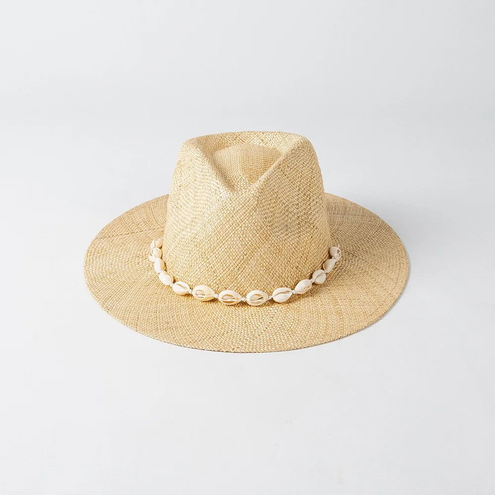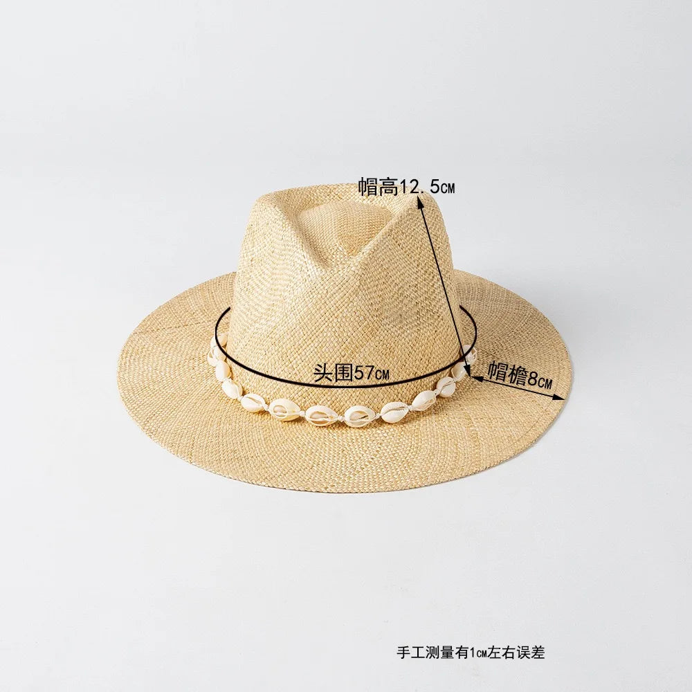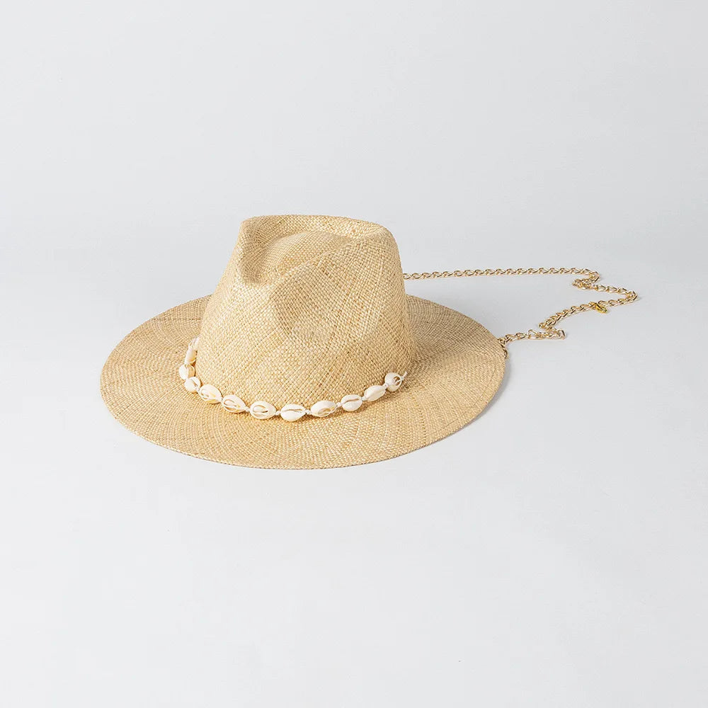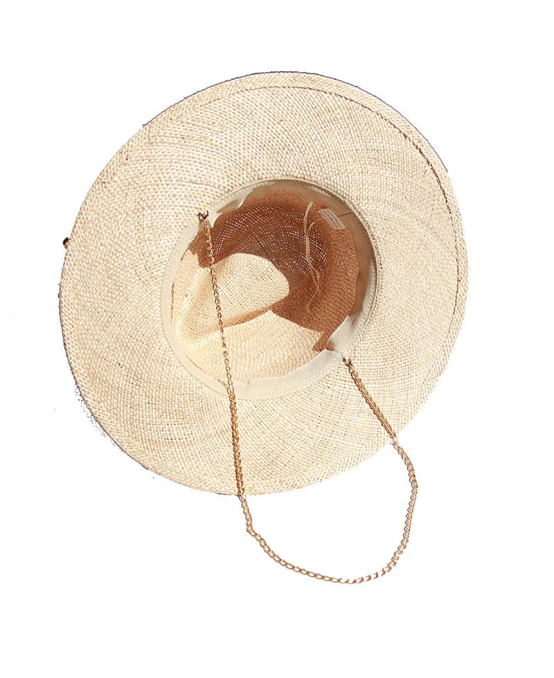 Men and Women Summer Panama Designer Style Raffia Sun Hat With Chain