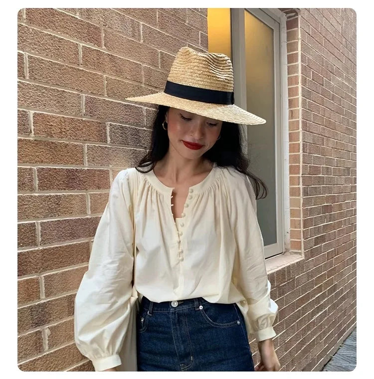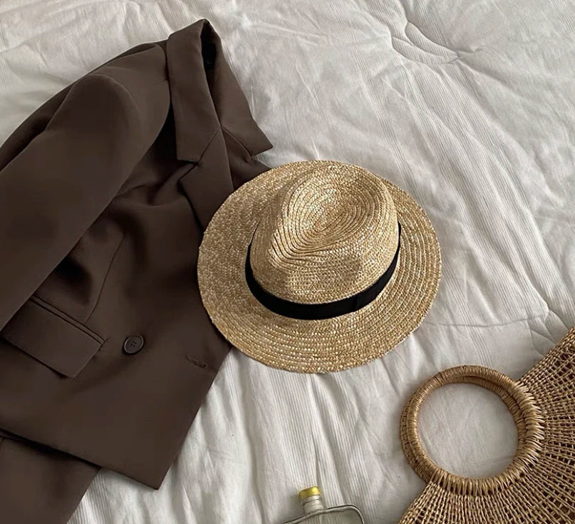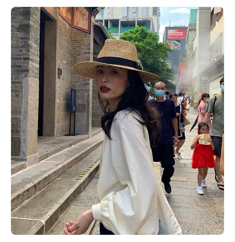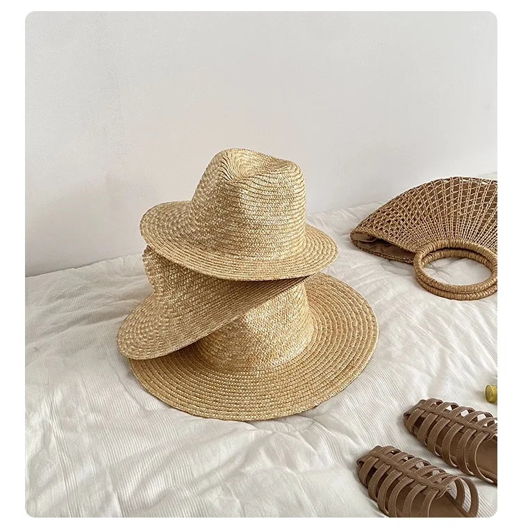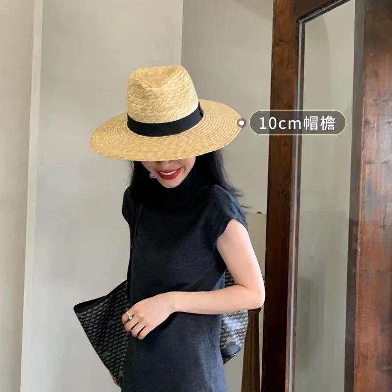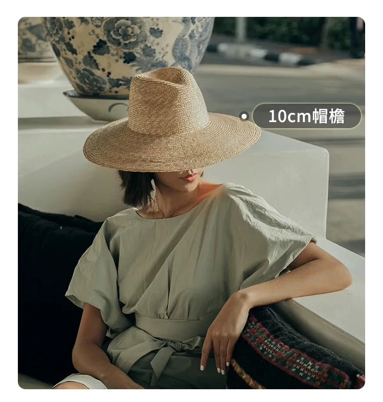 Summer Beach Style Wide Brim Straw Panama Sun Hat for Women and Men