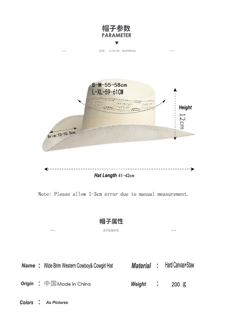 Featuring a hollow-out pattern and wide brim, this unisex straw hat offers both durability and style. The solid pattern is great and suits the fashion needs of both men and women. For the cowboy style lovers!