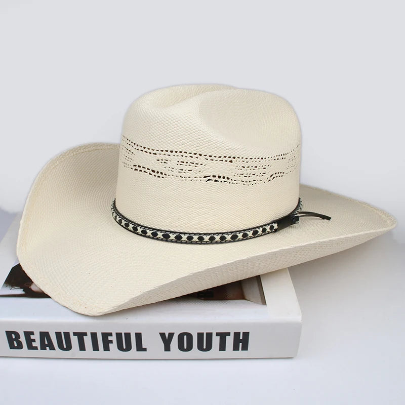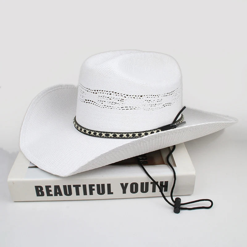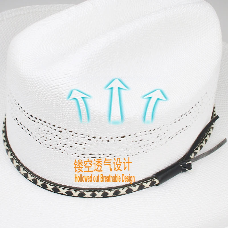 Unisex Beach Style 55-61cm Hollow-out Hard Straw American Western Wide Brim Hat