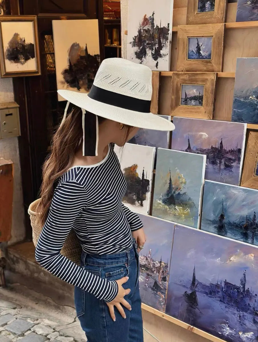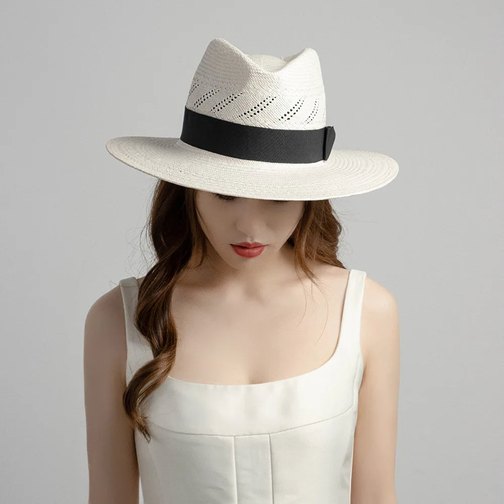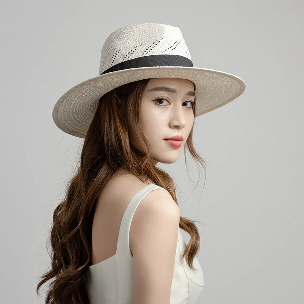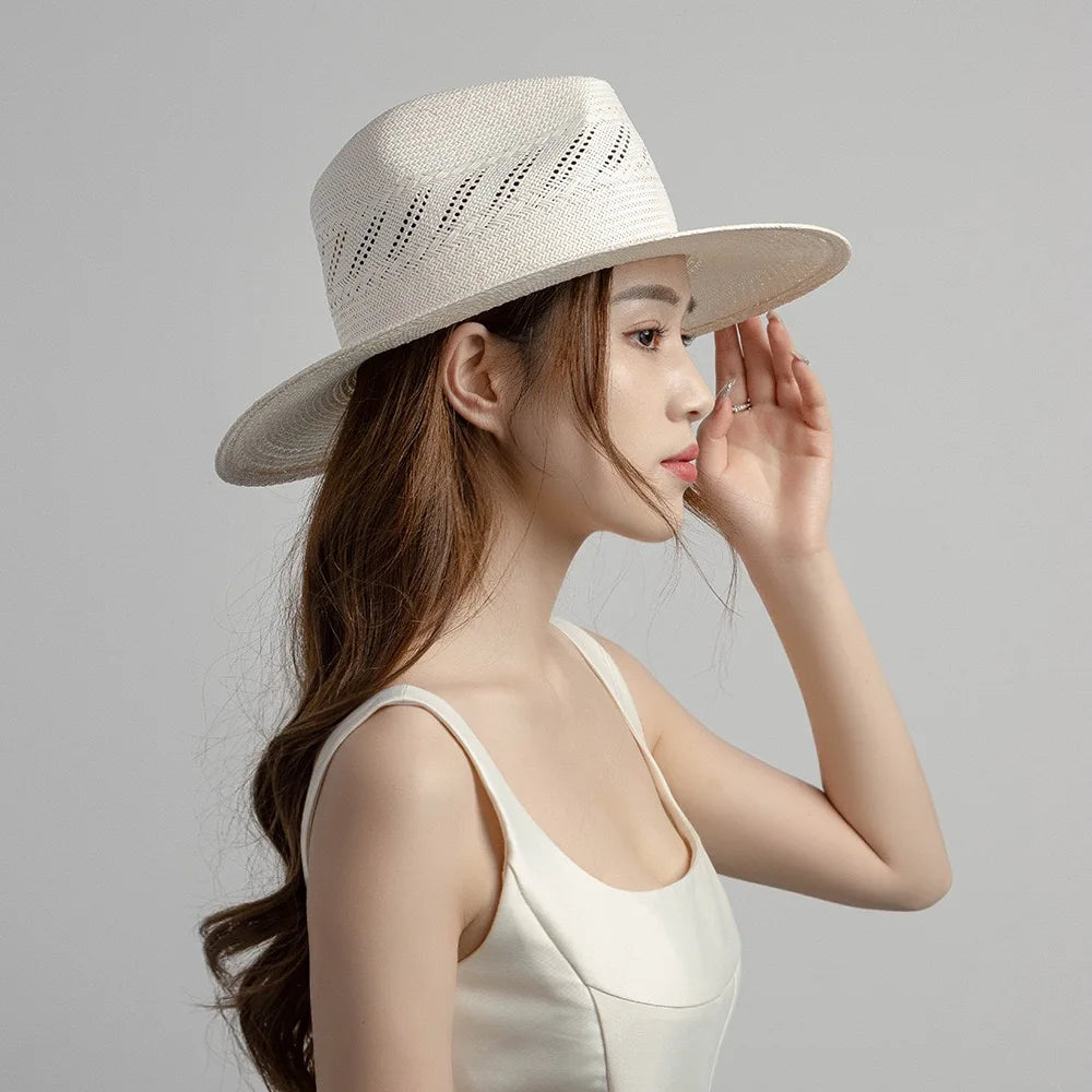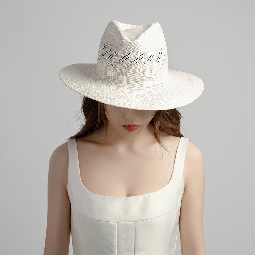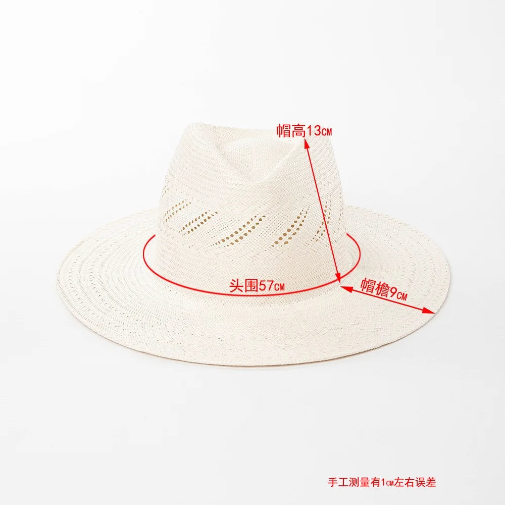 Unisex Handmade Designer Luxury Straw Hollowed Out Wide Brim Fedora Sun Hat