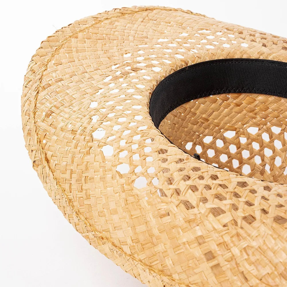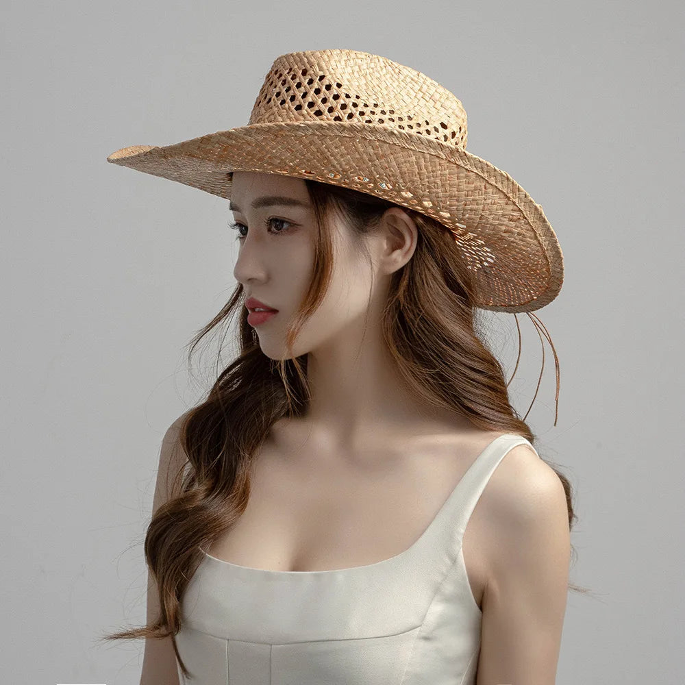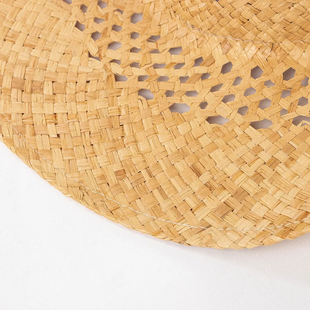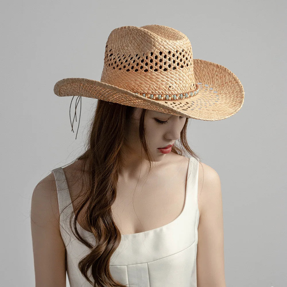 Unisex Lafite Grass Hollow Woven Pearl Beaded Panama Beach Sun Hat