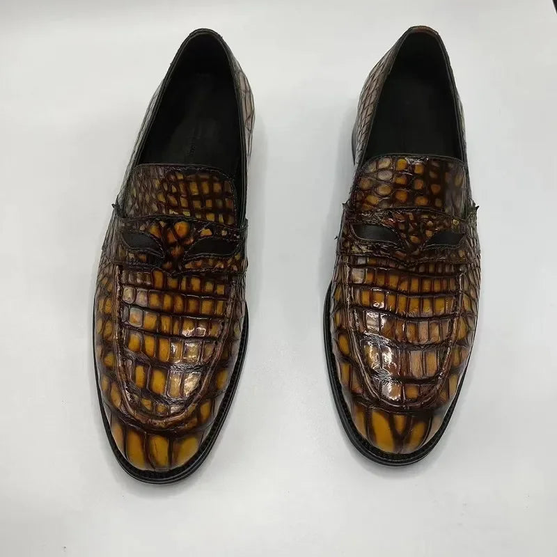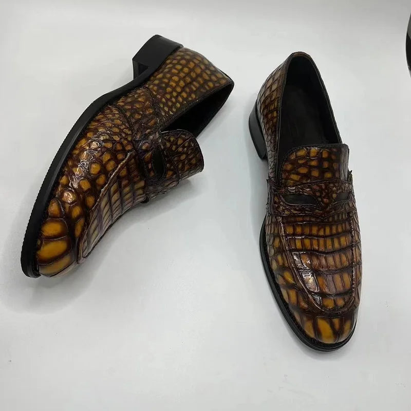 Business Casual Minimal Fashion Crocodile Skin Leather Loafers for Men