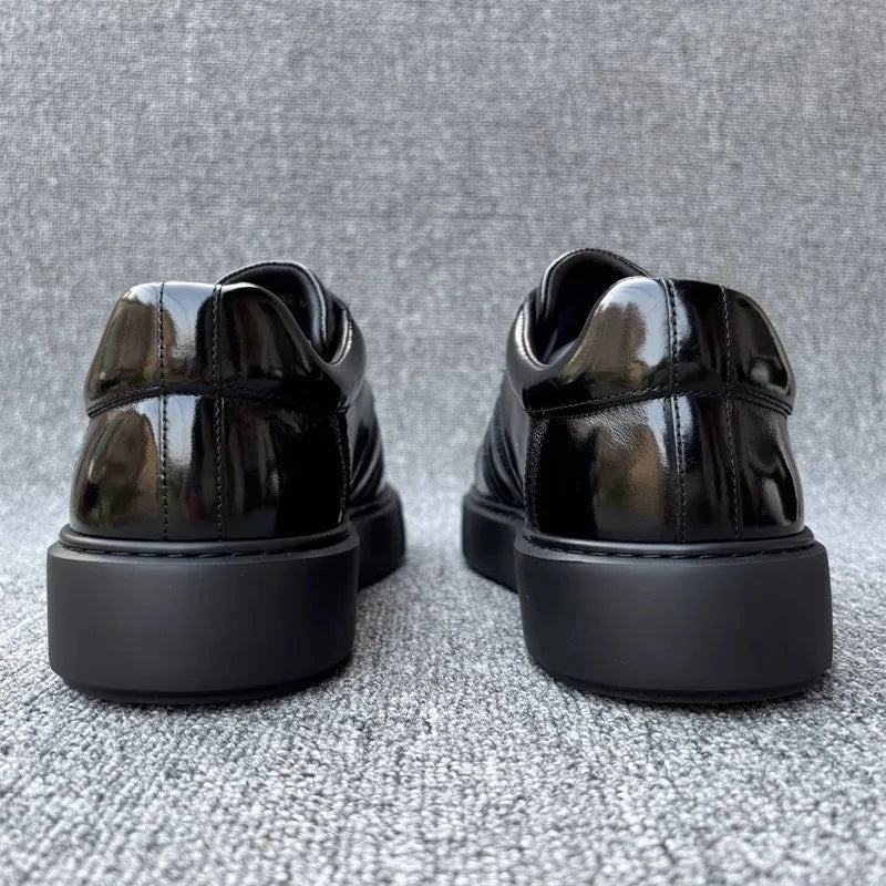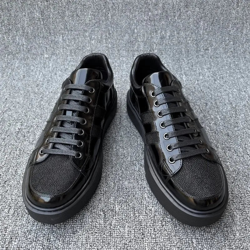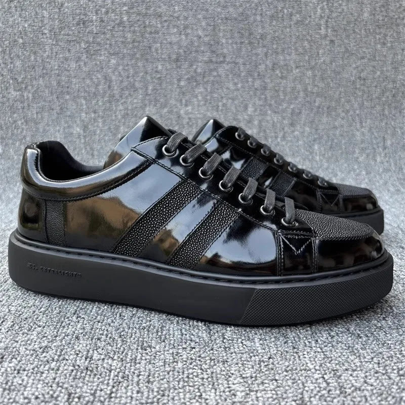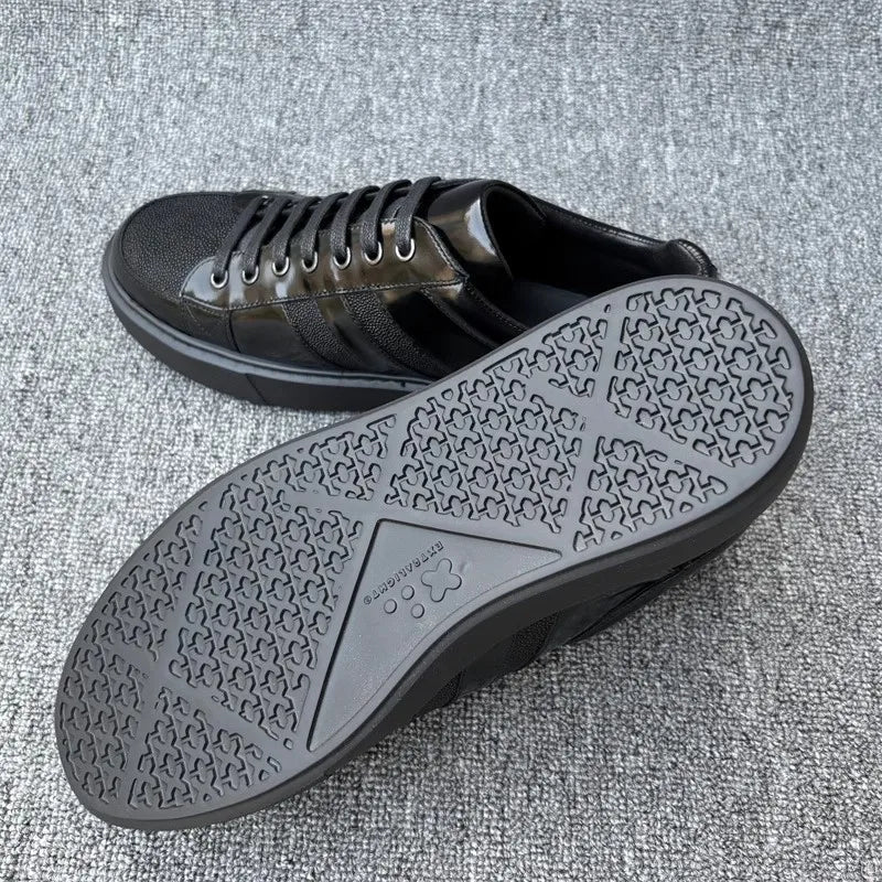 Genuine Leather Breathable Round Toe Lace Up Stripe Pattern Casual Shoes for Men