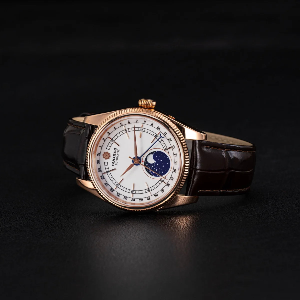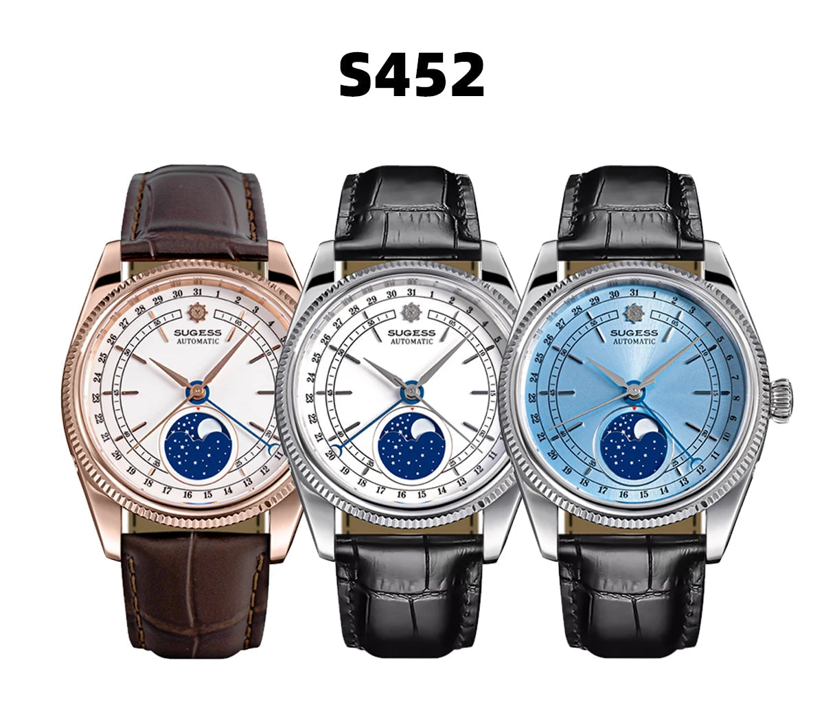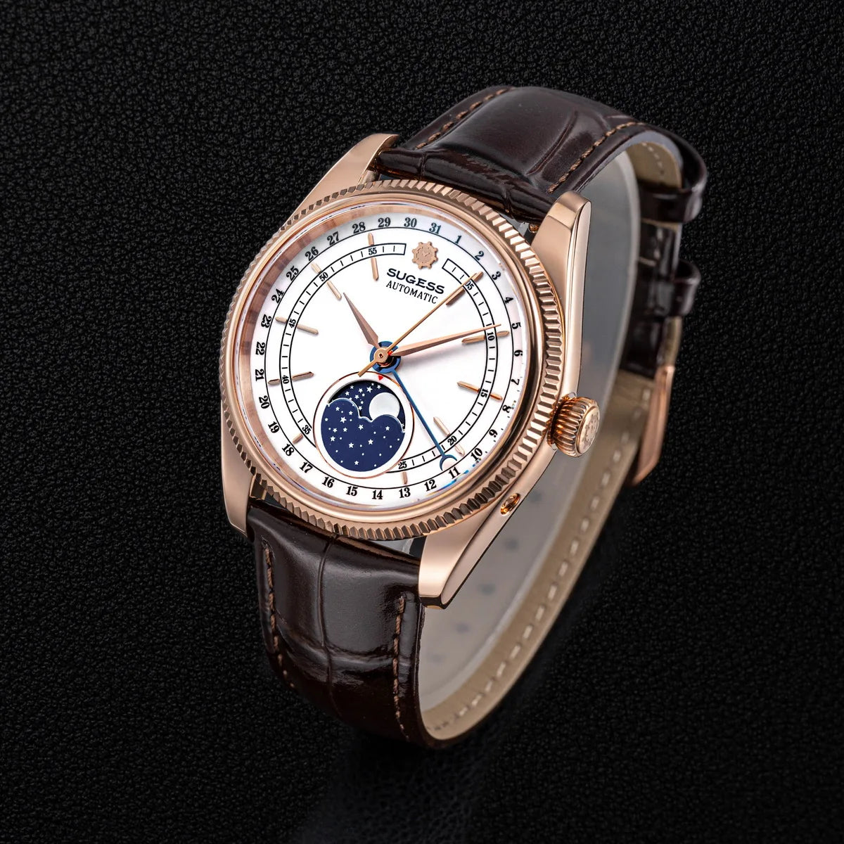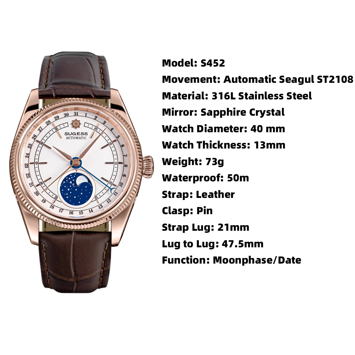 40mm Moonphase Automatic ST2108 Movement Sapphire Crystal Waterproof Mechanical Men's Watch