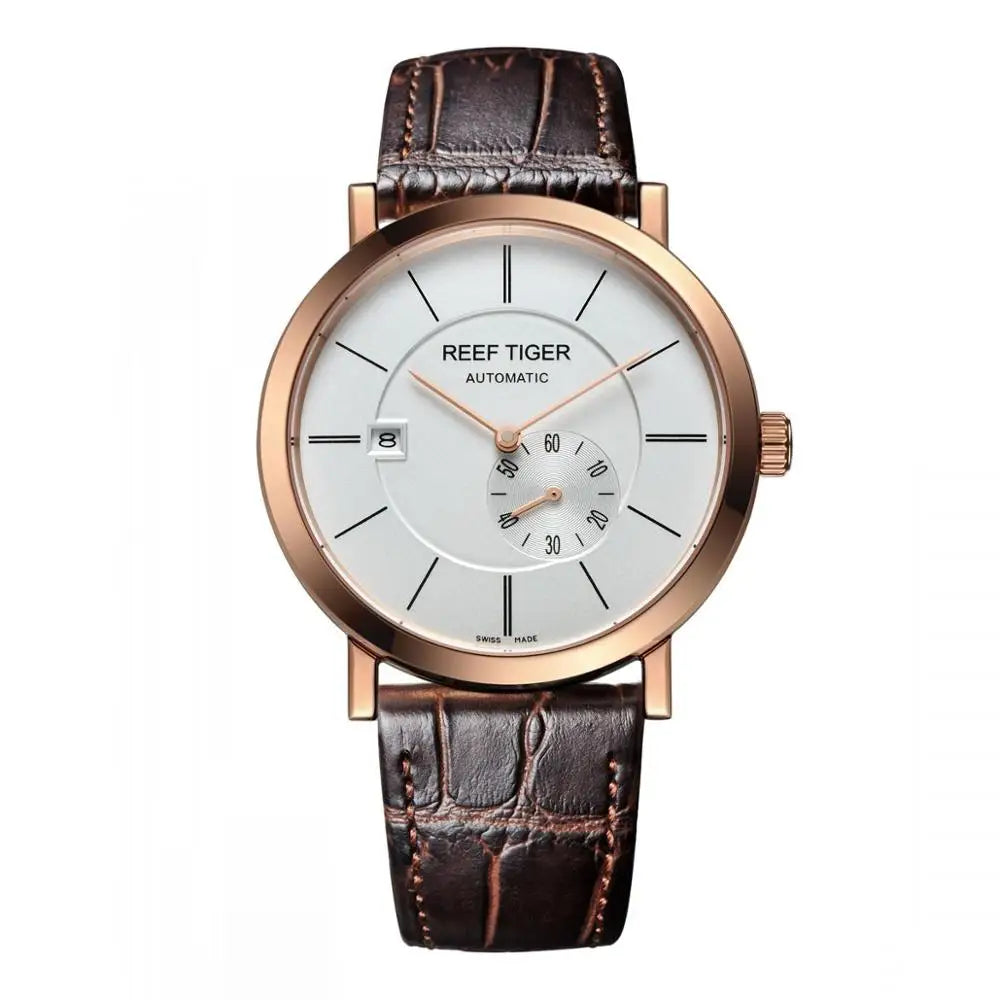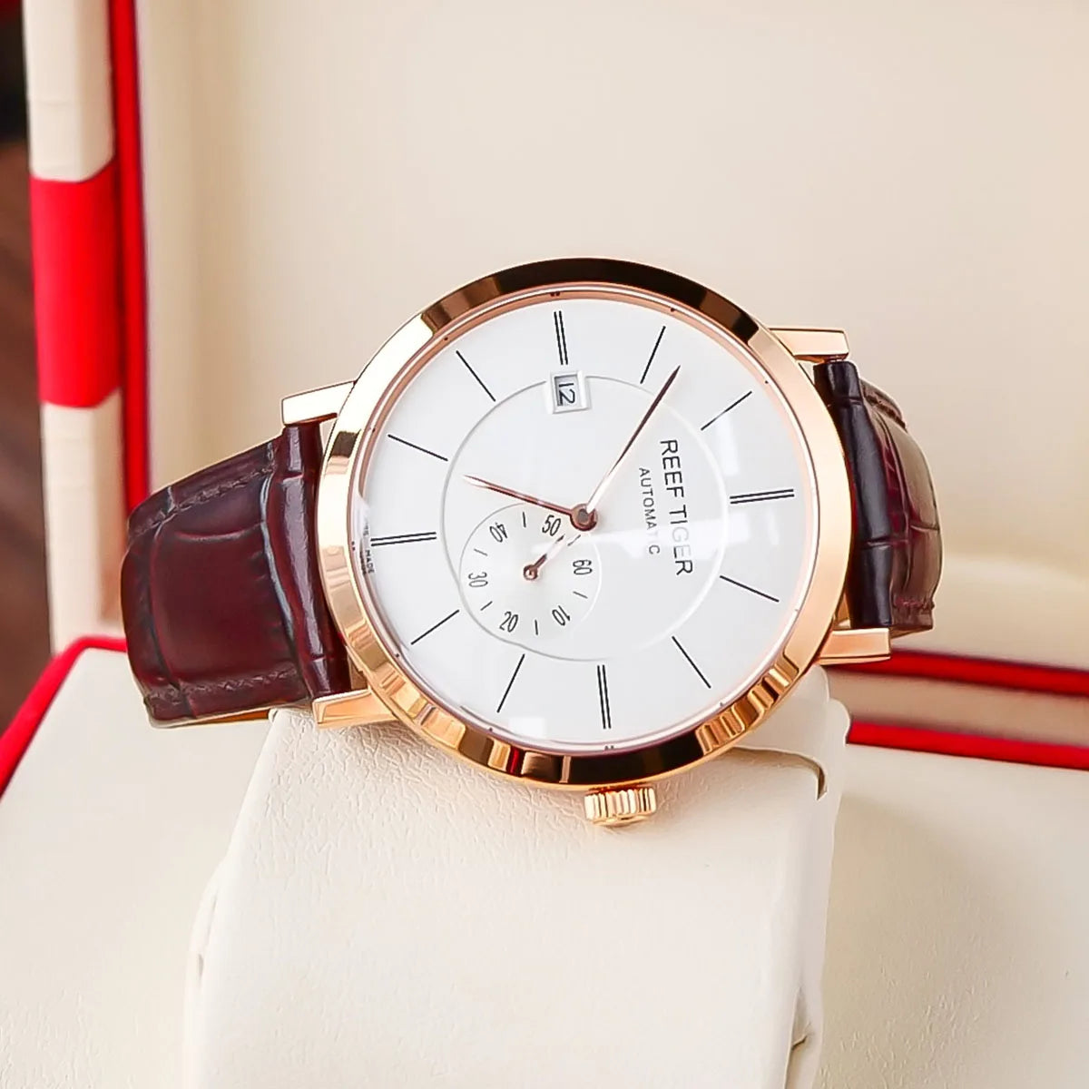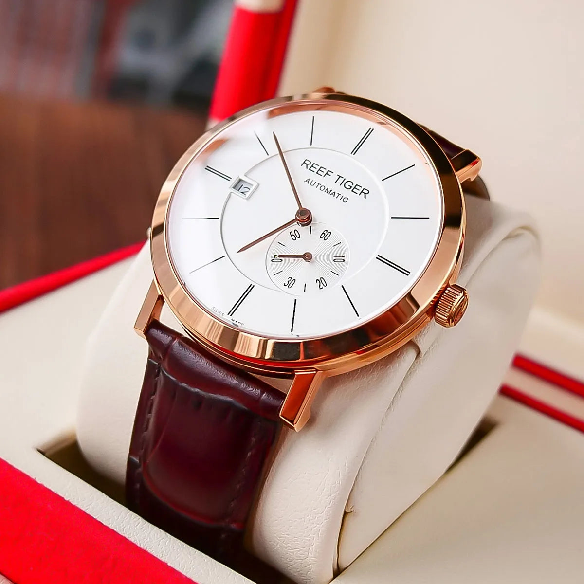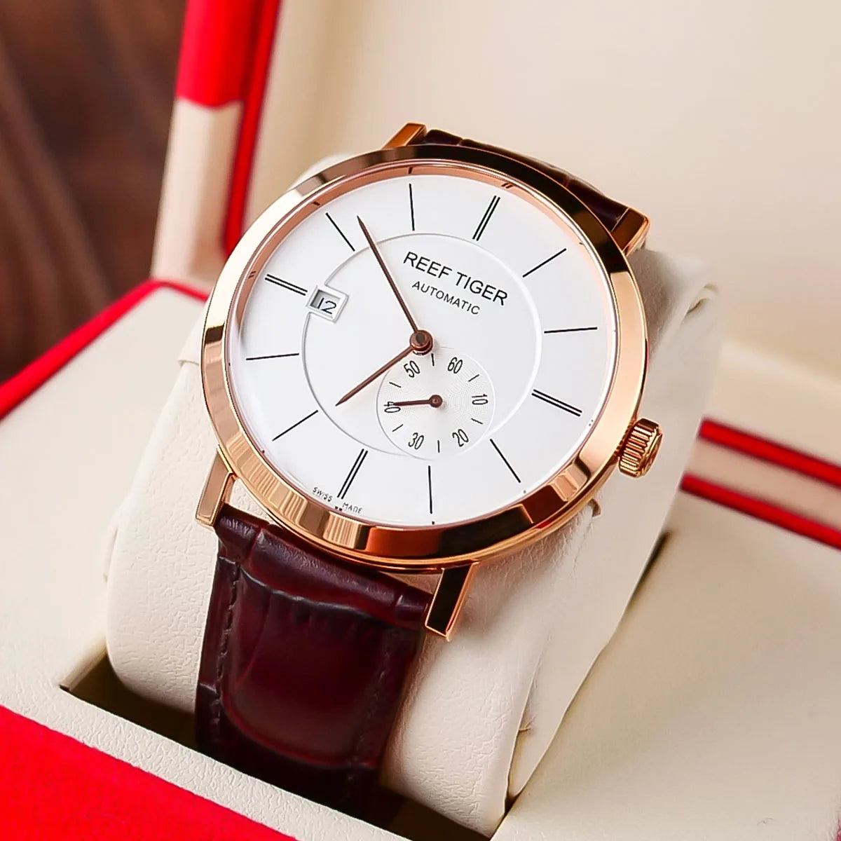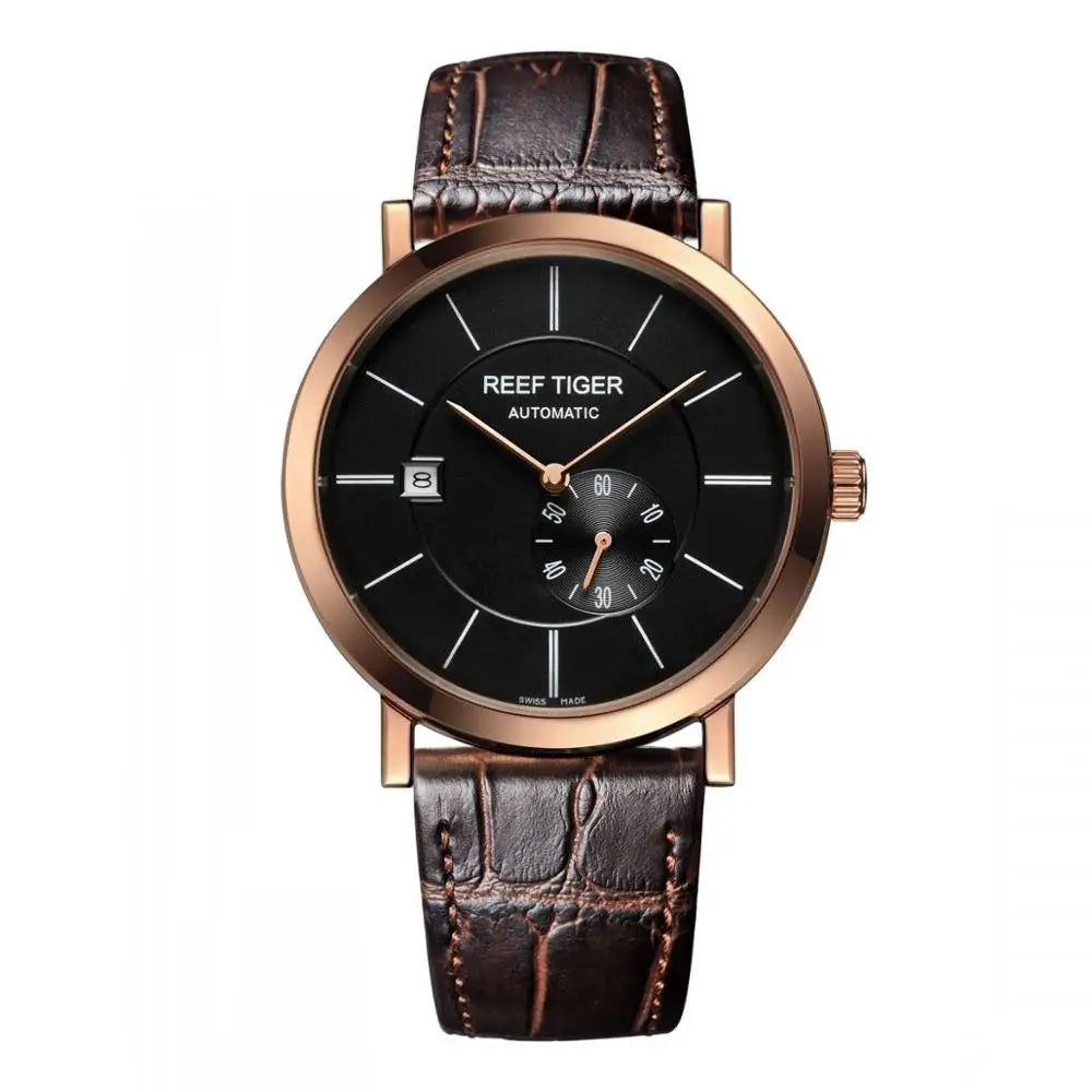 Business Style Automatic Calfskin Leather Steel Waterproof Ultra Thin Watch For Men