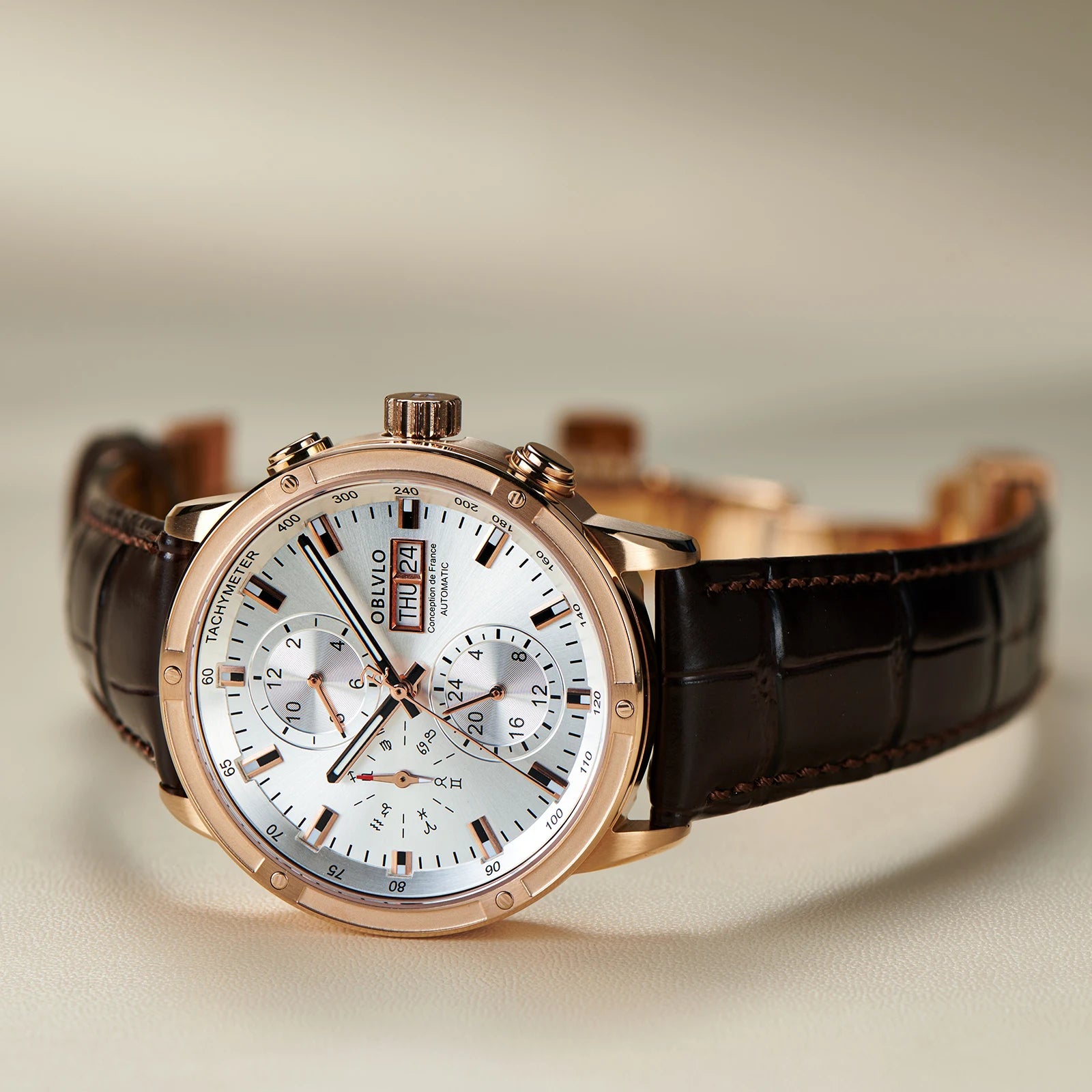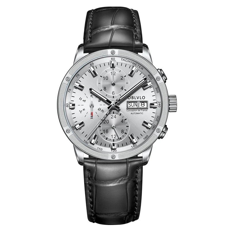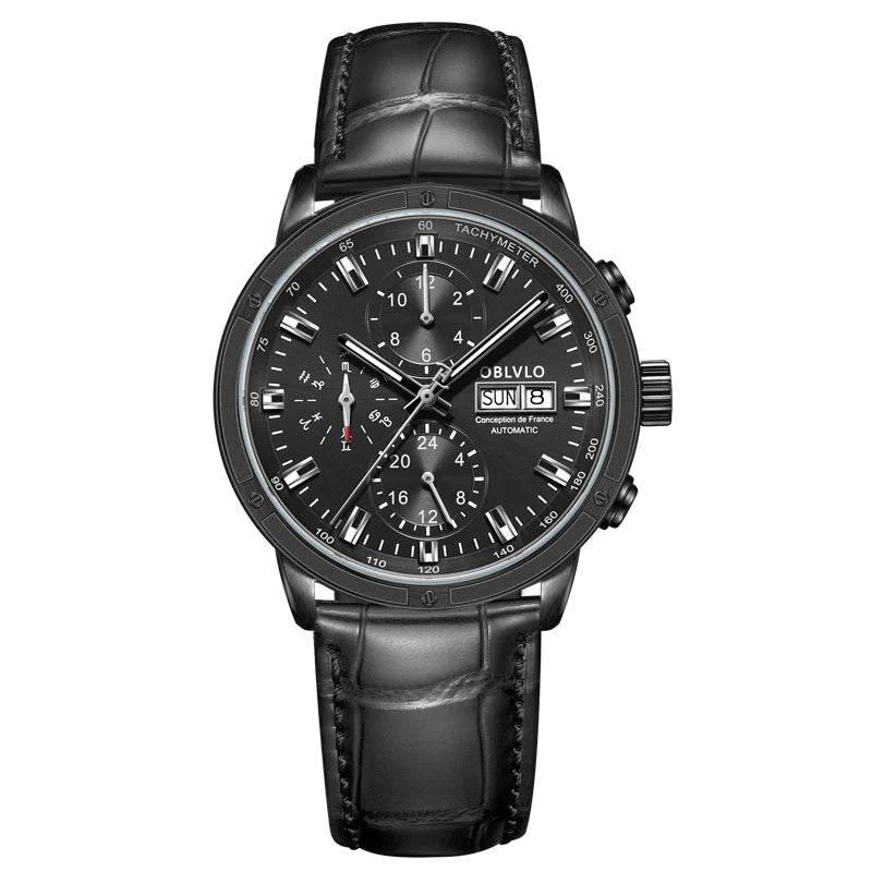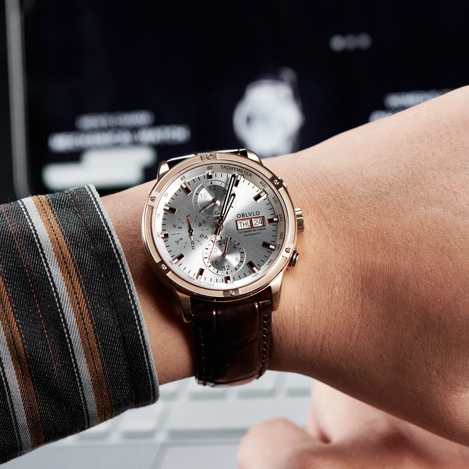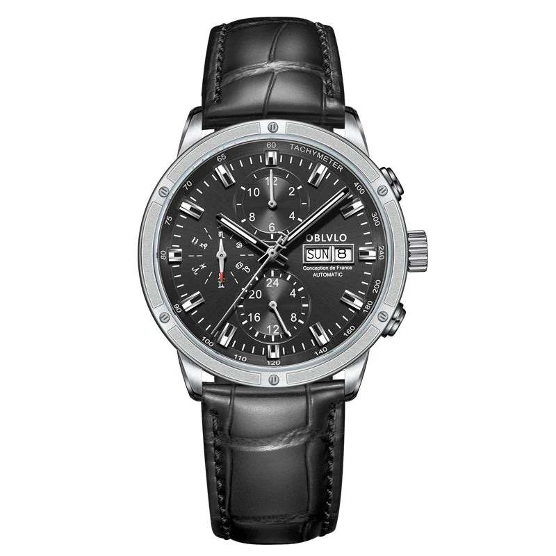 Casual Men's Automatic Mechanical Waterproof Leather Strap Watch with Date