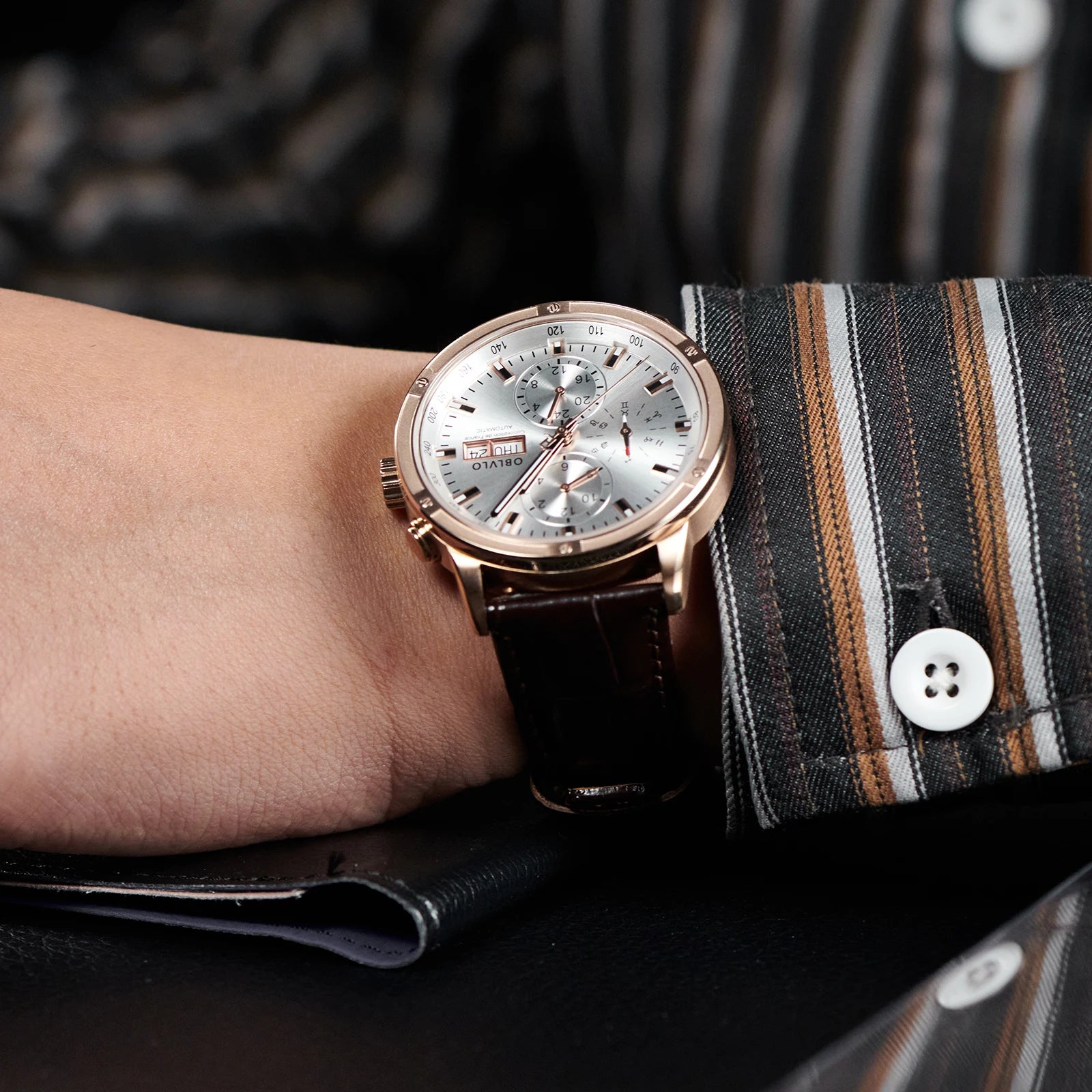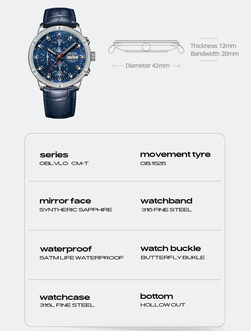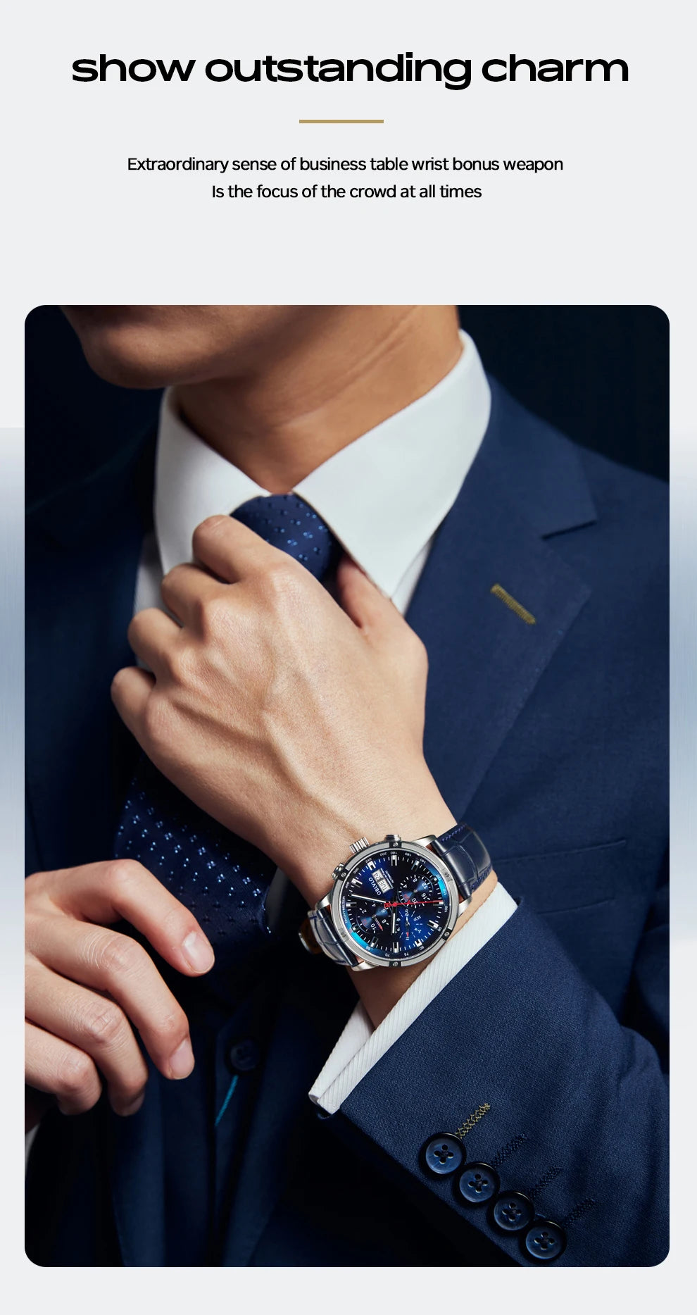 Casual Men's Automatic Mechanical Waterproof Leather Strap Watch with Date